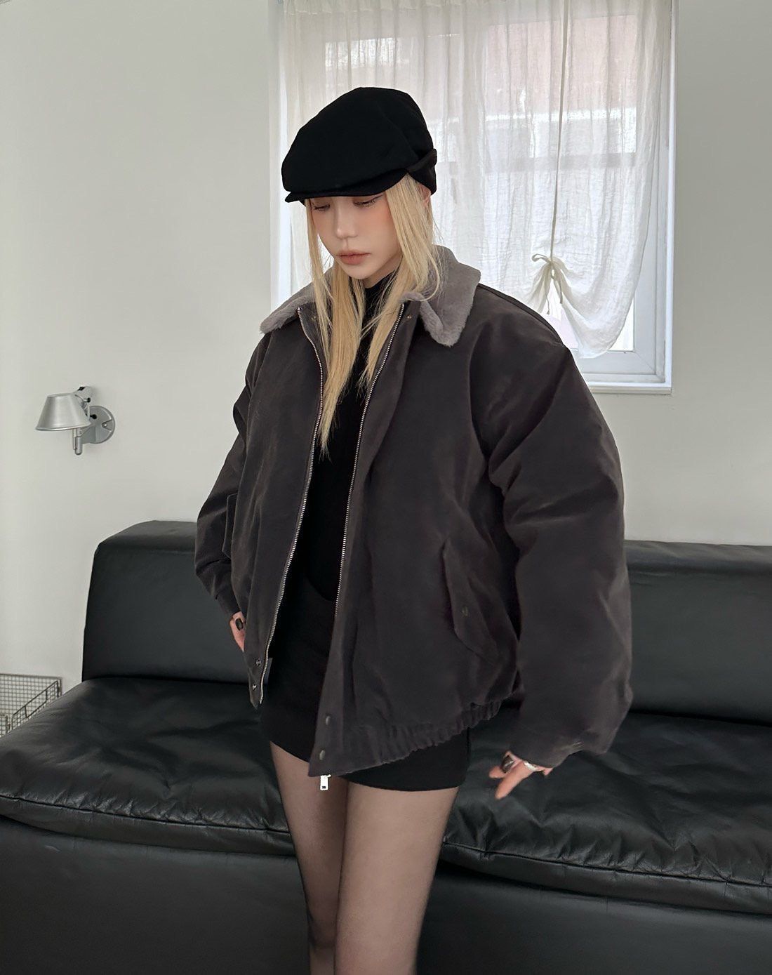 毛毛領淨色拉鍊外套 LEAD-017JK