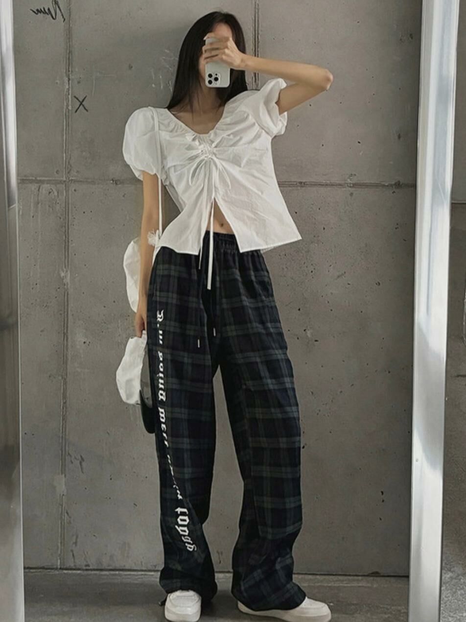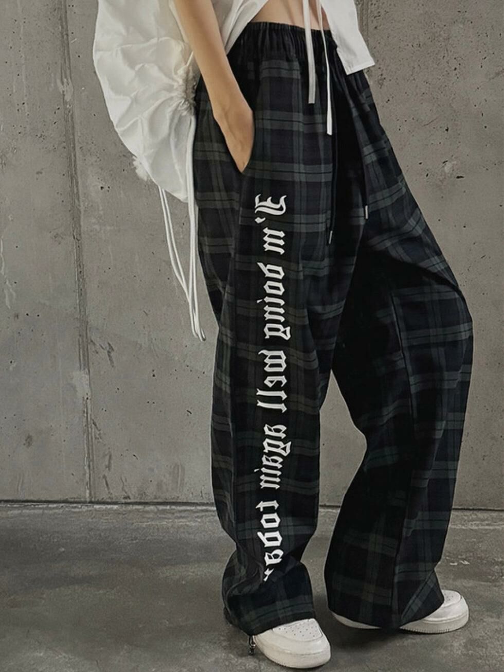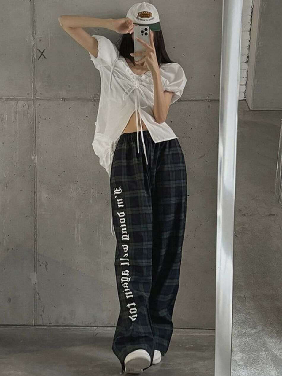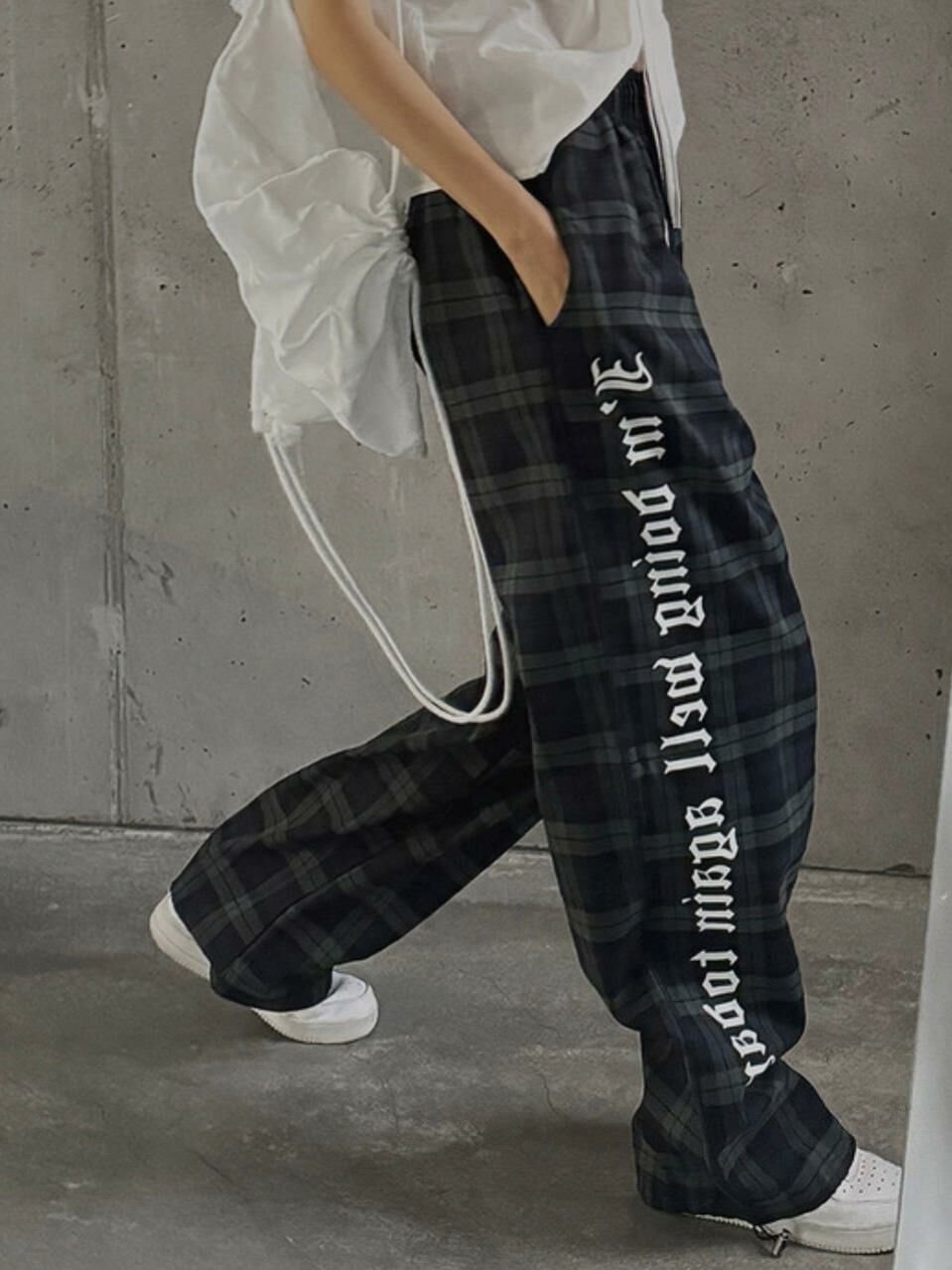 格仔英文字可束腳鬆身褲 LEGIT-004P