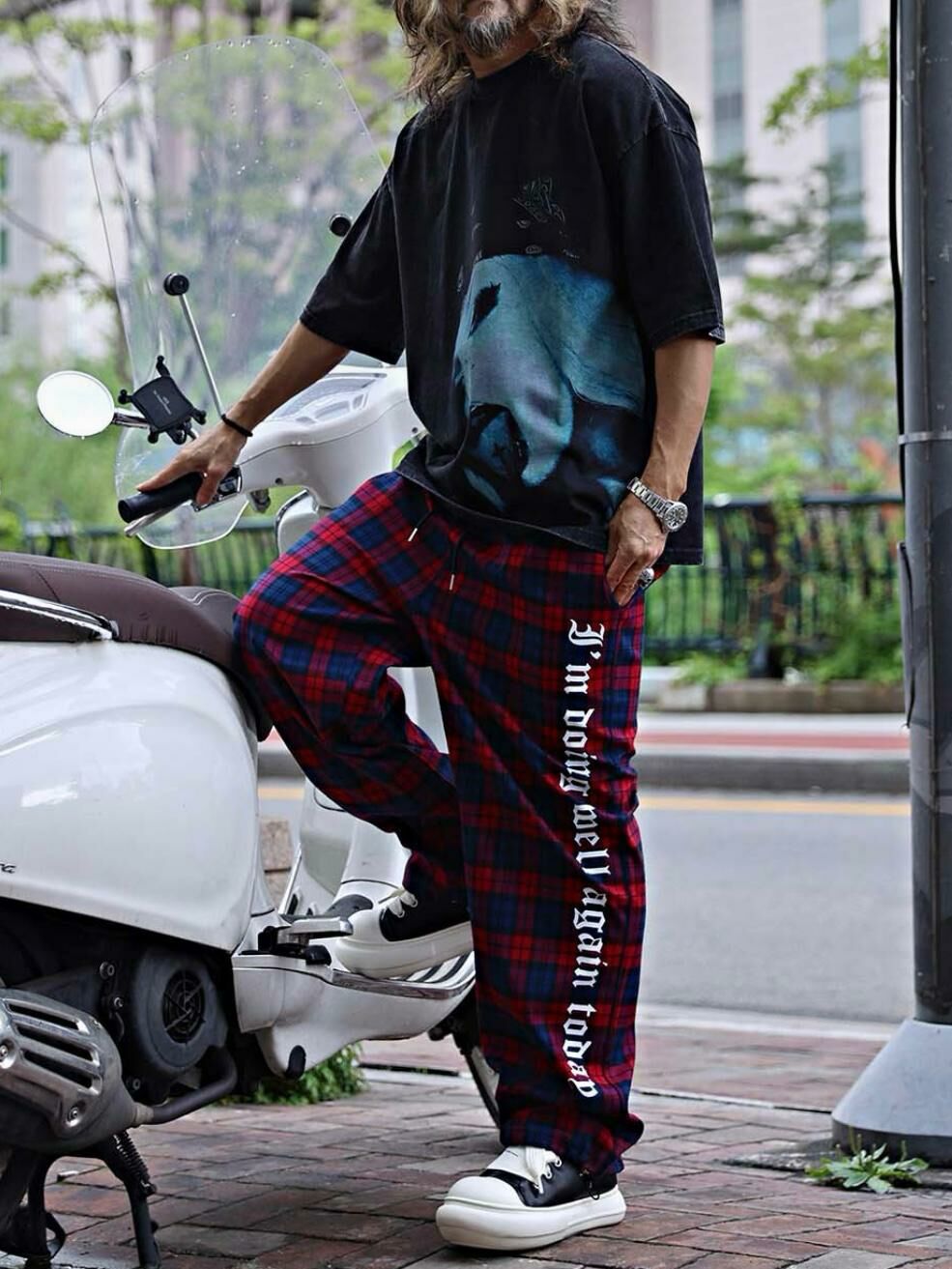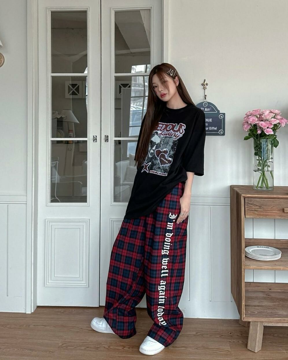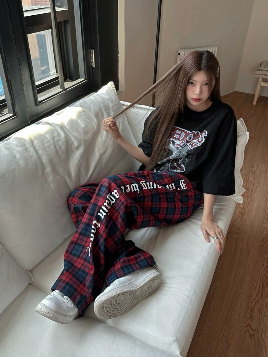 格仔英文字可束腳鬆身褲 LEGIT-004P
