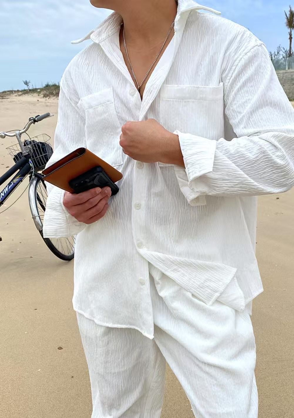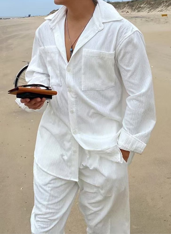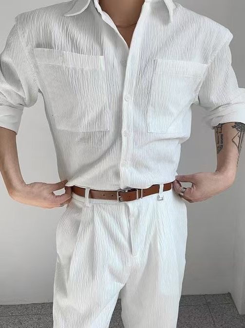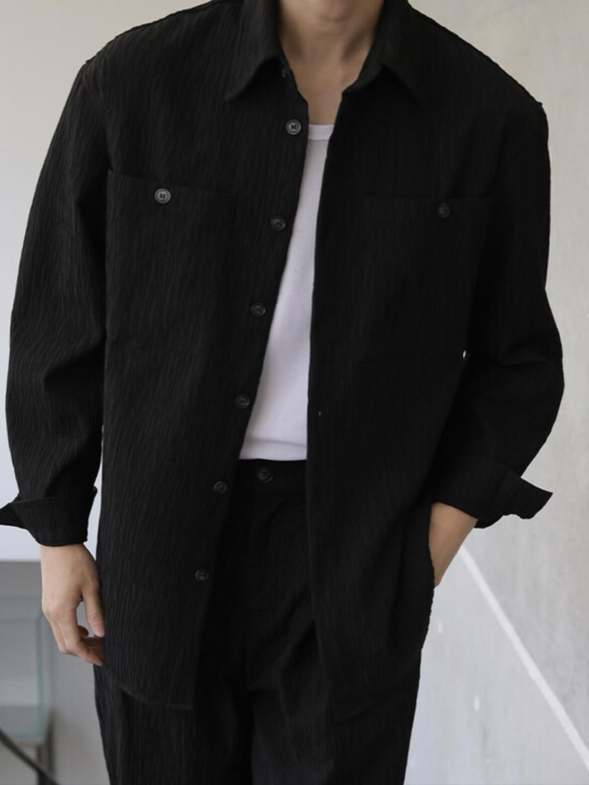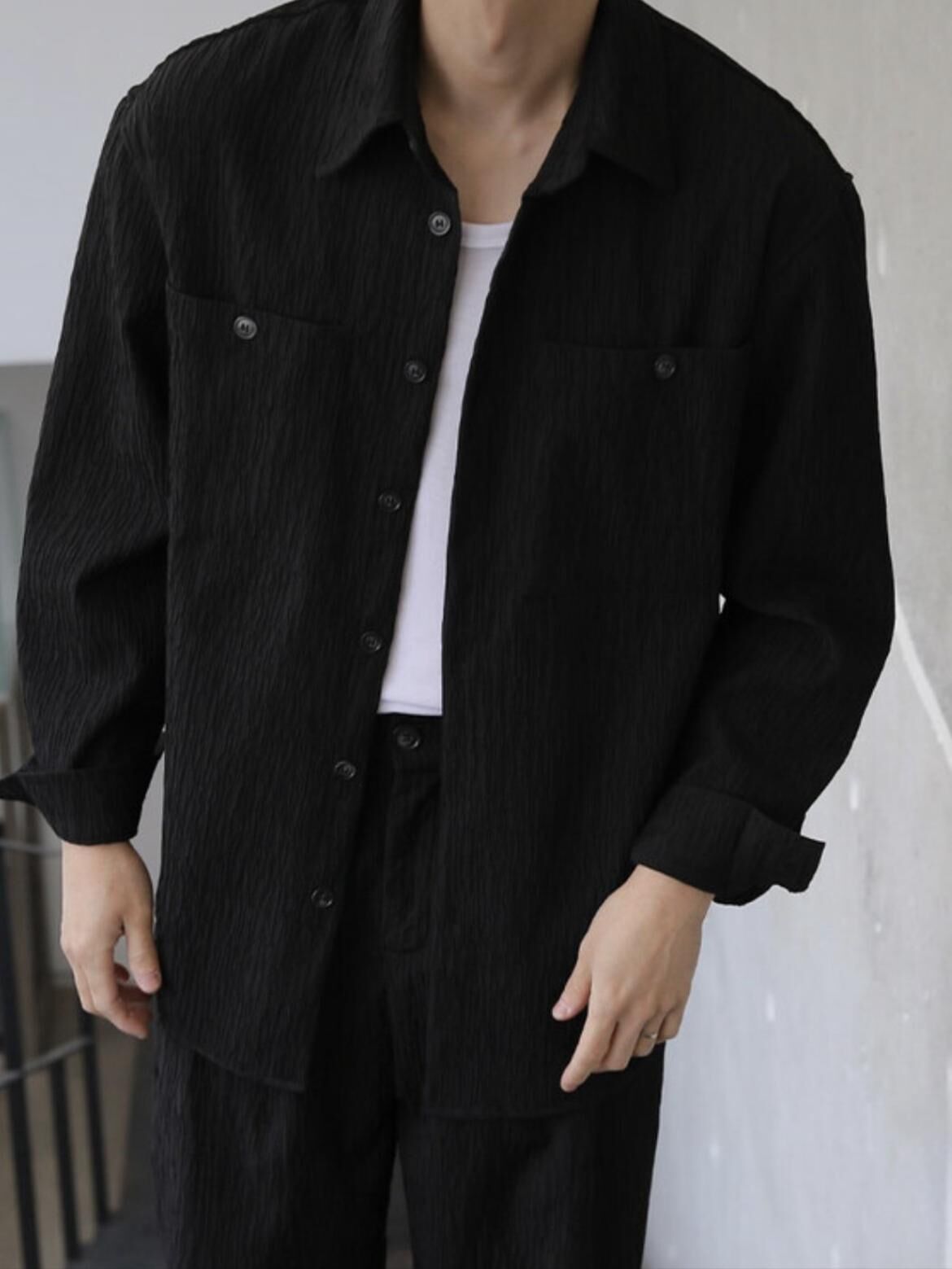淨色暗紋長袖恤衫 LEGIT-050S