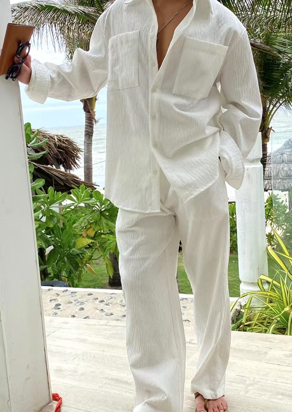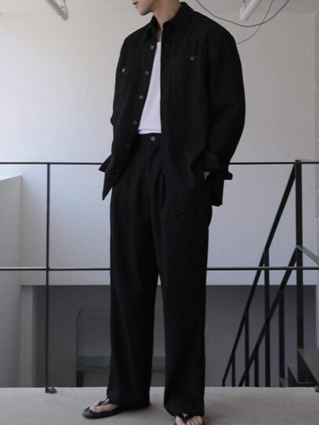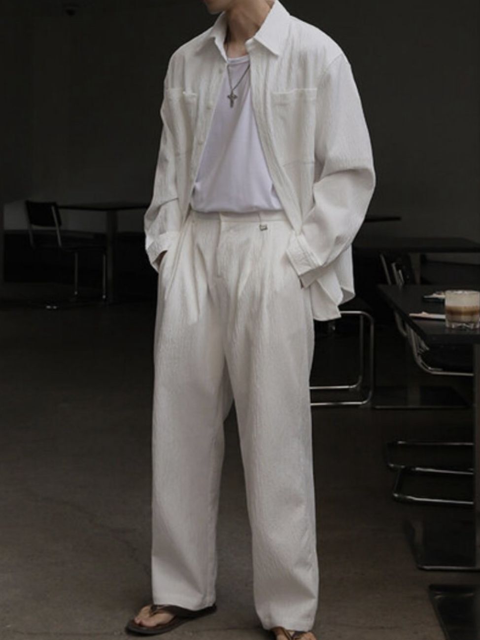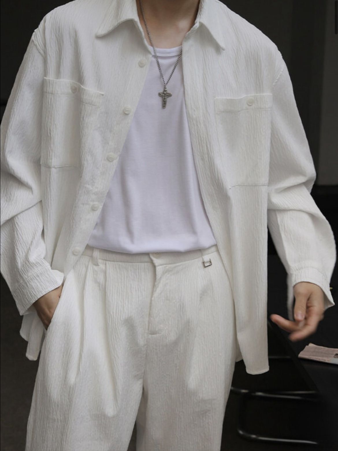 淨色暗紋長袖恤衫 LEGIT-050S