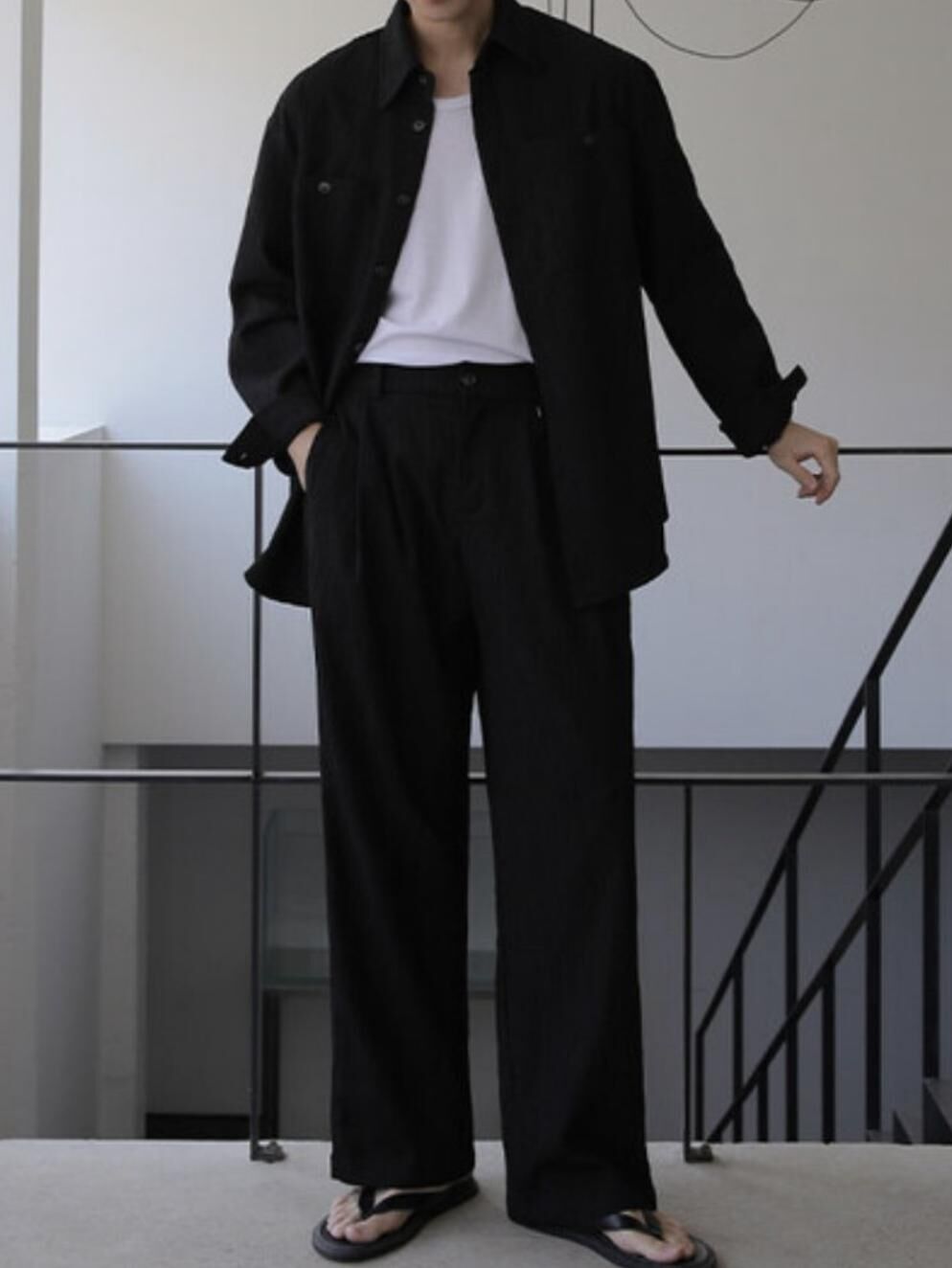 淨色暗紋鬆身褲 LEGIT-051P
