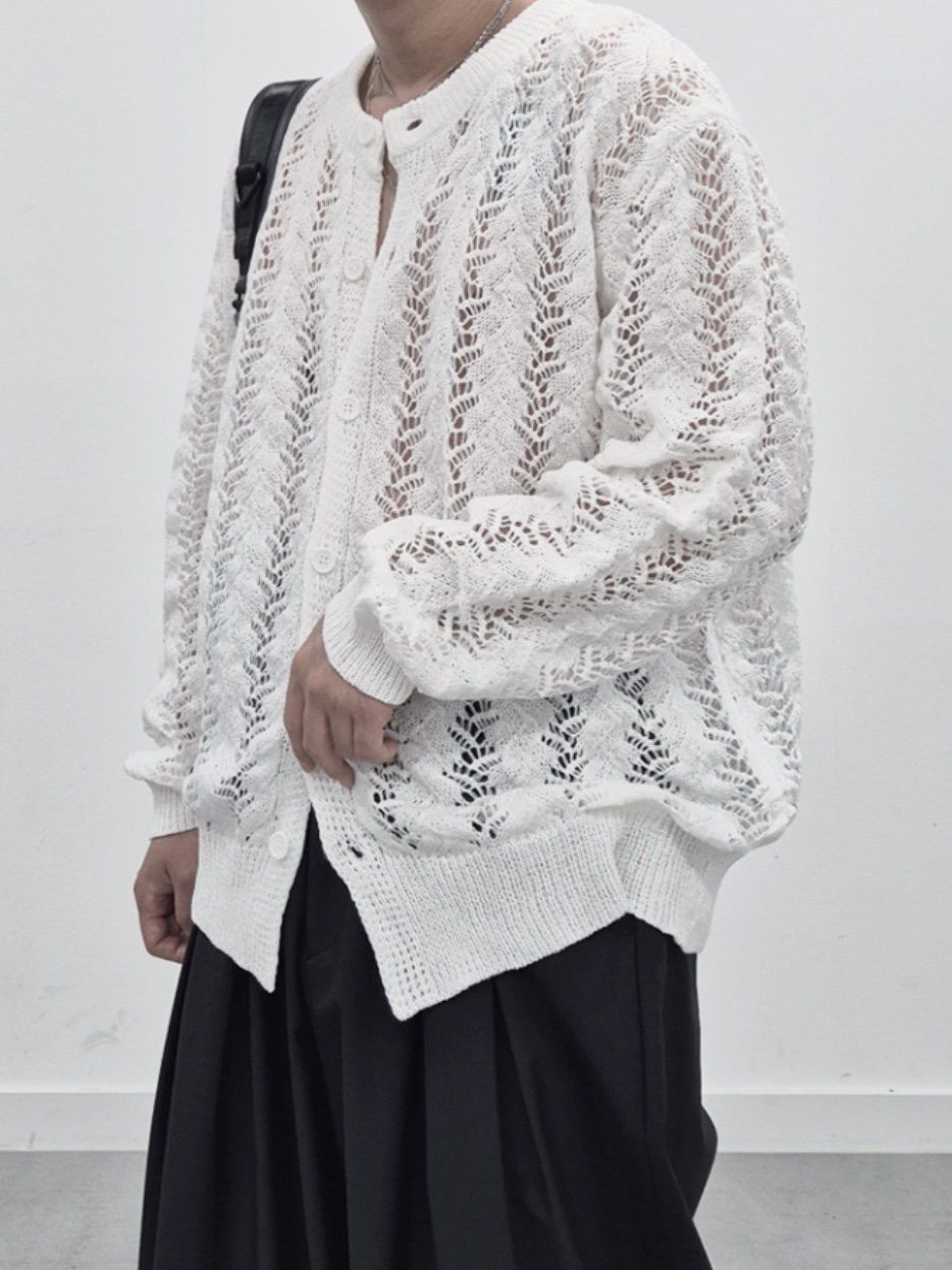 淨色通花開胸針織外套 LEGIT-066JK