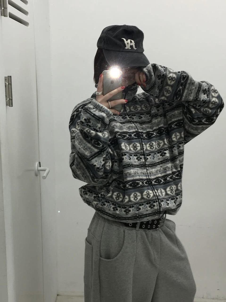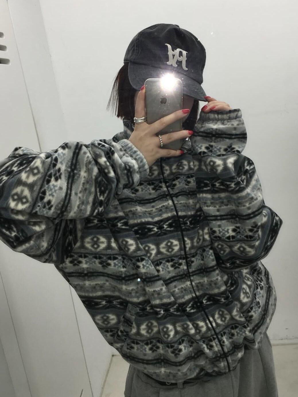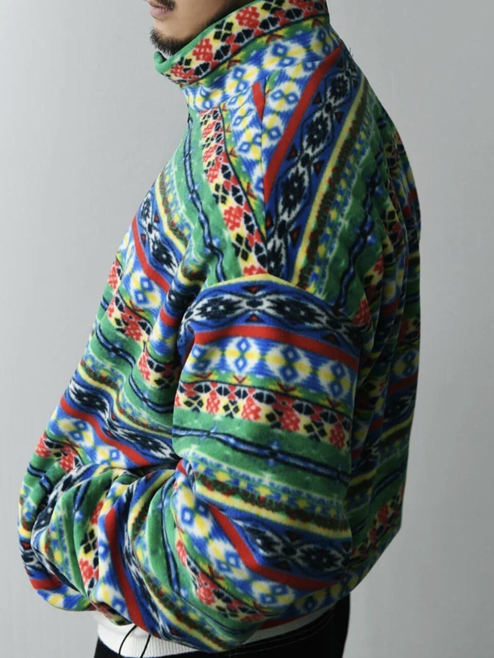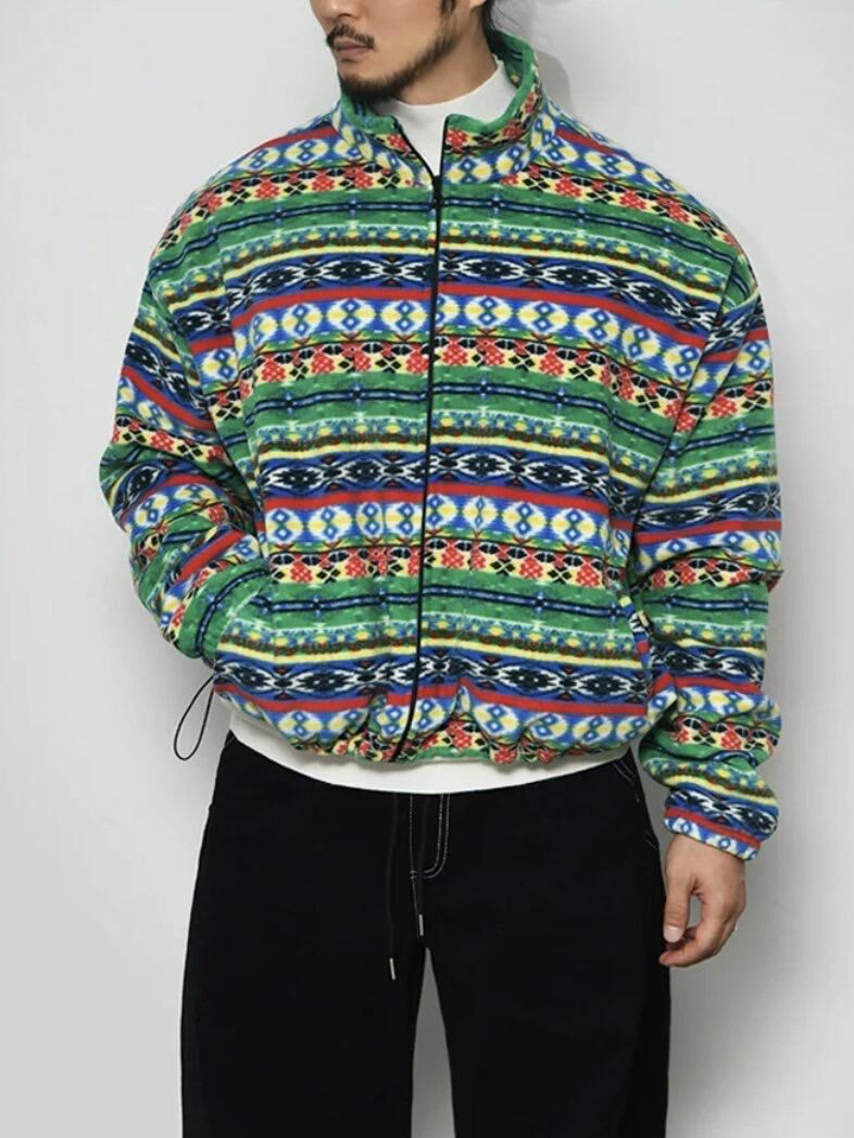 企領民族花拉鍊毛絨外套 LEGIT-074JK