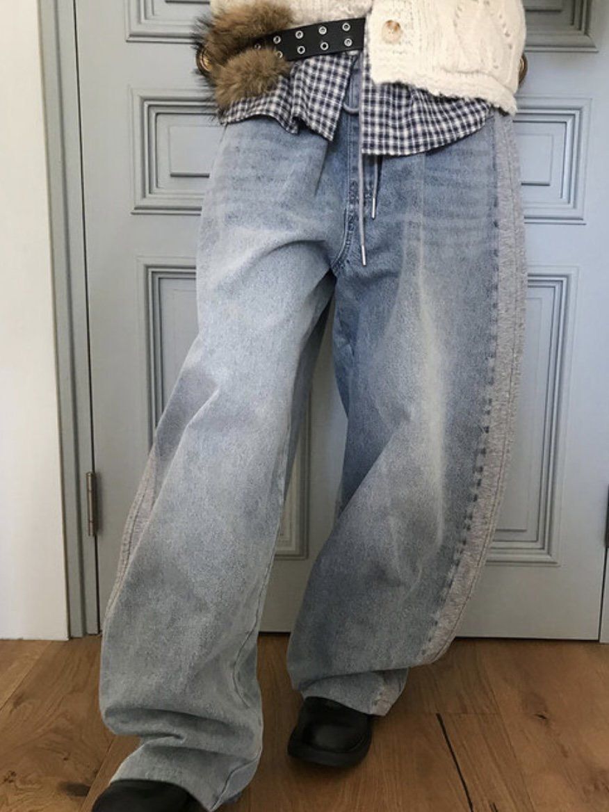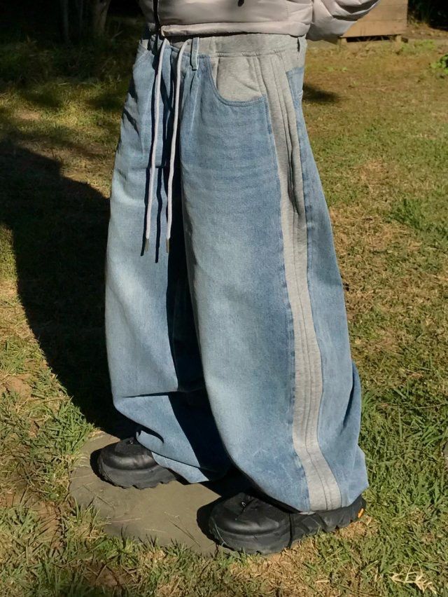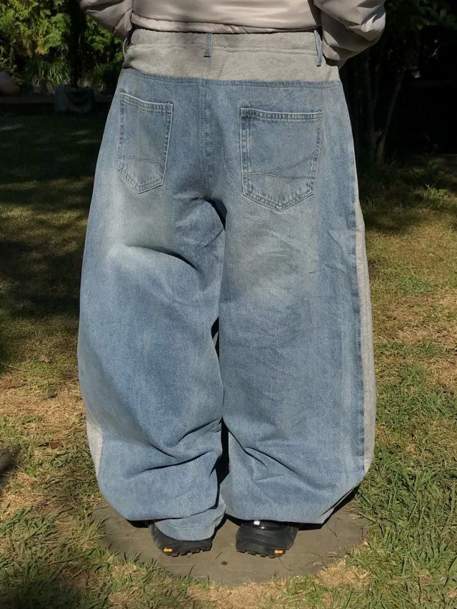 洗水拼布鬆身牛仔褲 LEGIT-075P