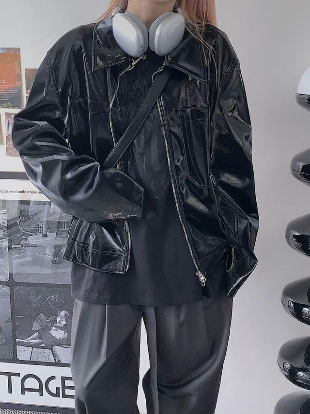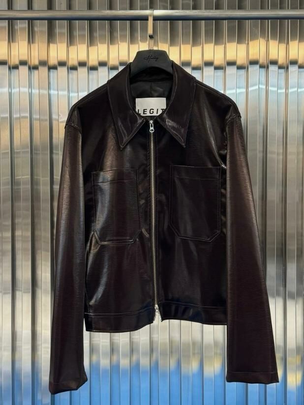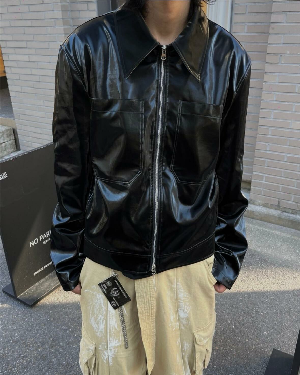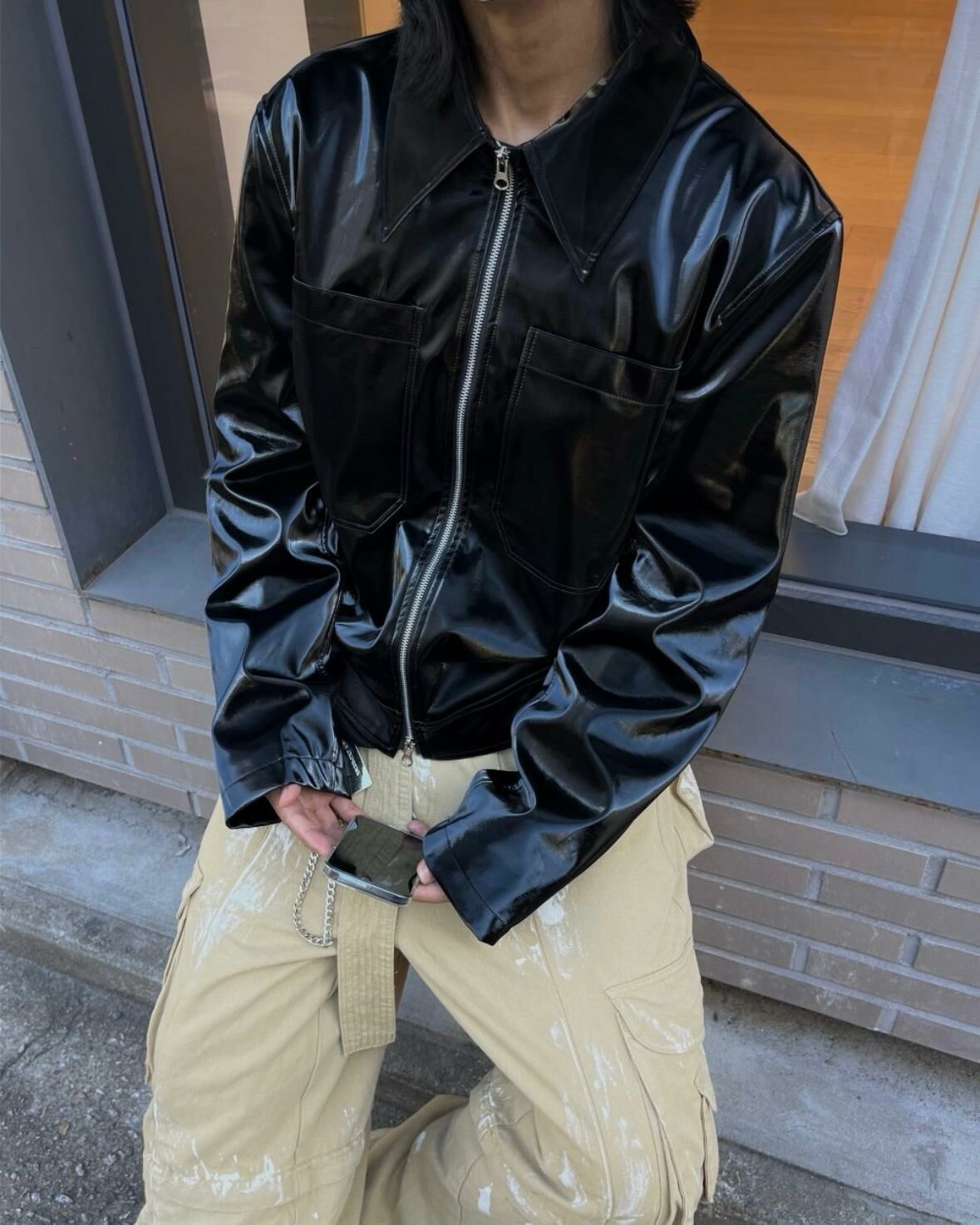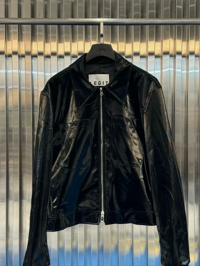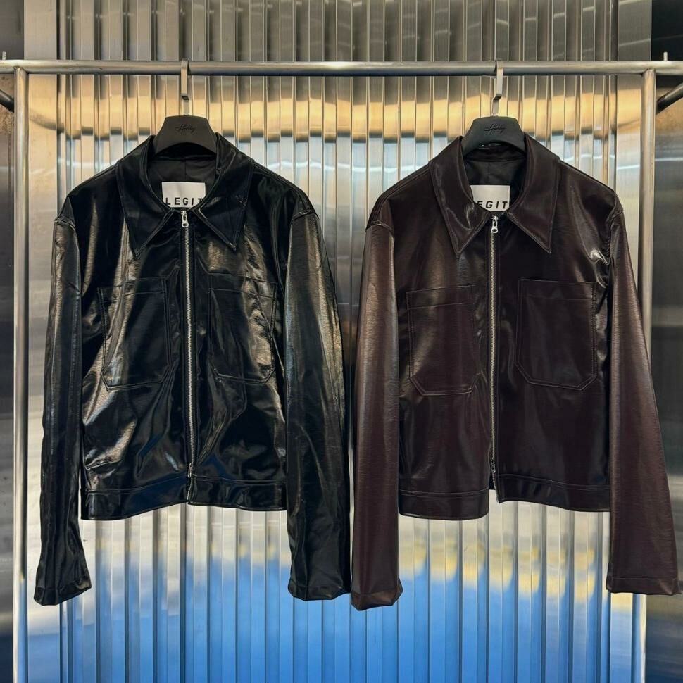 反領拉鍊亮面合成皮褸 LEGIT-JK020