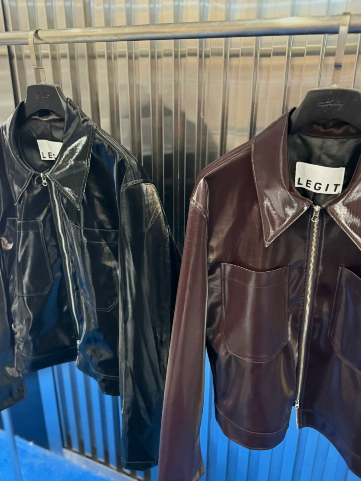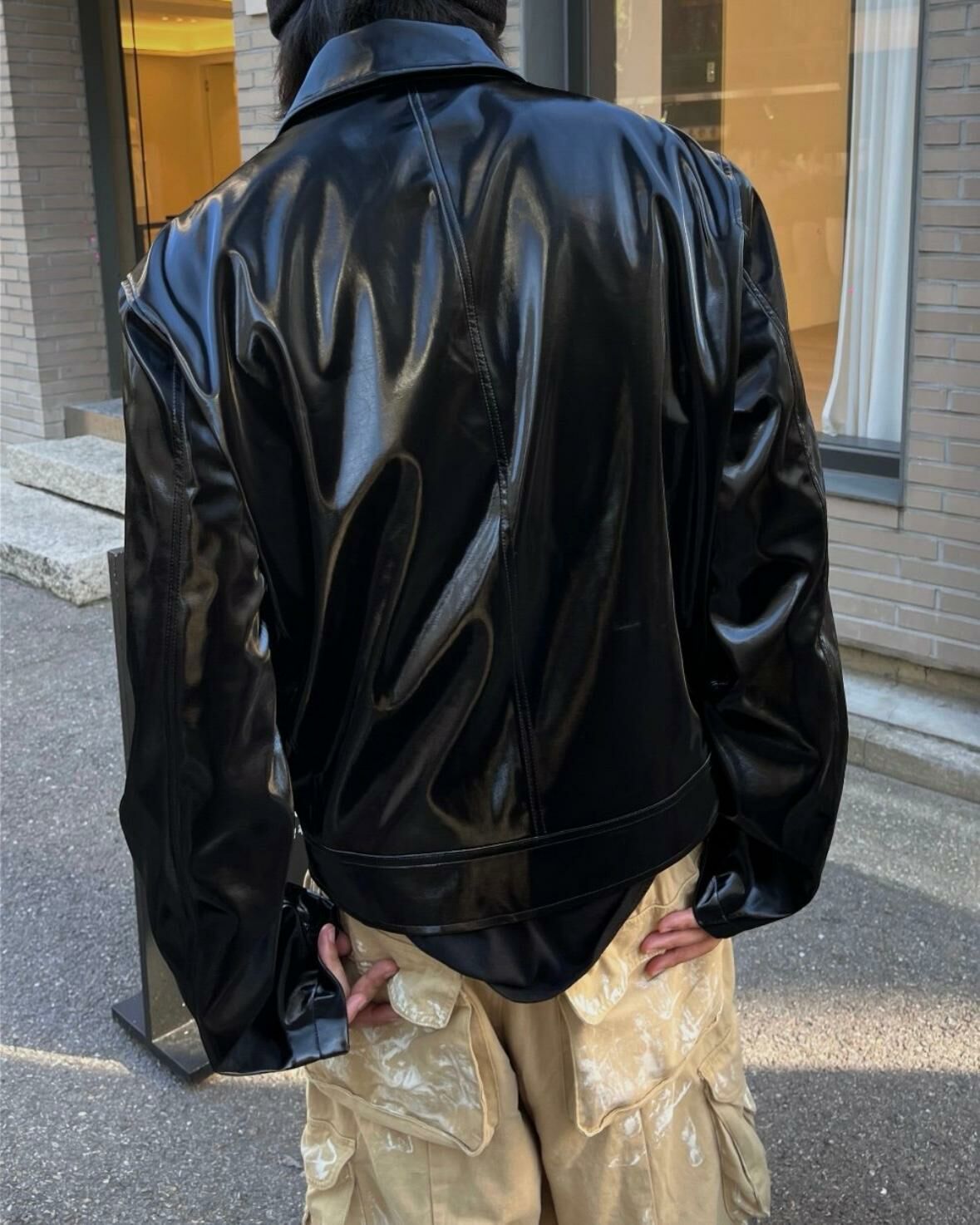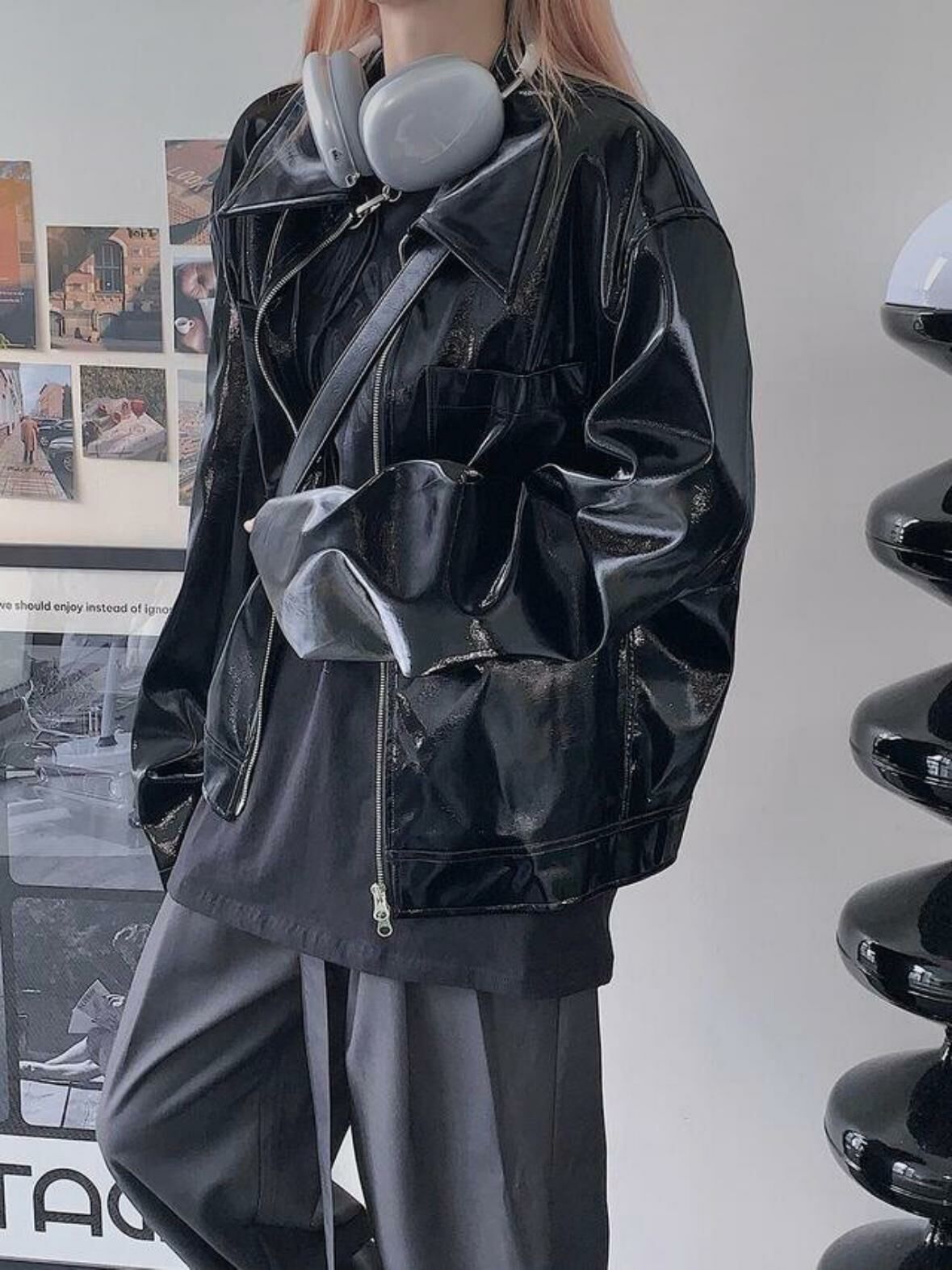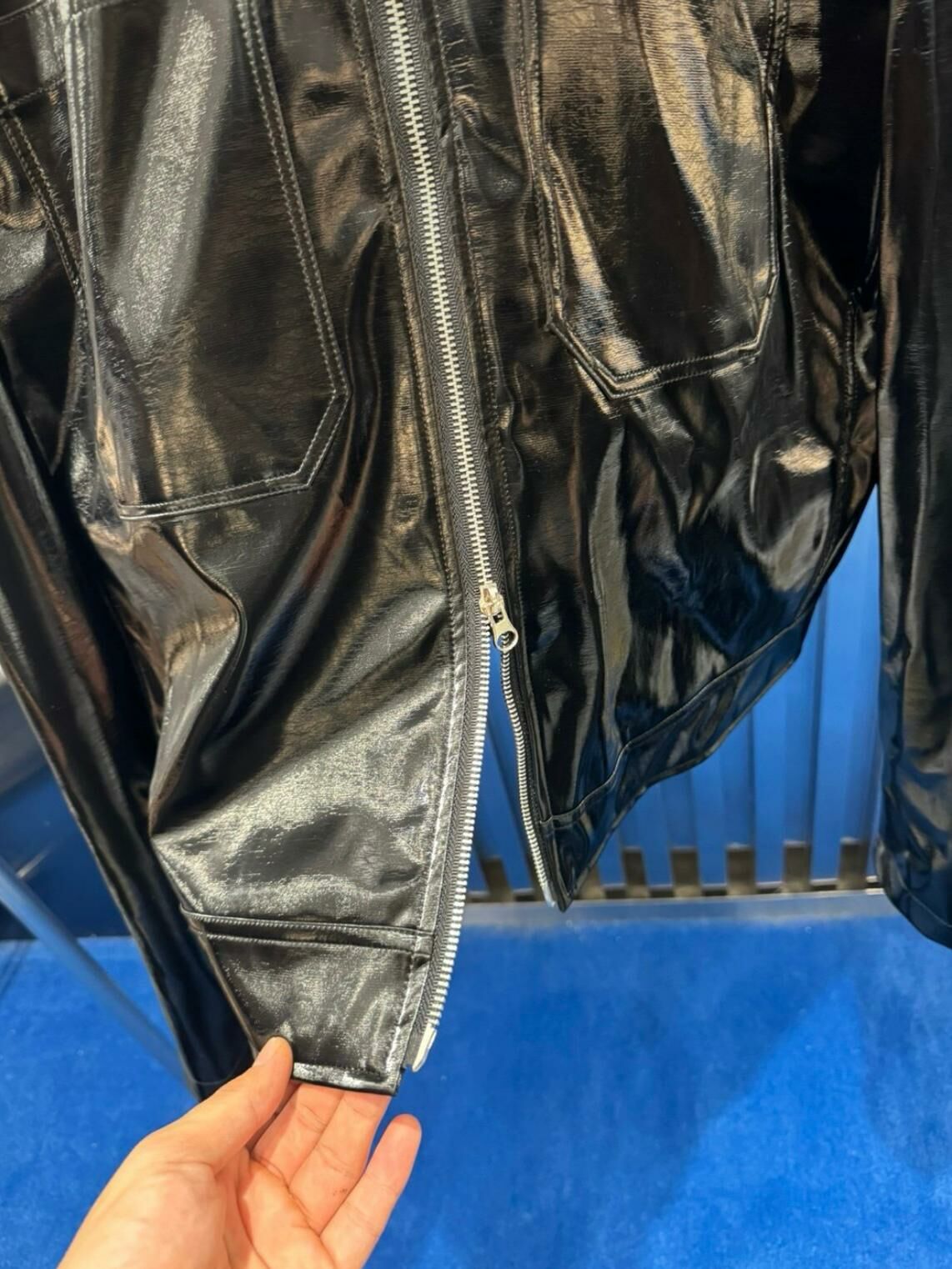 反領拉鍊亮面合成皮褸 LEGIT-JK020