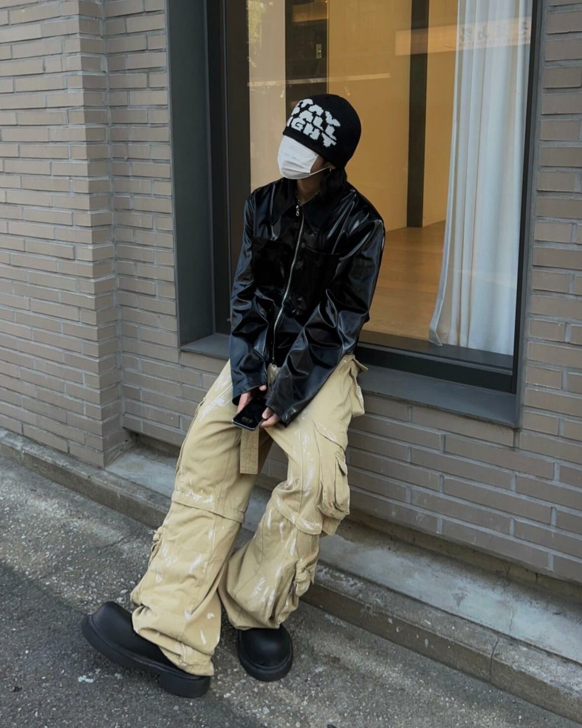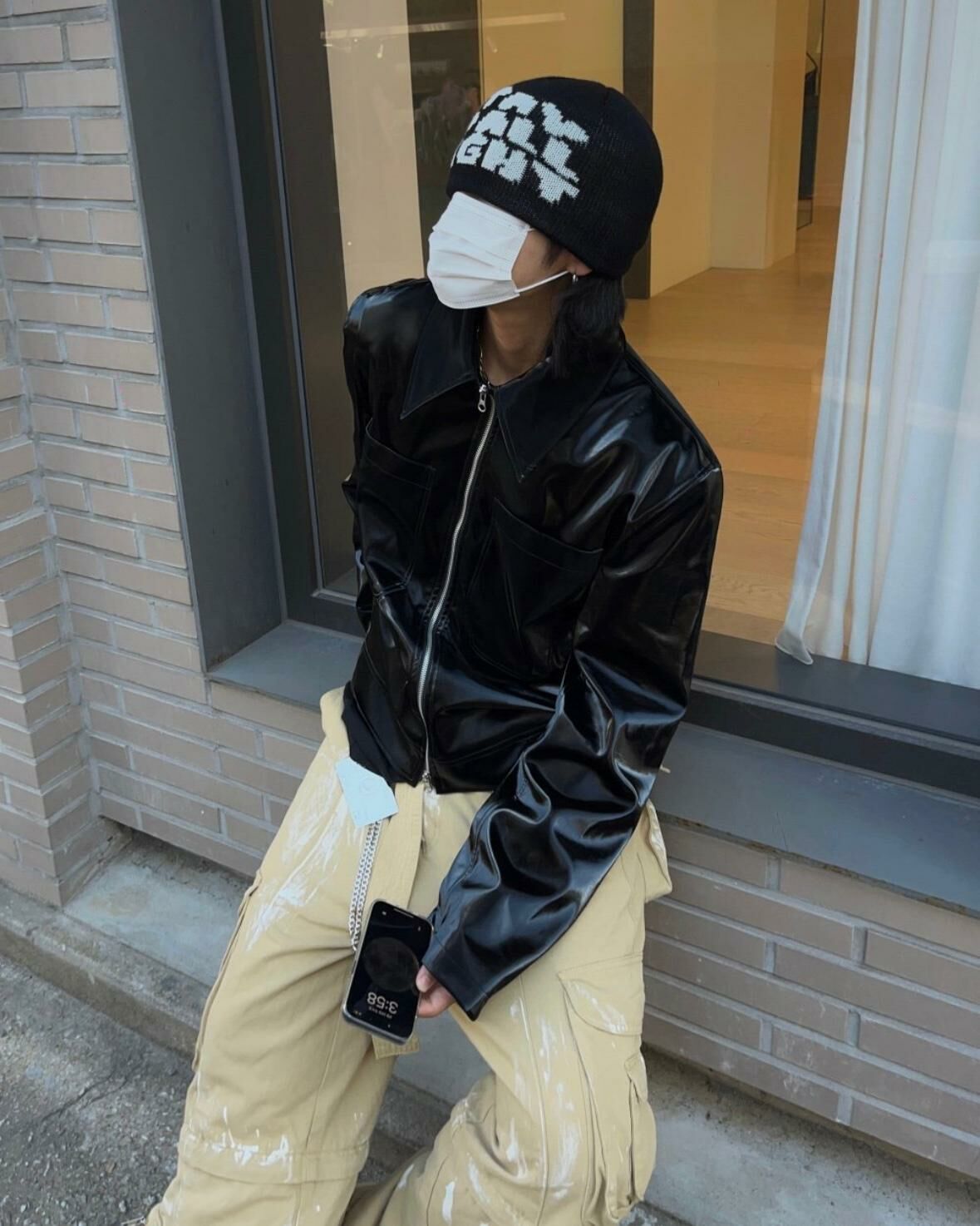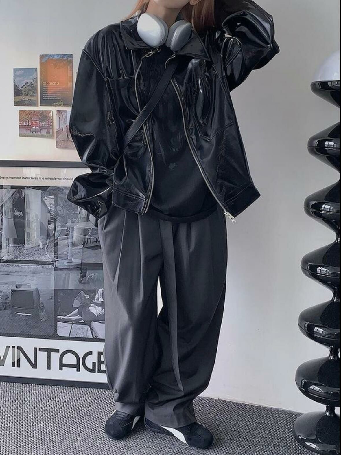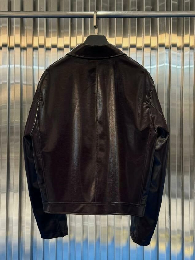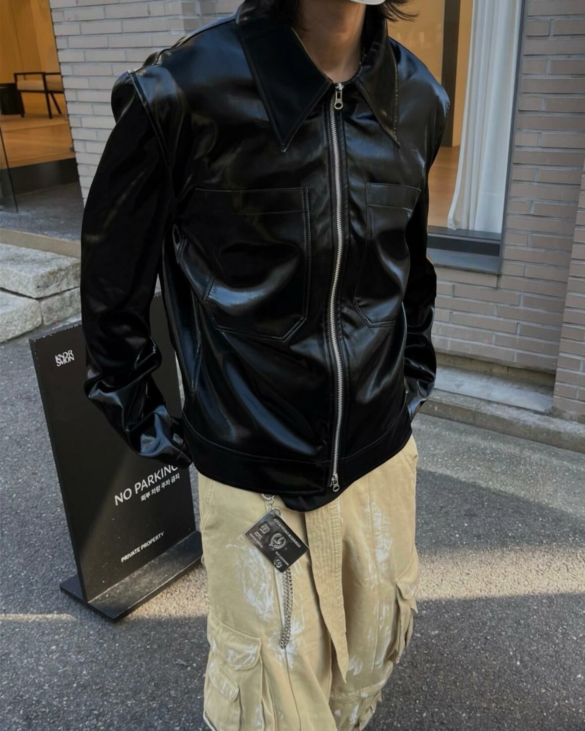 反領拉鍊亮面合成皮褸 LEGIT-JK020