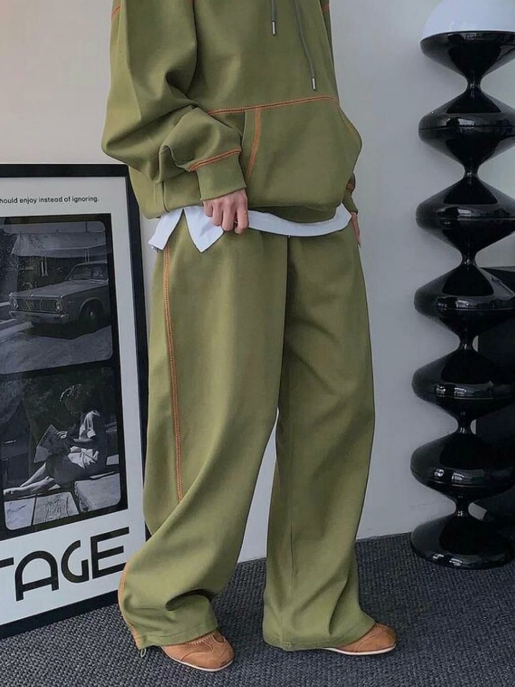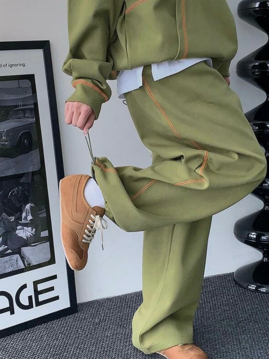 明線棉質可束腳鬆身褲 LEGIT-P025