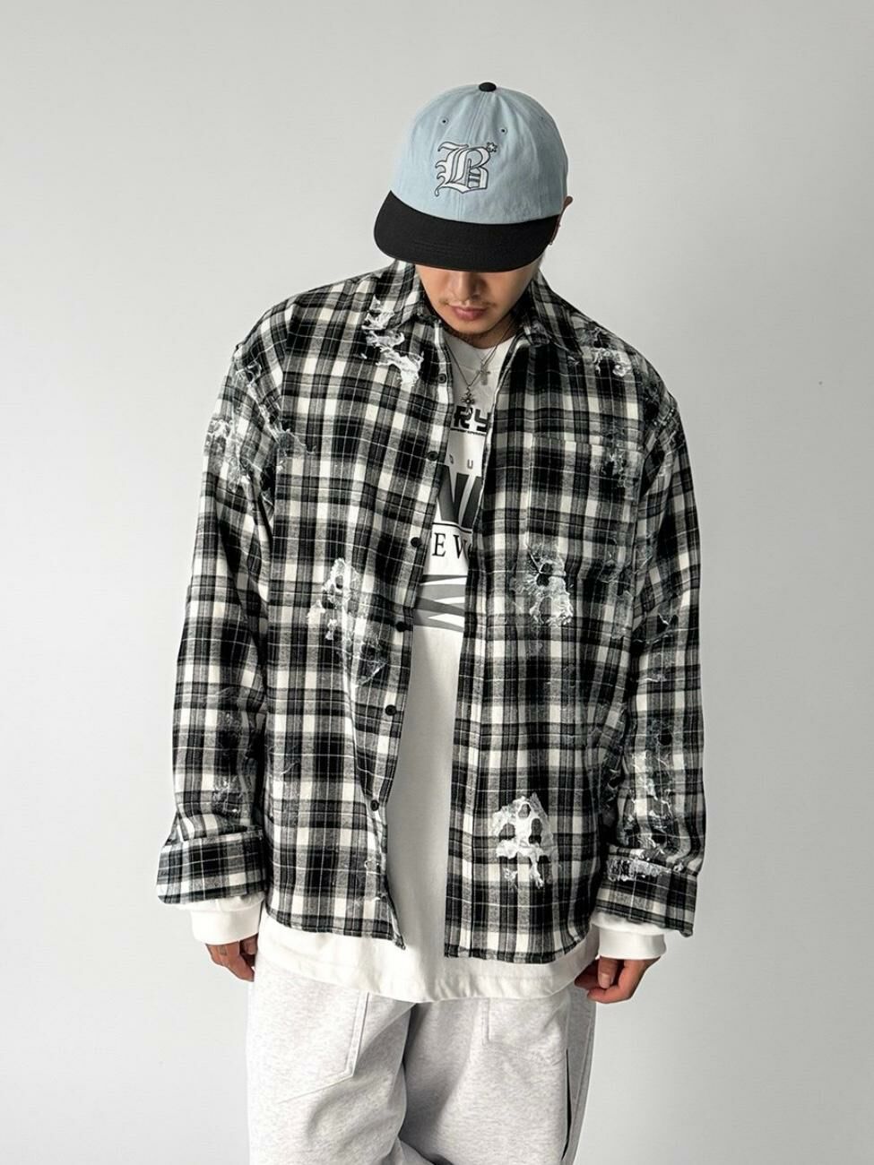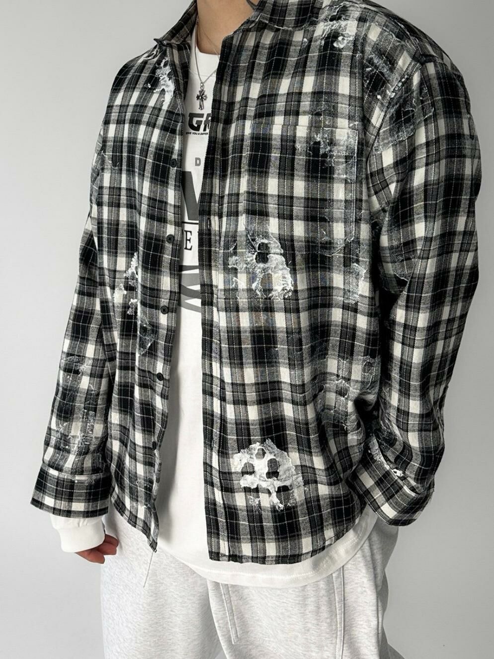 圖案格仔長袖恤衫 LEGIT-S018