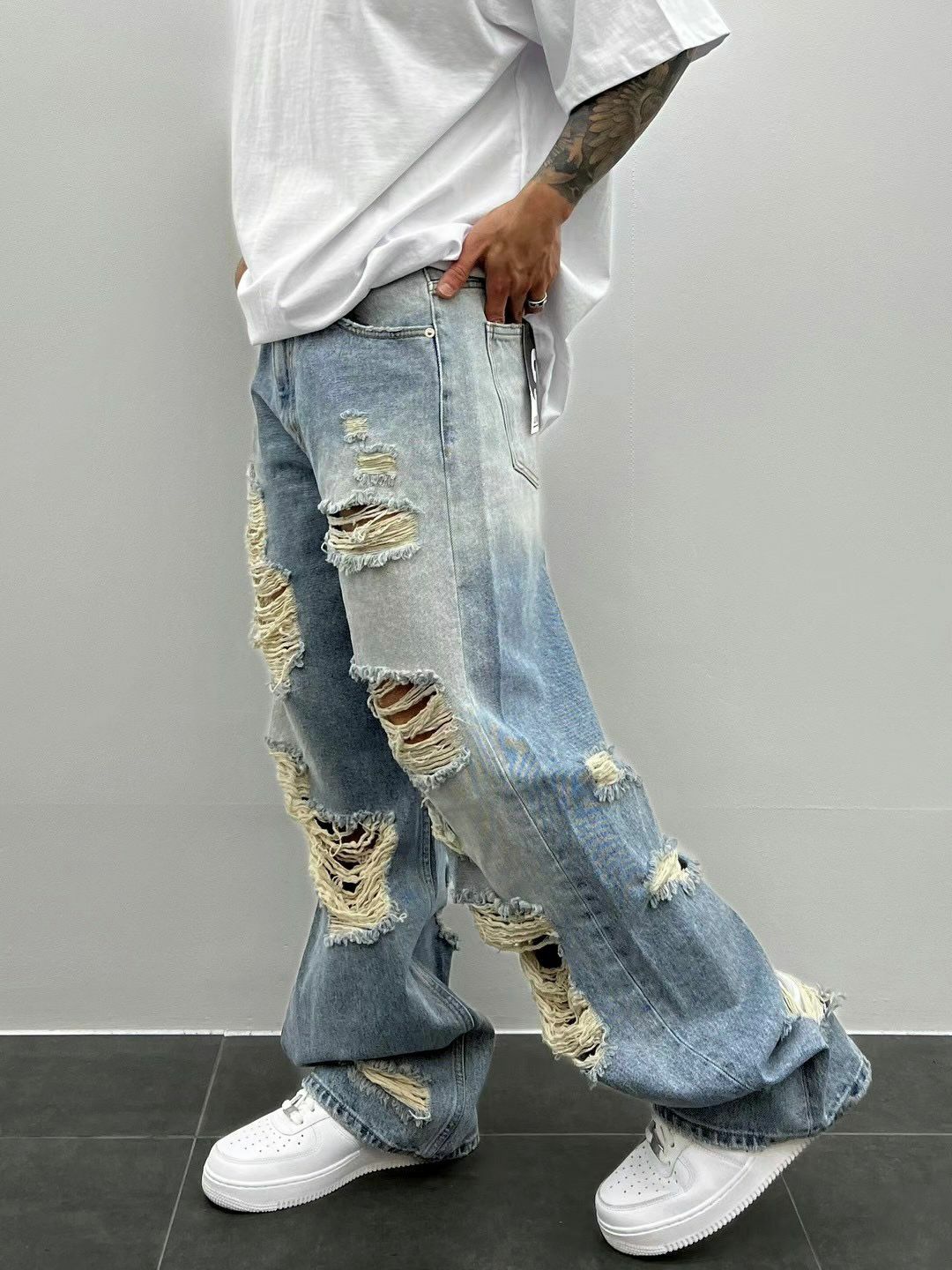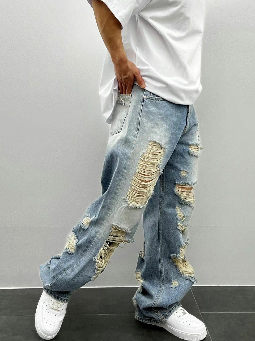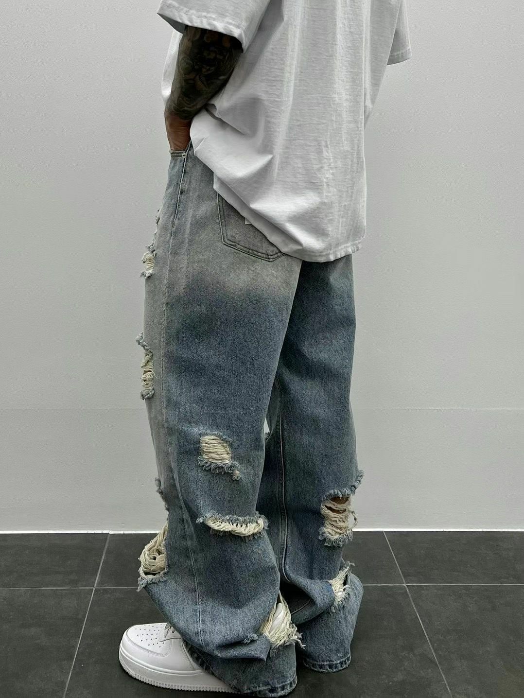 洗水破洞鬆身牛仔褲 LIL-008J
