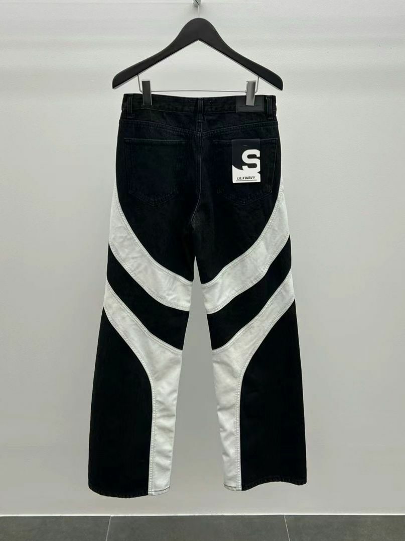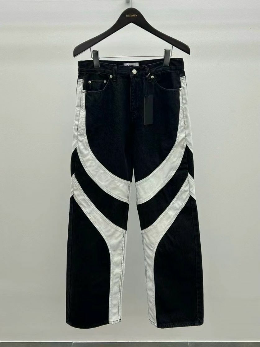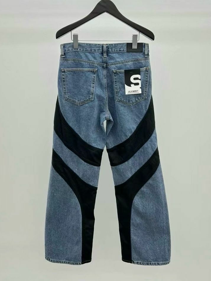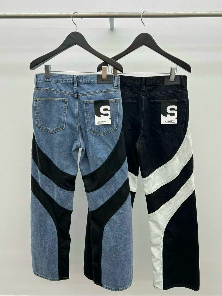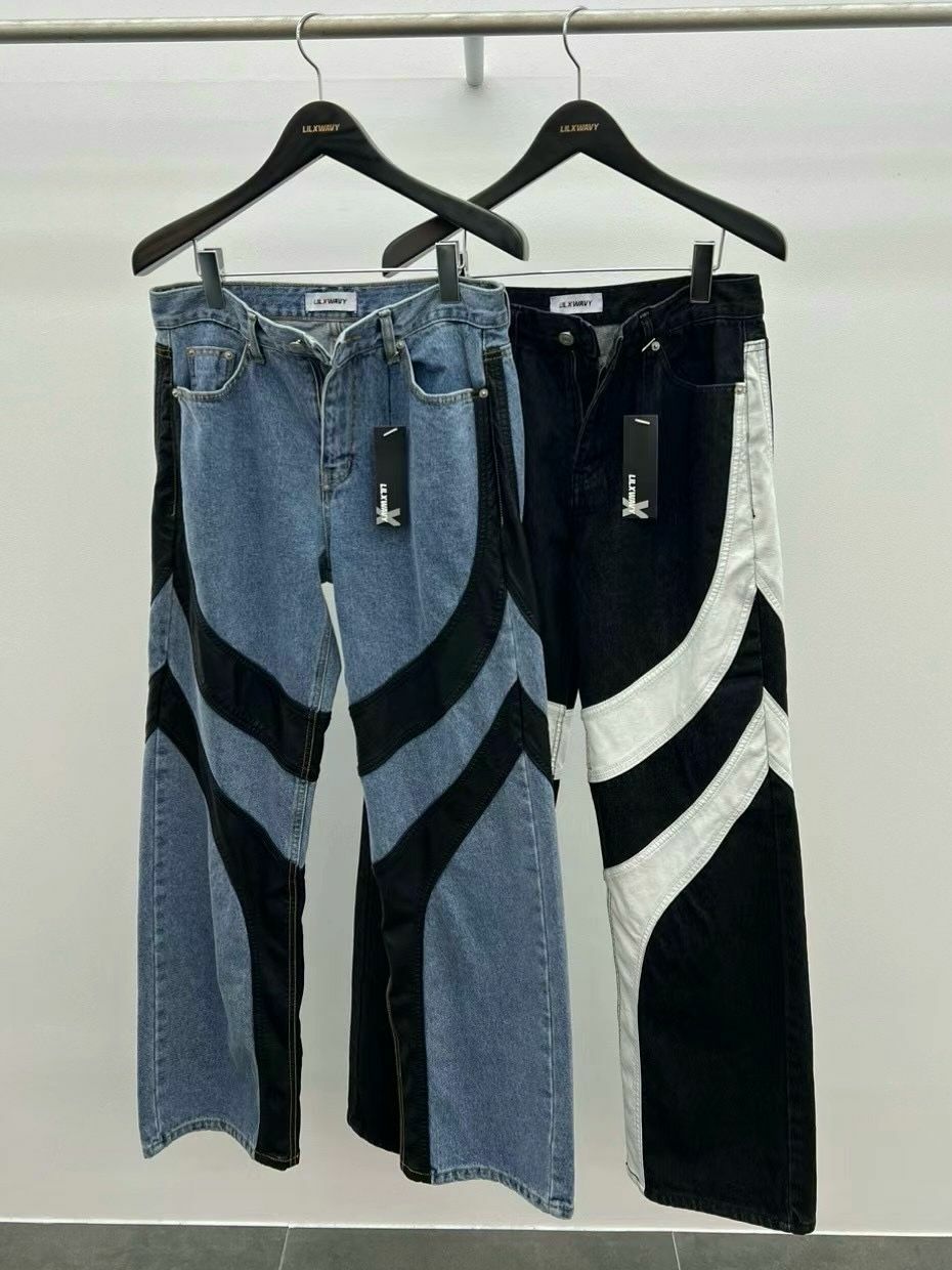 仿舊拼皮鬆身牛仔褲 LIL-016J