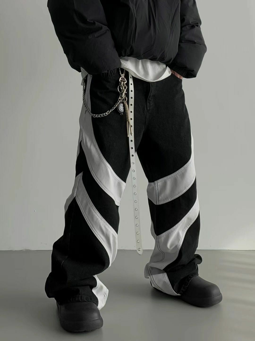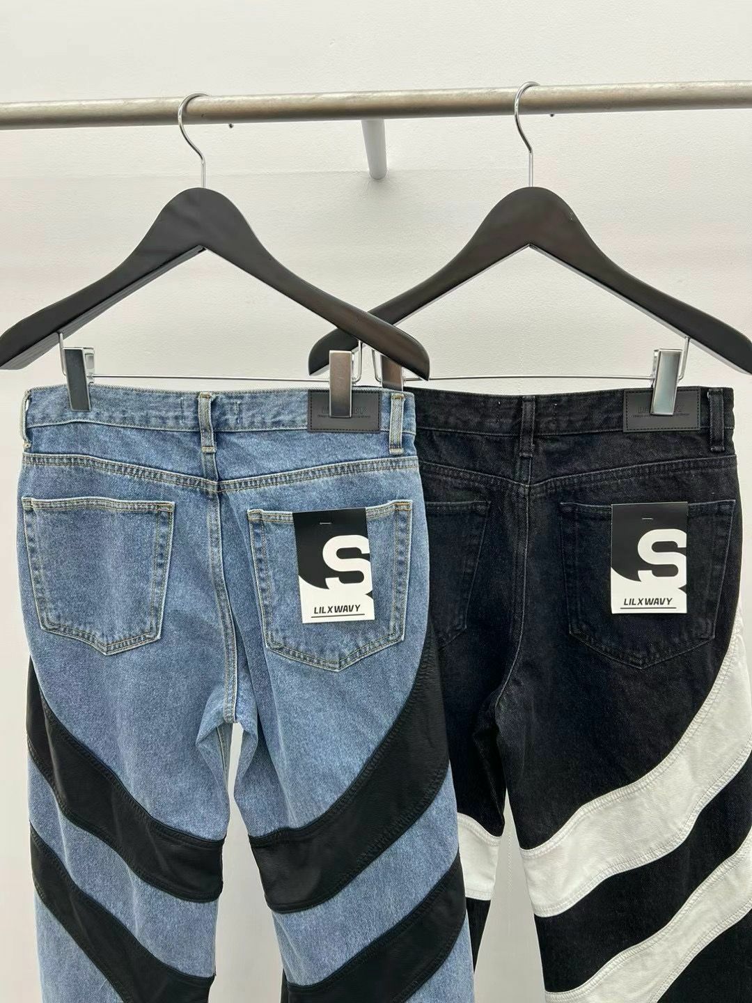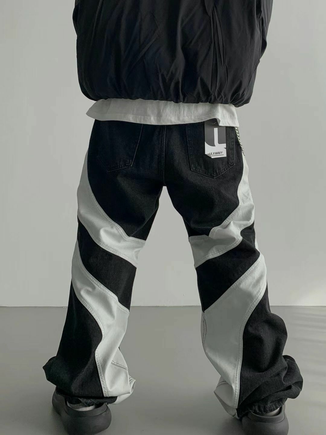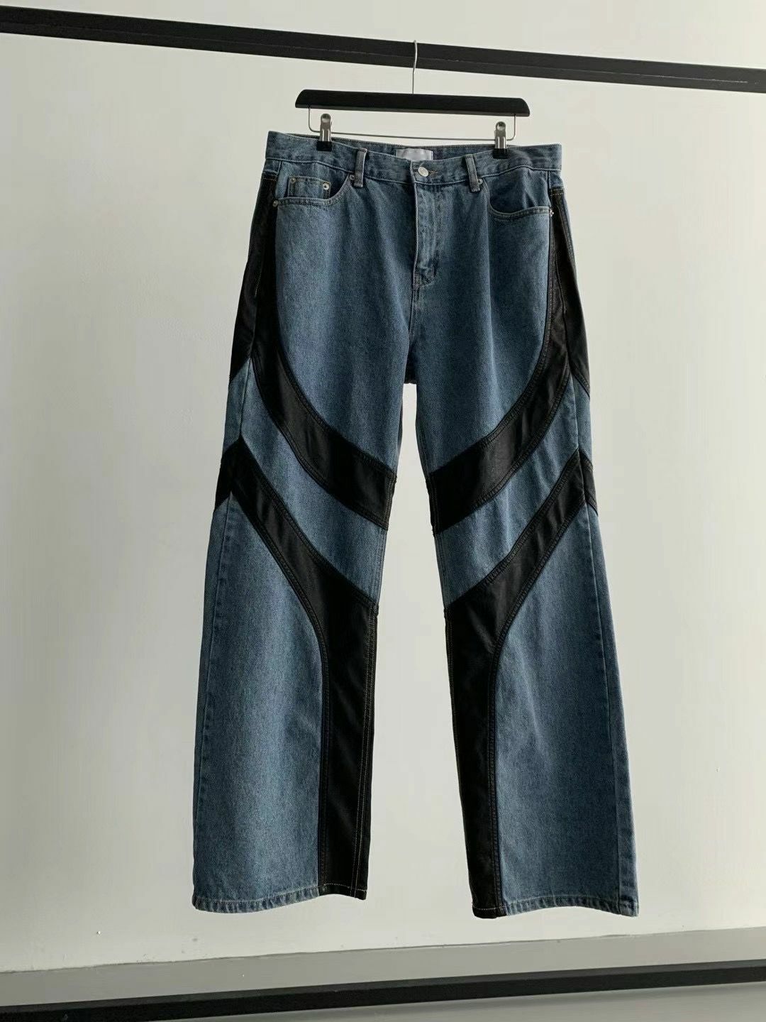 仿舊拼皮鬆身牛仔褲 LIL-016J
