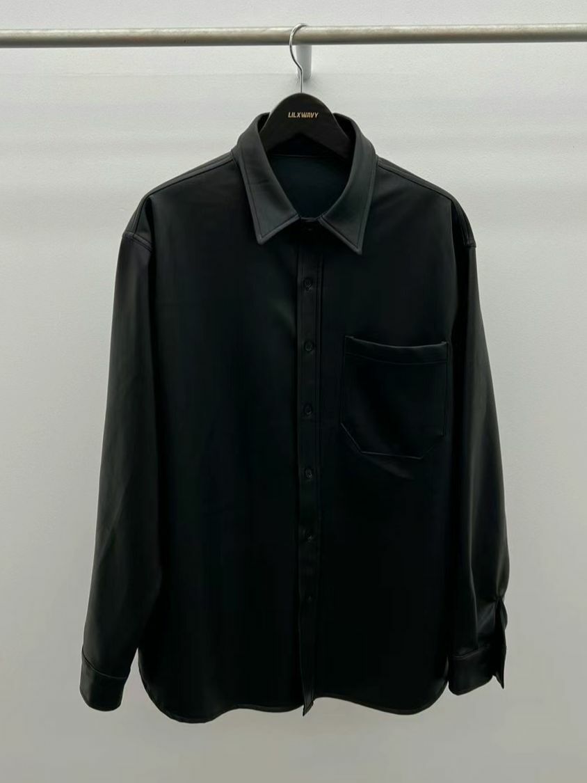 淨色合成皮長袖恤衫 LIL-018S