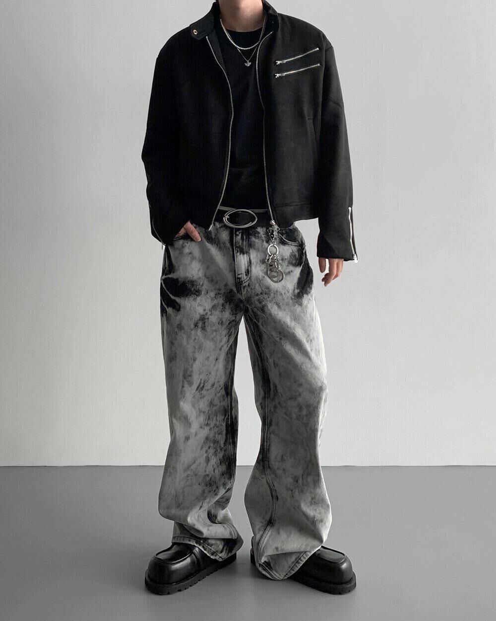 洗水紮染鬆身牛仔褲 LIL-031J