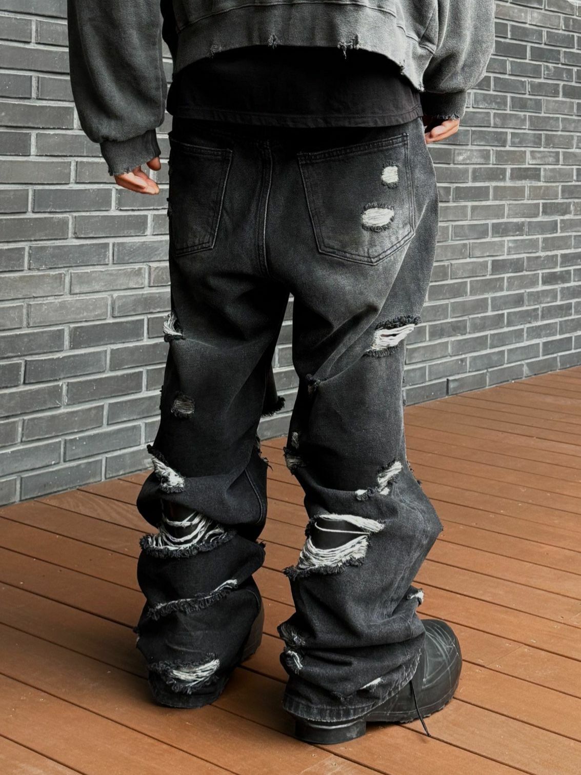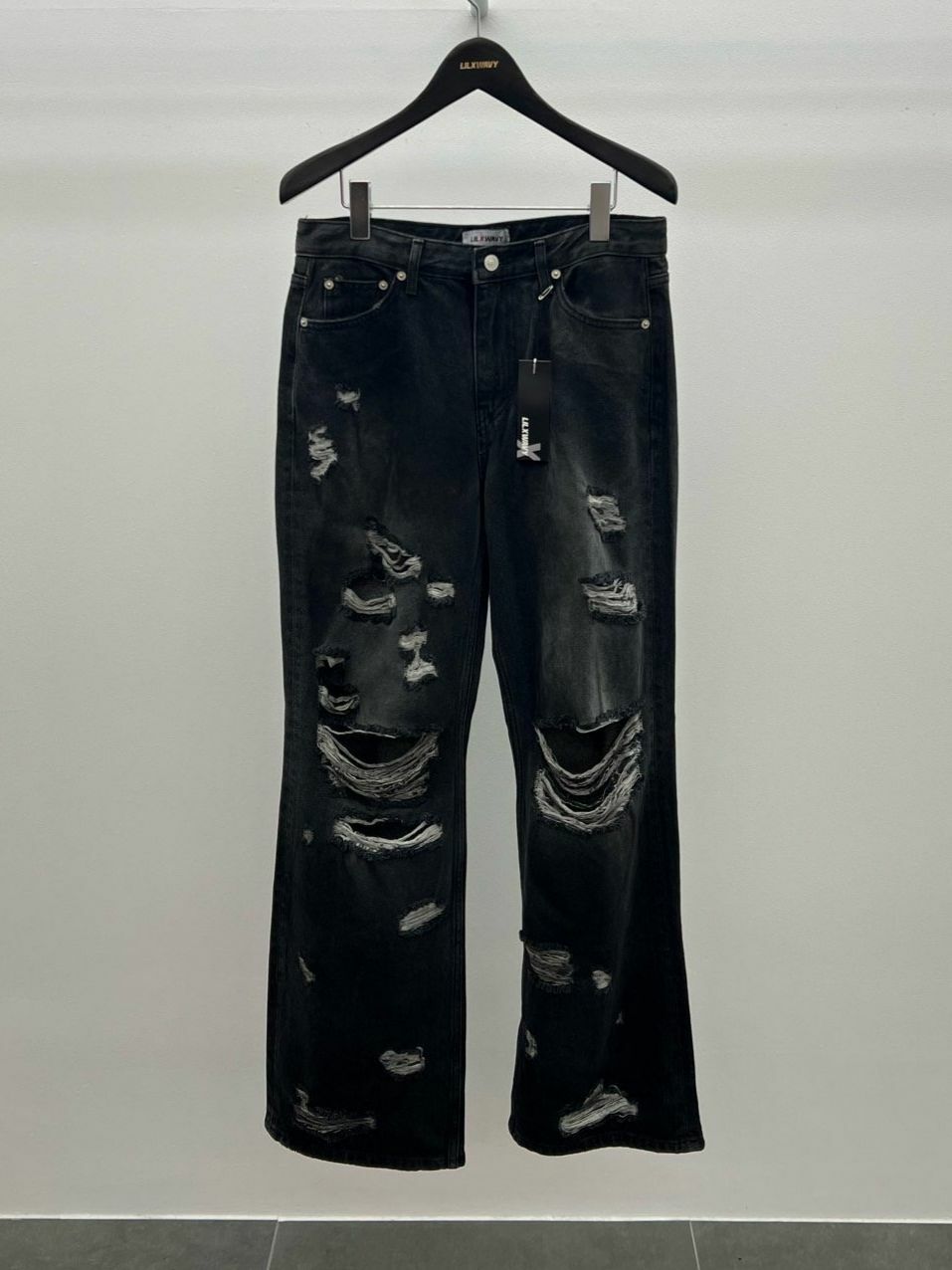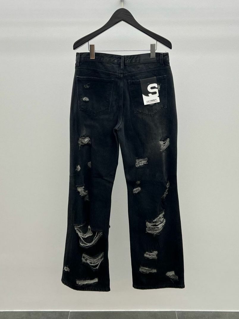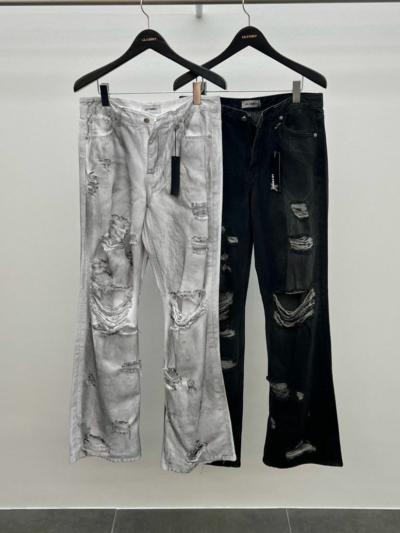 洗水仿污破洞淨色鬆身牛仔褲 LIL-032J