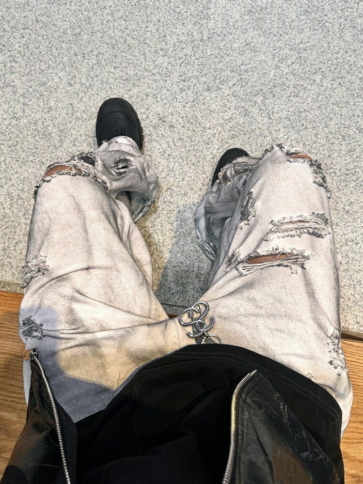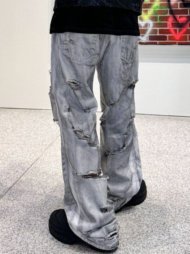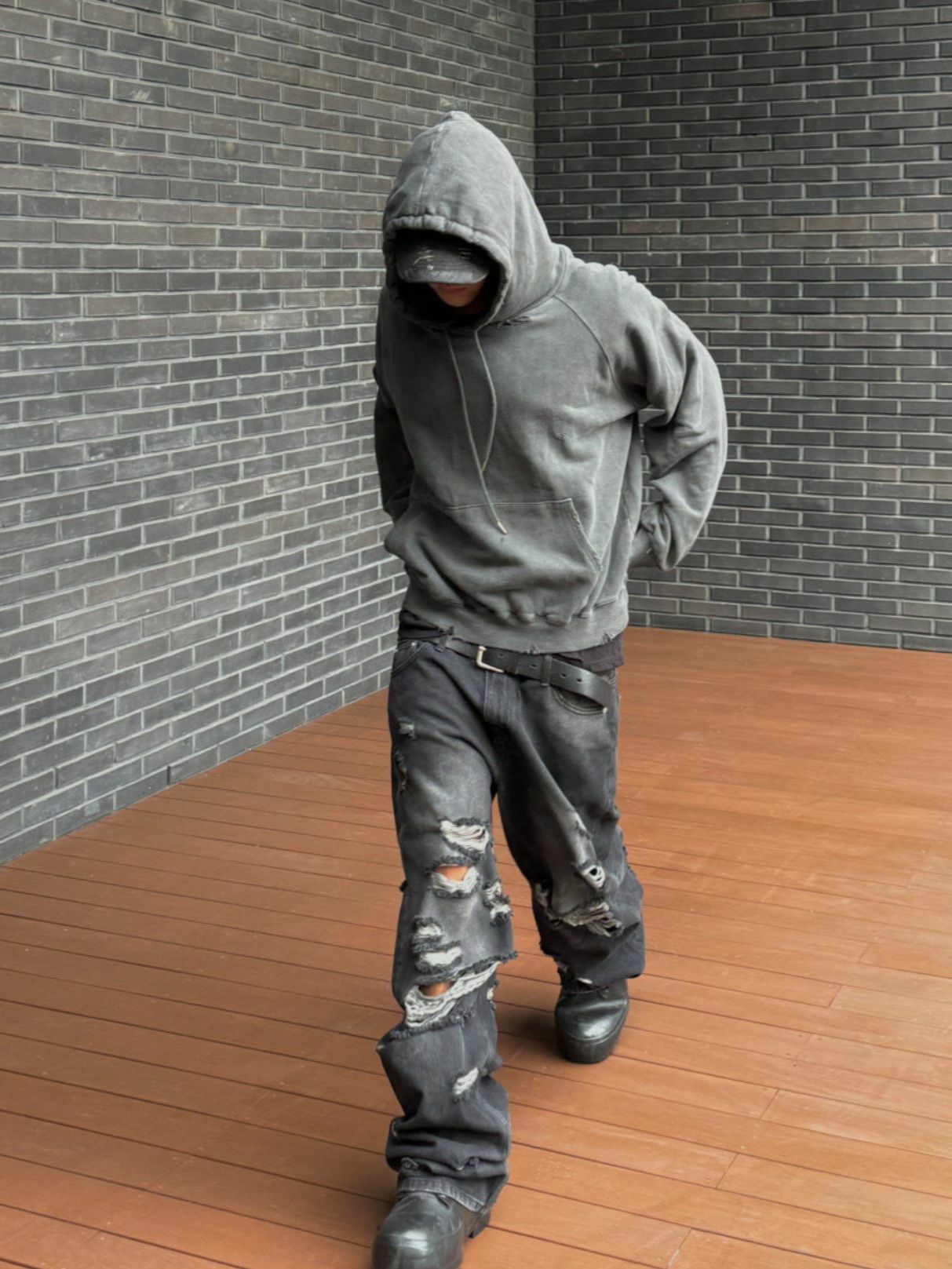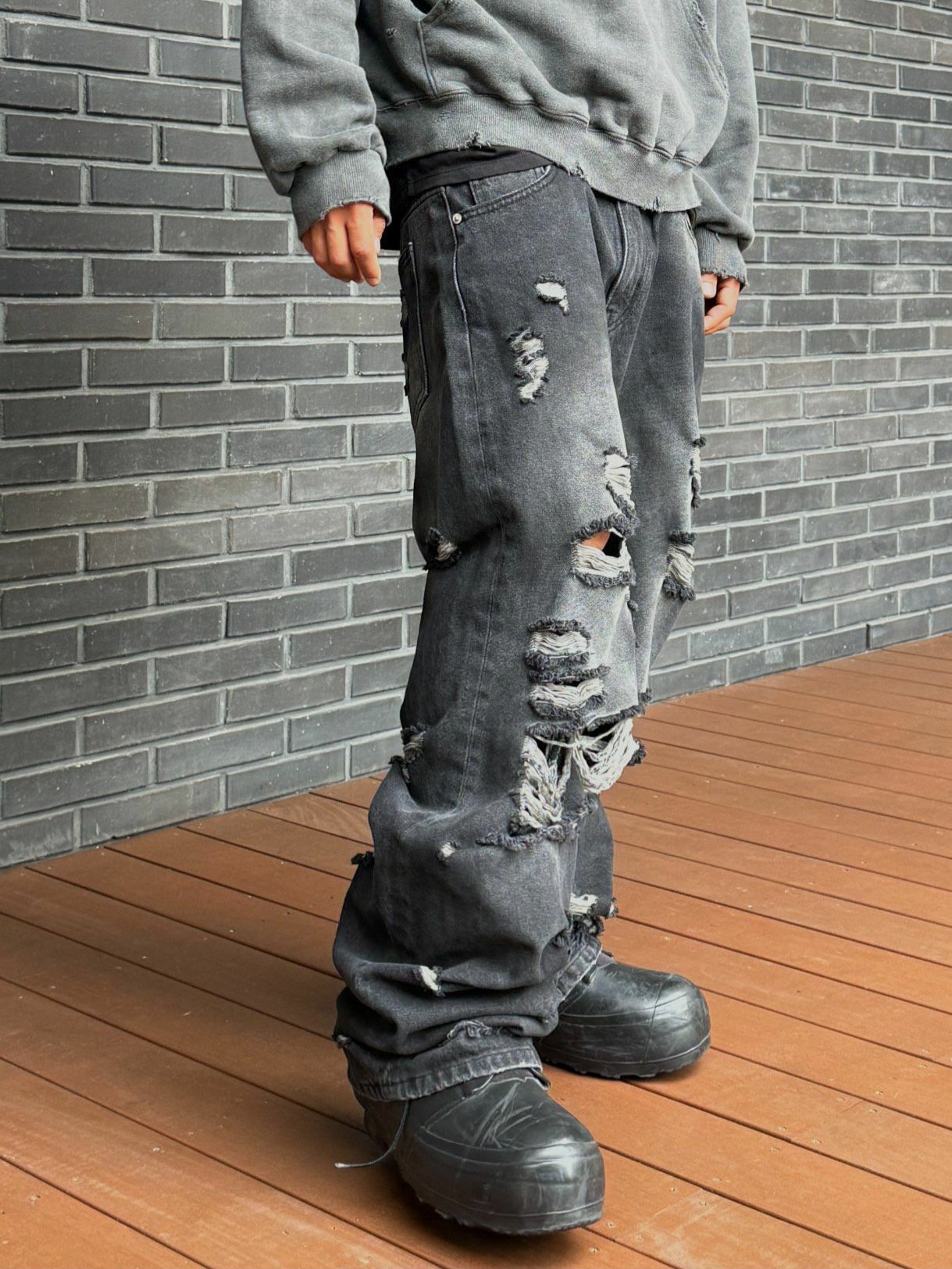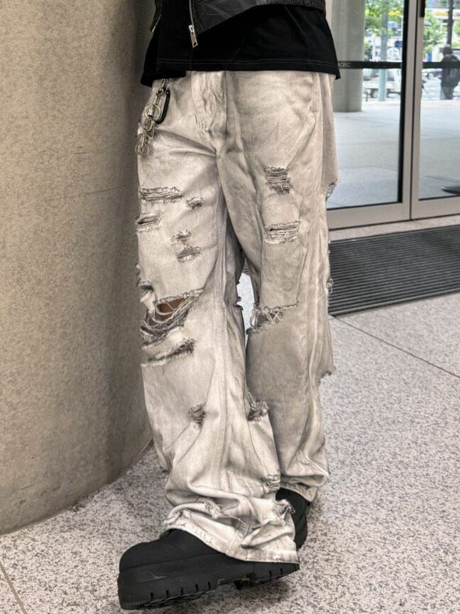 洗水仿污破洞淨色鬆身牛仔褲 LIL-032J