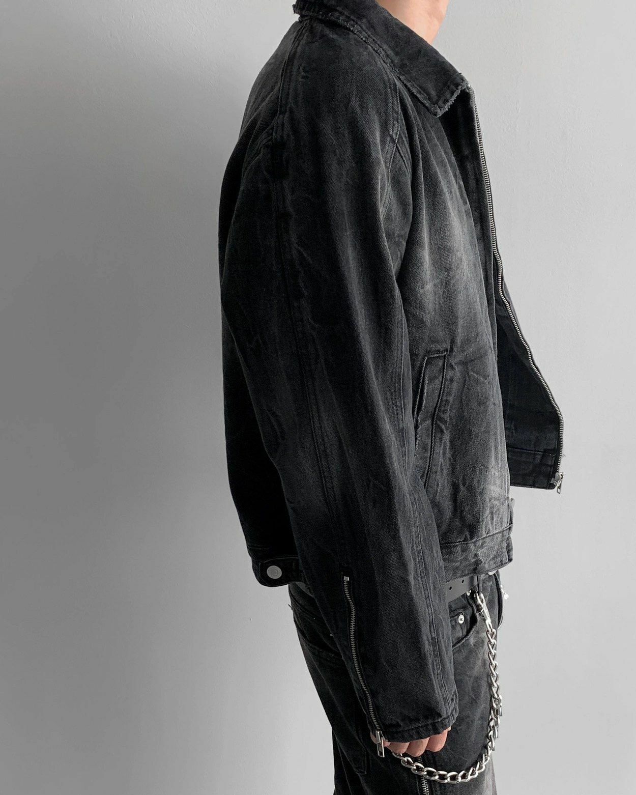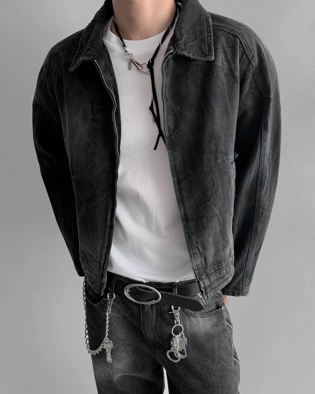 洗水反領拉鍊牛仔褸 LIL-035JK