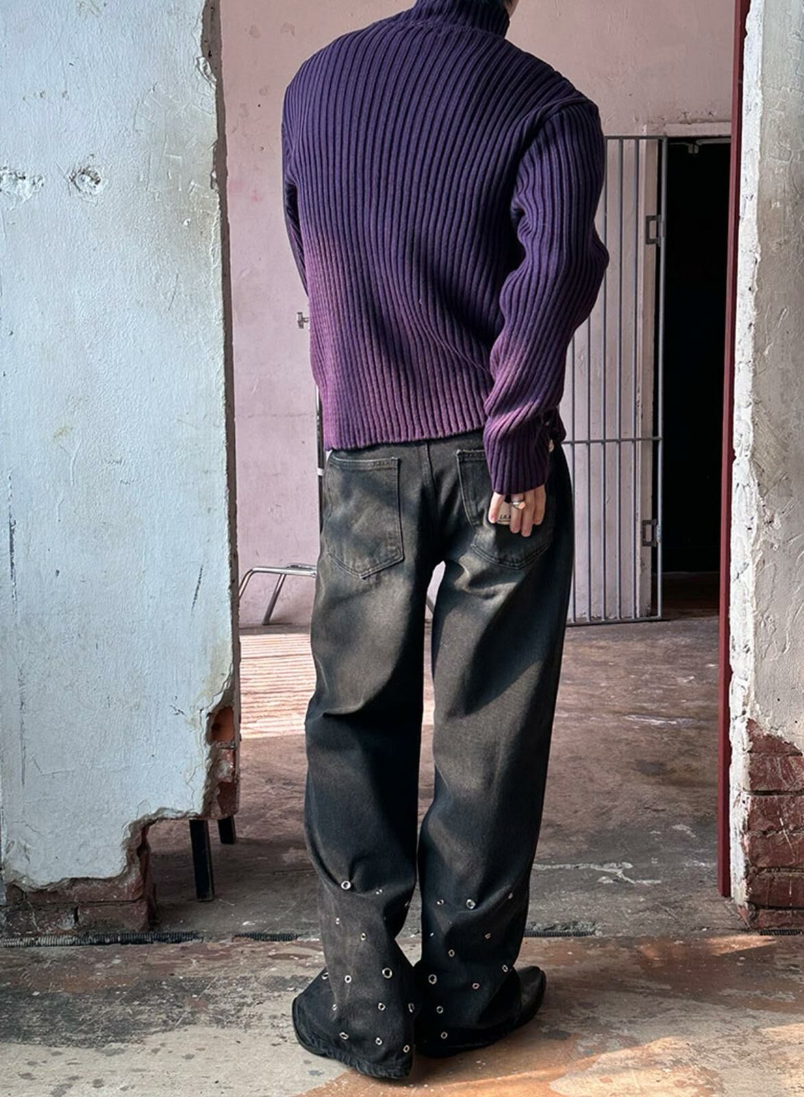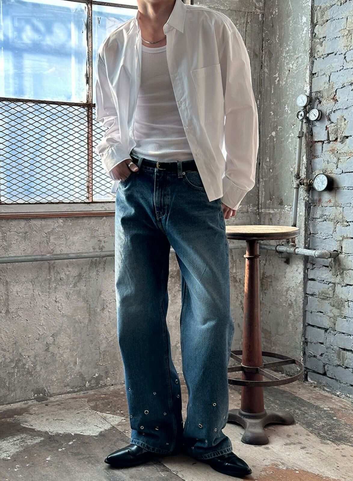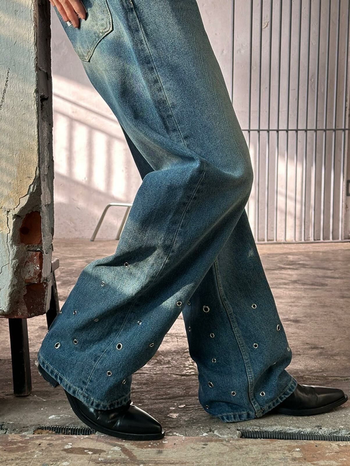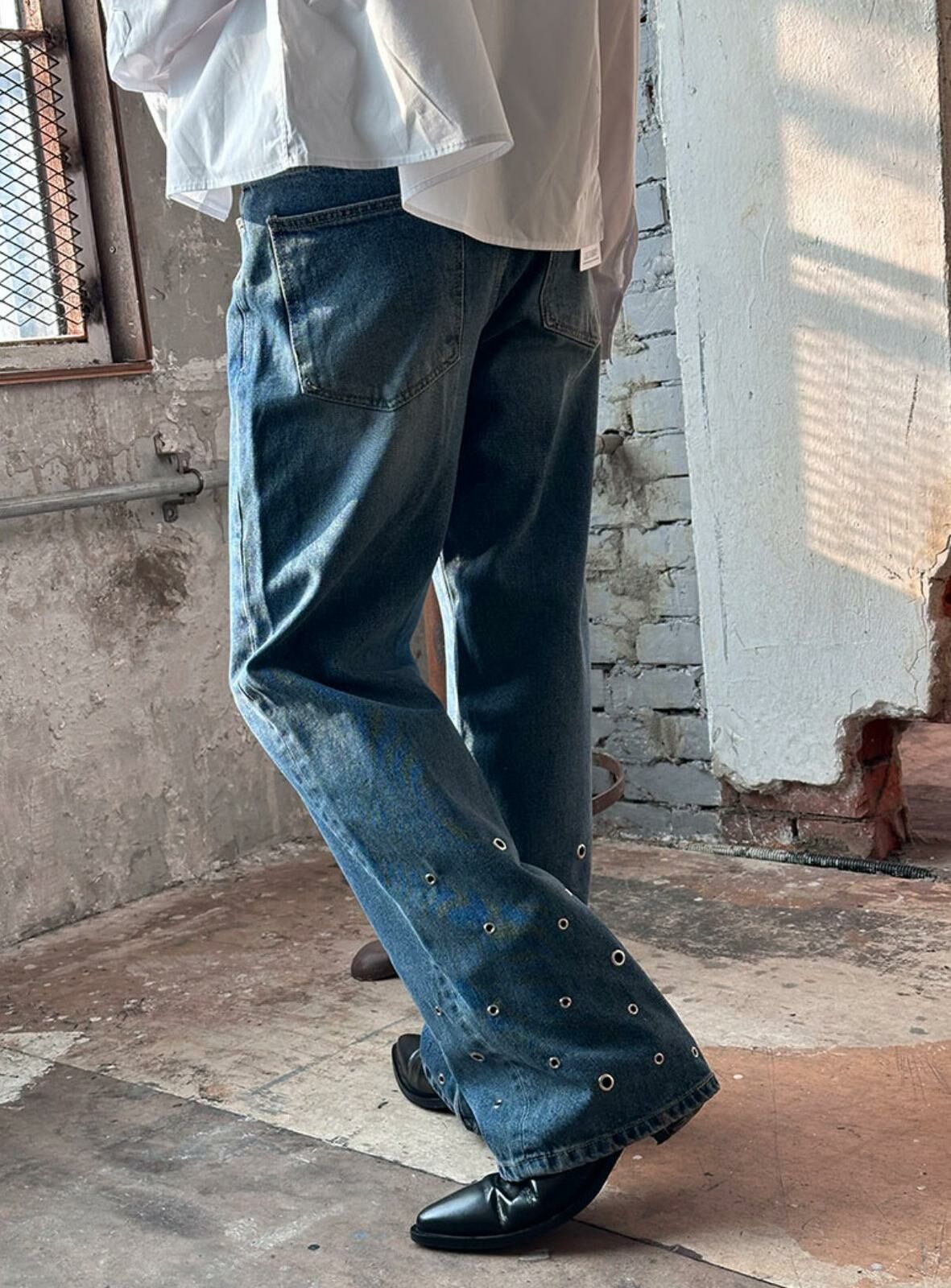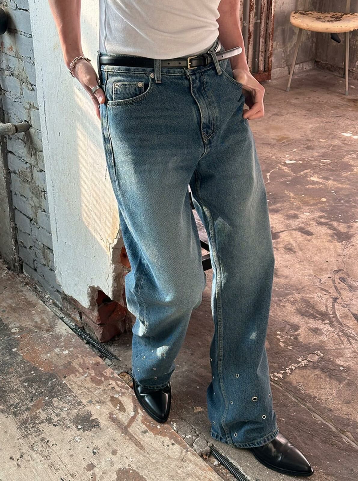 洗水鍋釘鬆身牛仔褲 LIL-044P