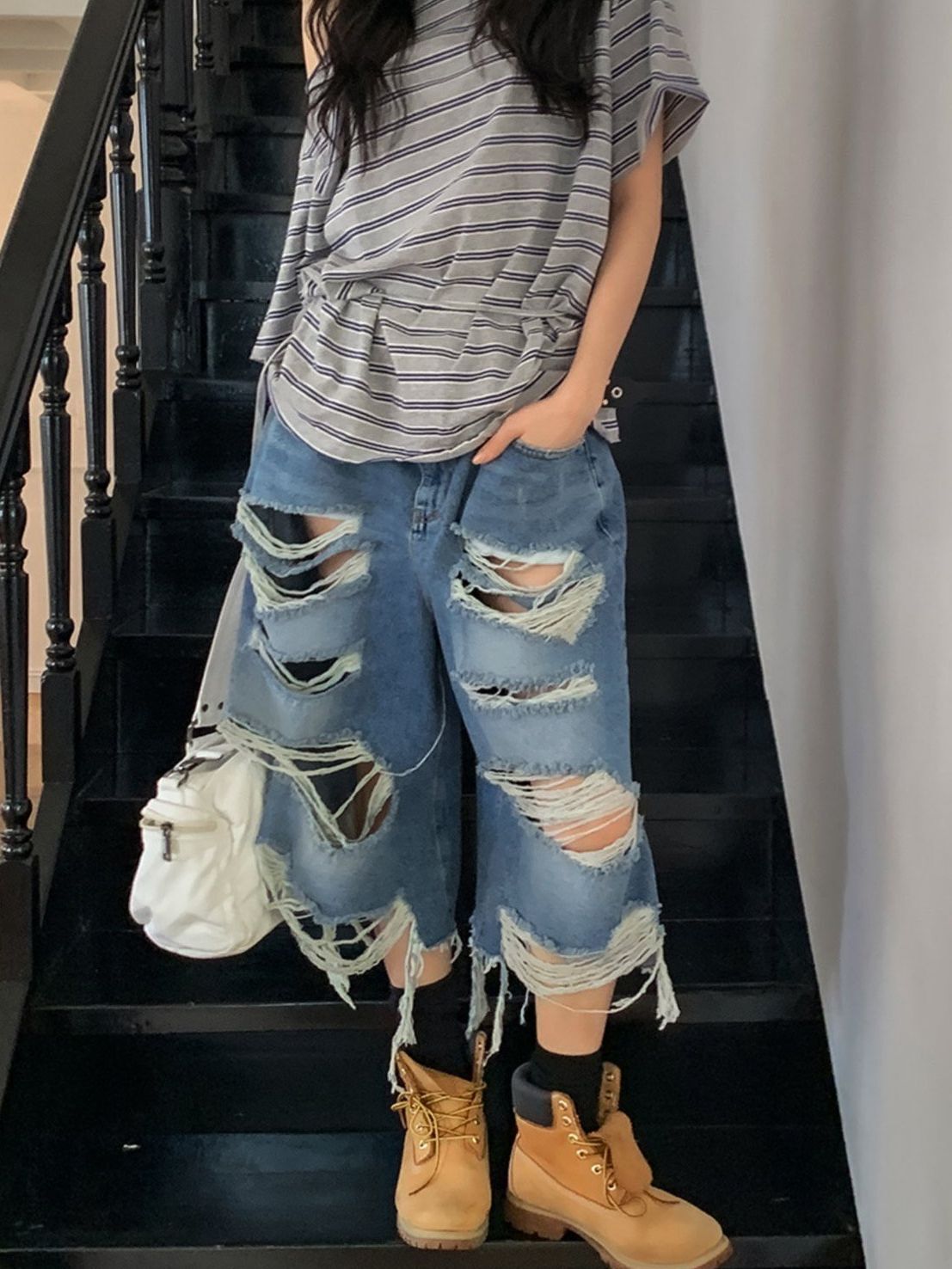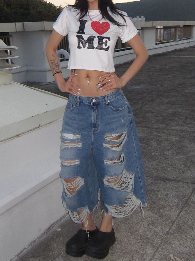 洗水破洞牛仔短褲 LIL-057P