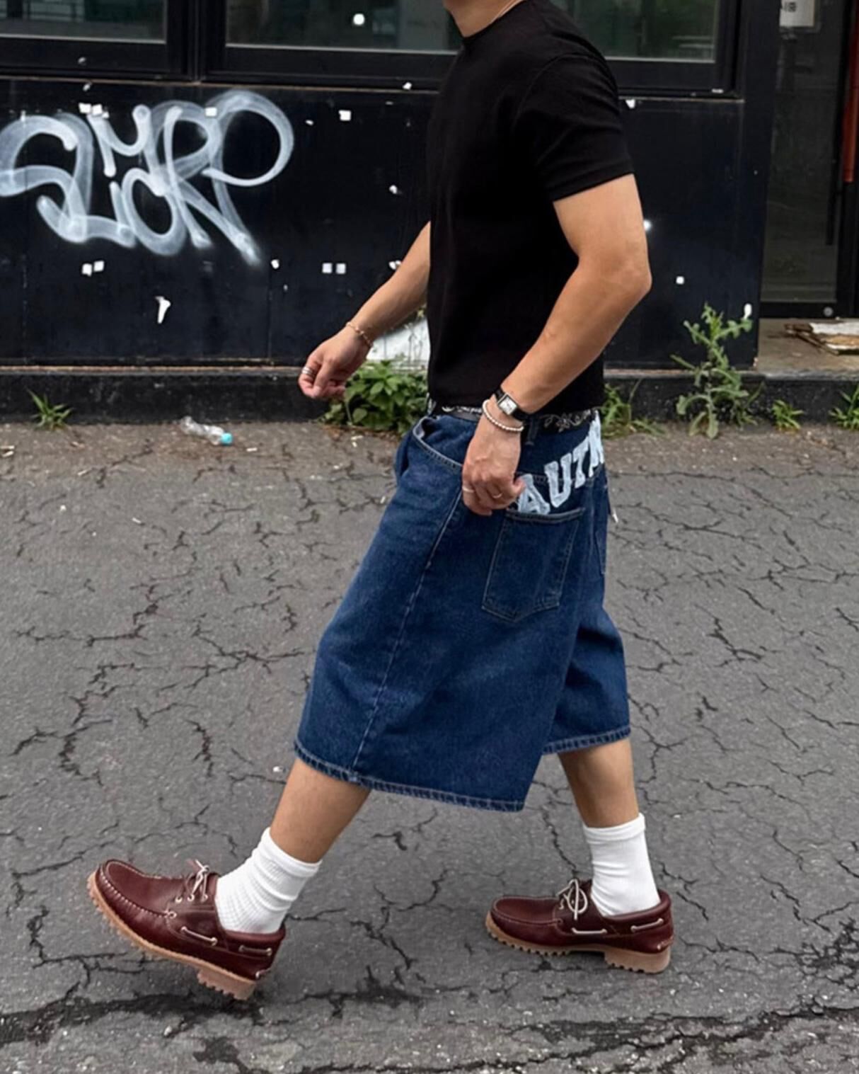 洗水英文字牛仔短褲 LIL-058P