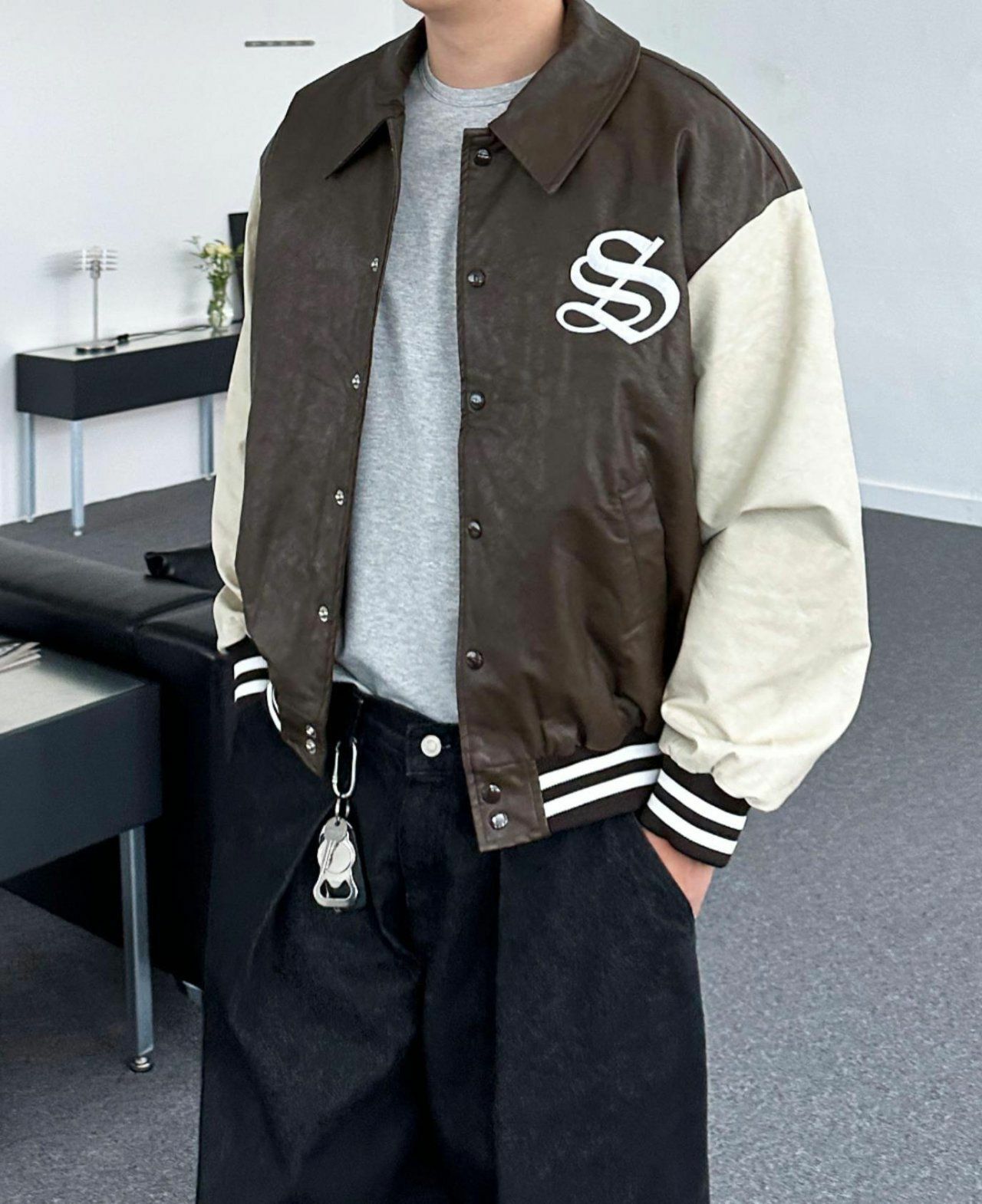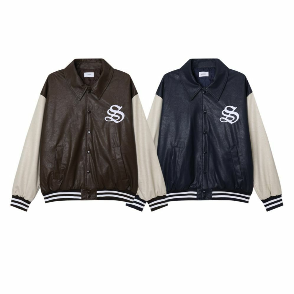 恤衫領拼色合成皮褸(薄夾棉) LOBBY-010JK