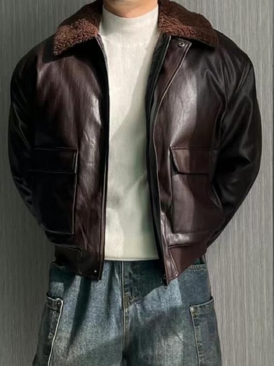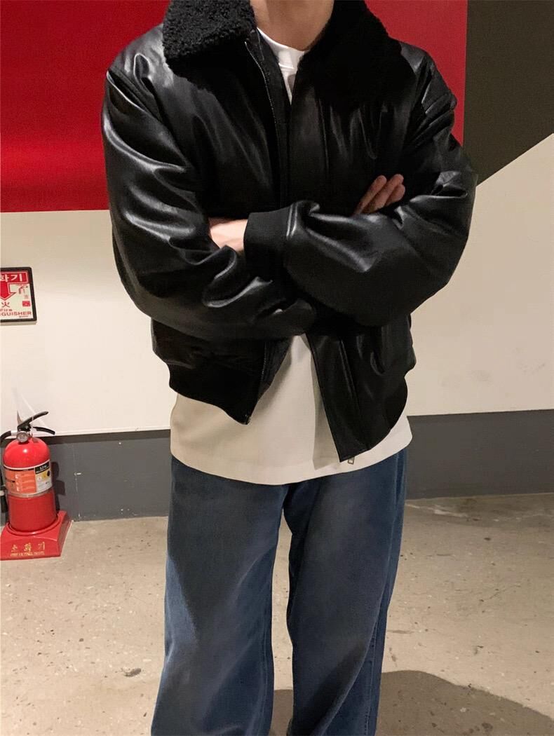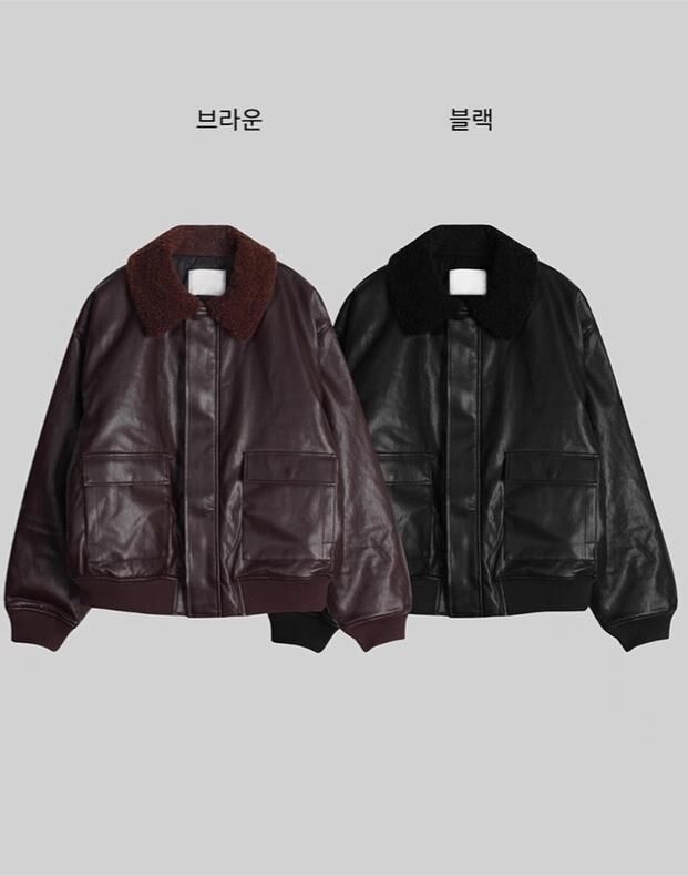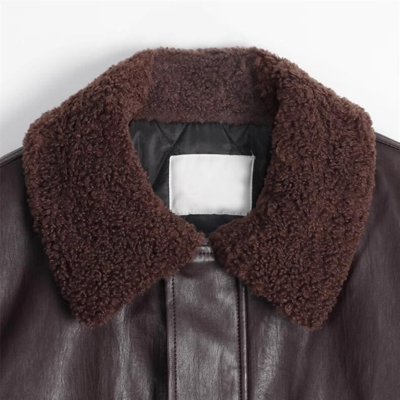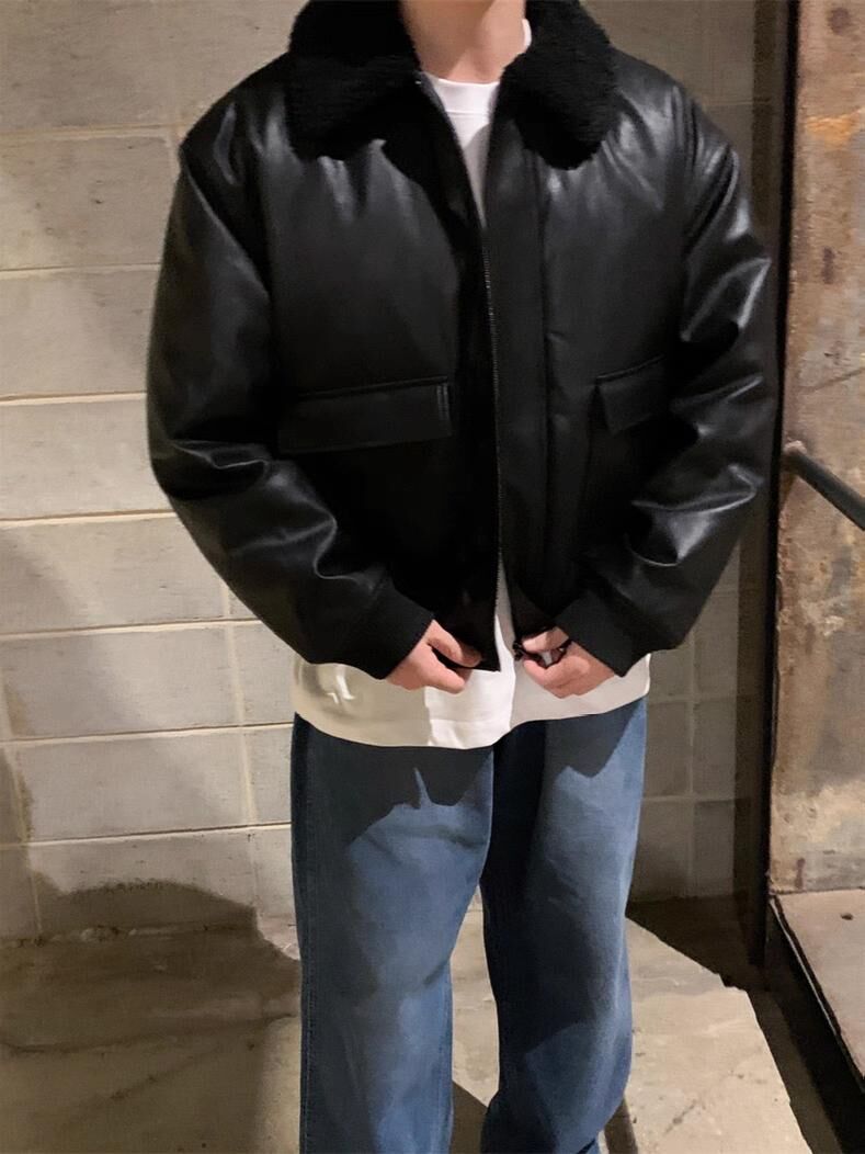 毛毛領拉鍊合成皮褸(薄夾棉) LOCAL-022JK