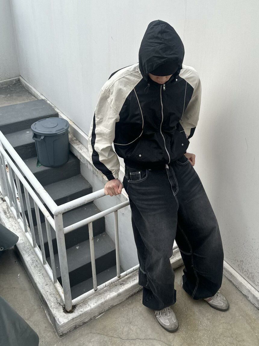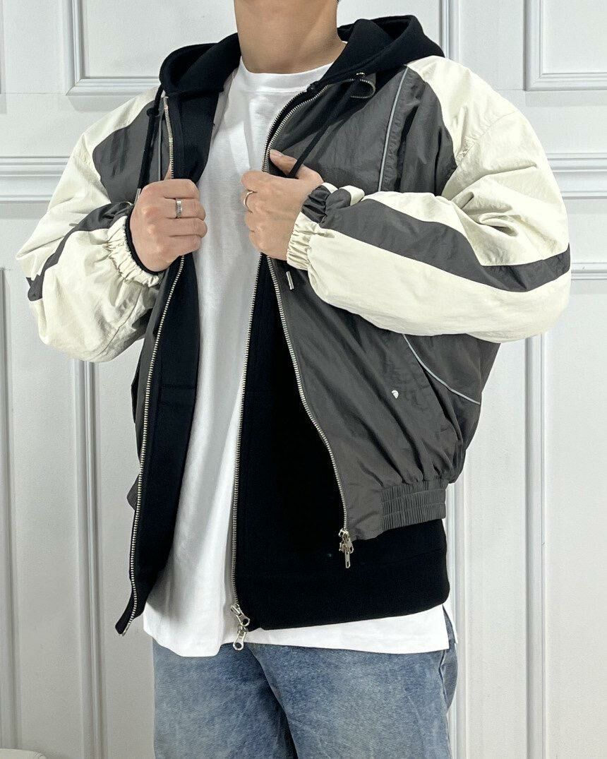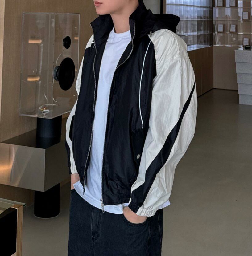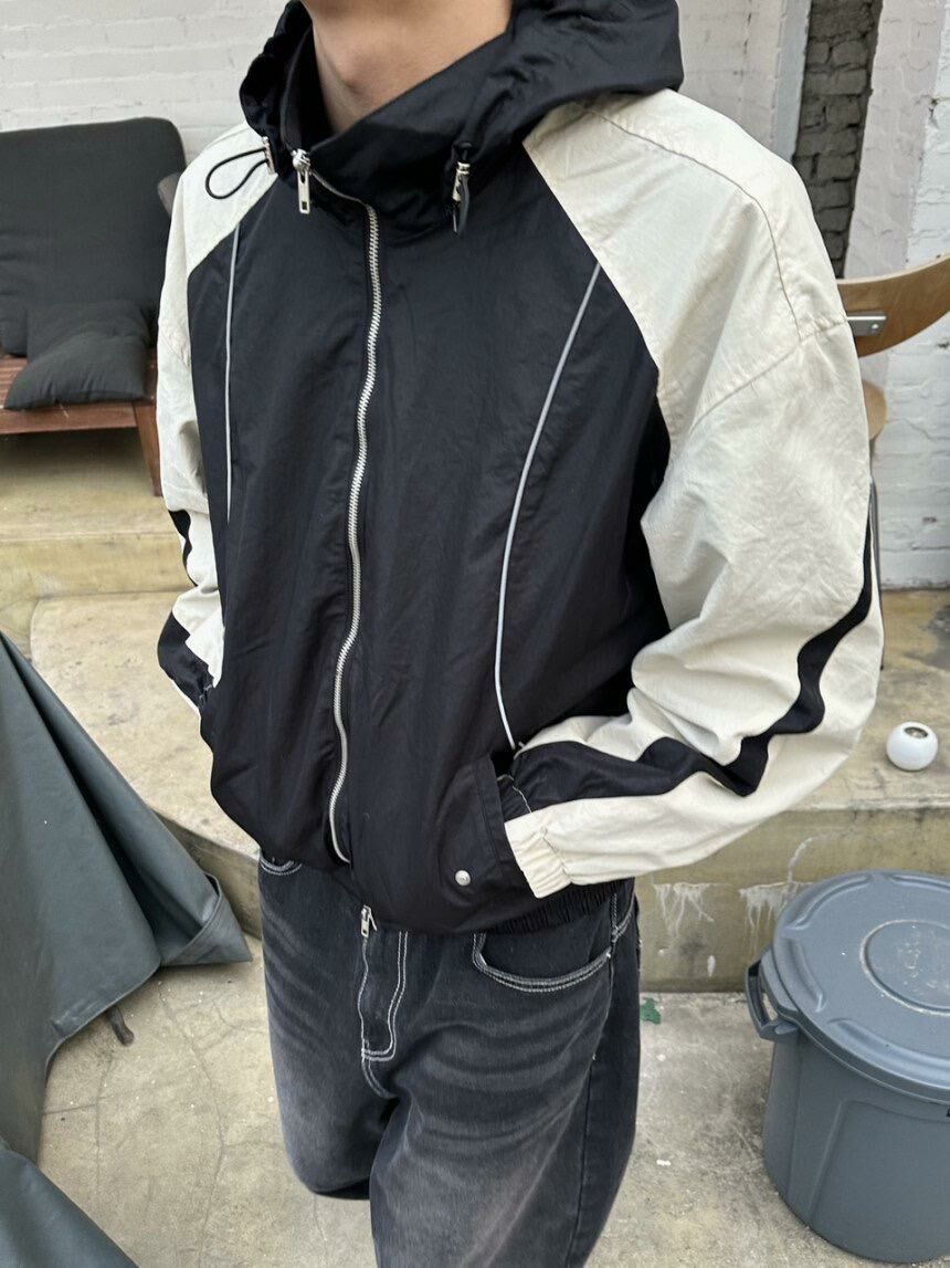 拼色連帽拉鍊外套 Lowell-026JK