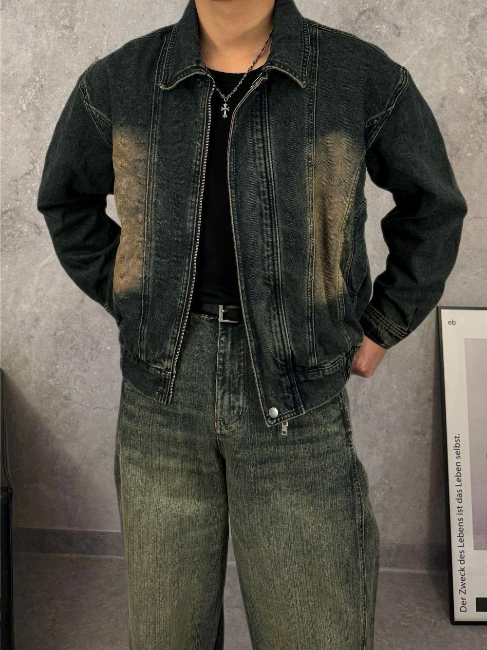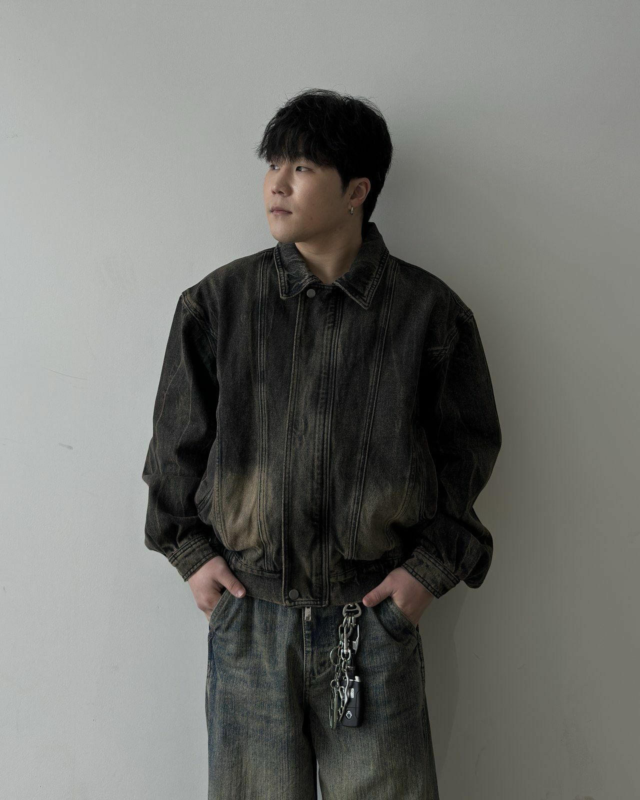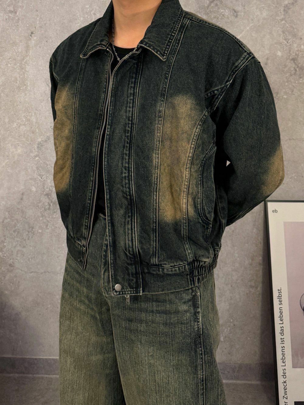 洗水反領拉鍊牛仔褸 Lowell-029JK