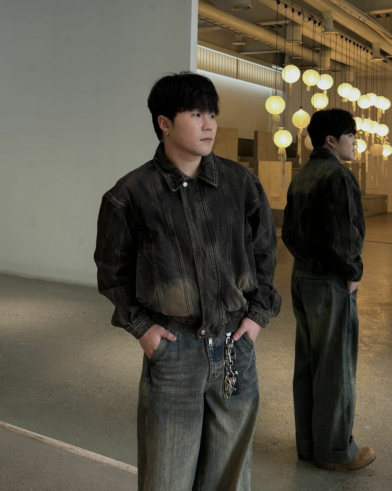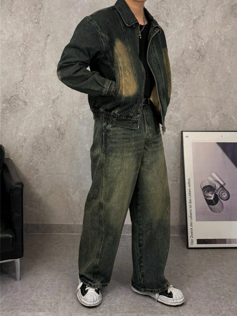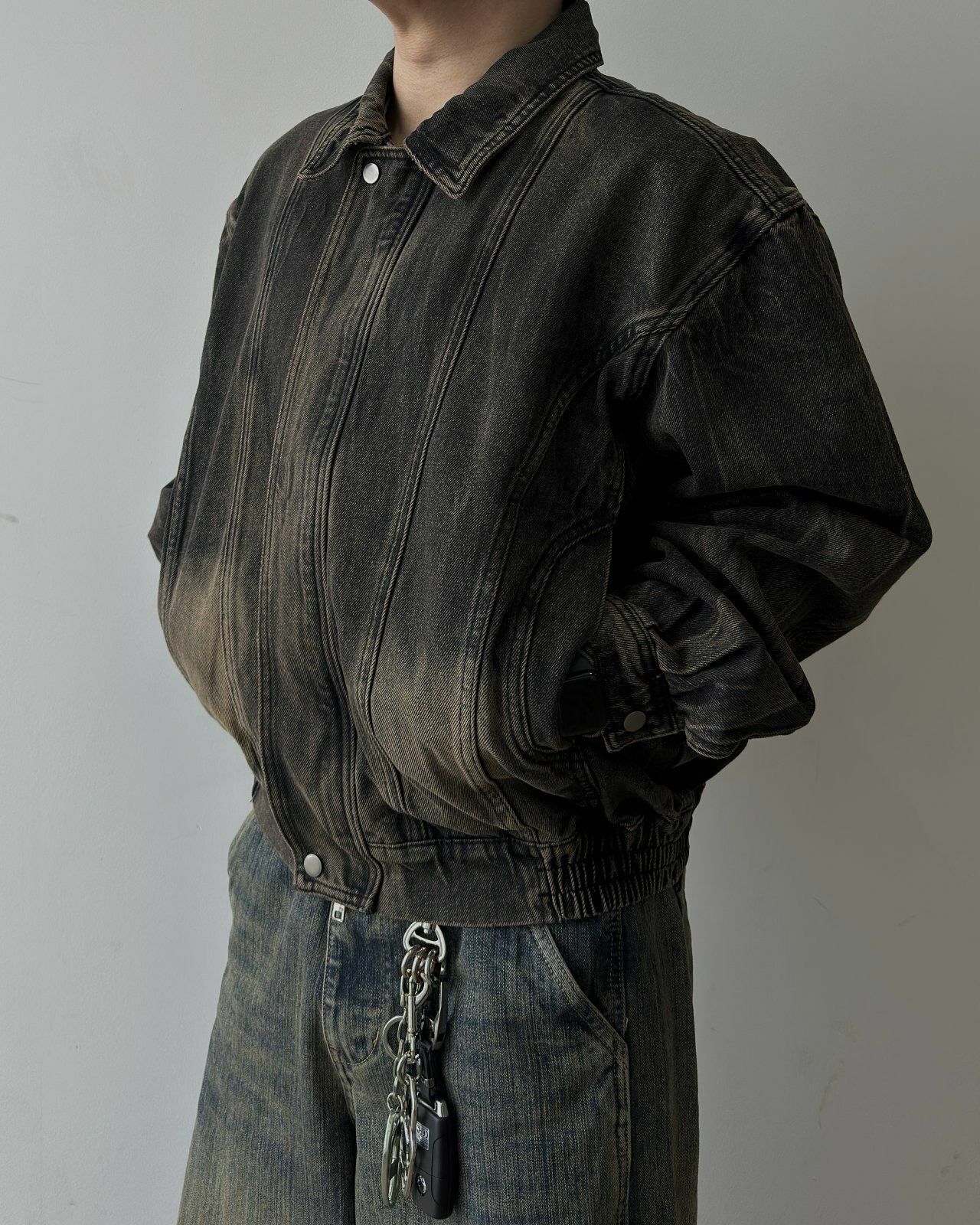 洗水反領拉鍊牛仔褸 Lowell-029JK