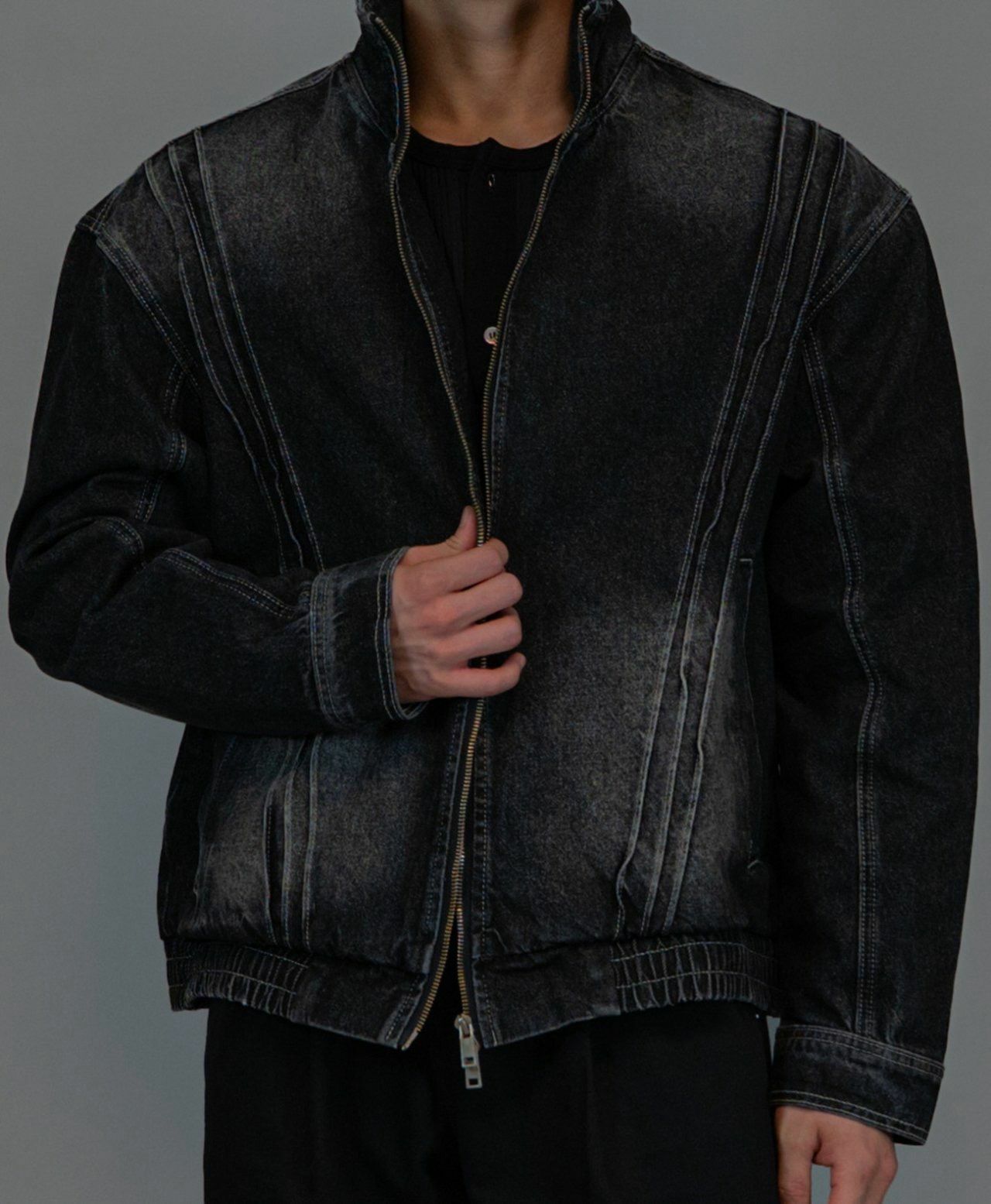 洗水企領拉鍊牛仔褸 Lowell-036JK