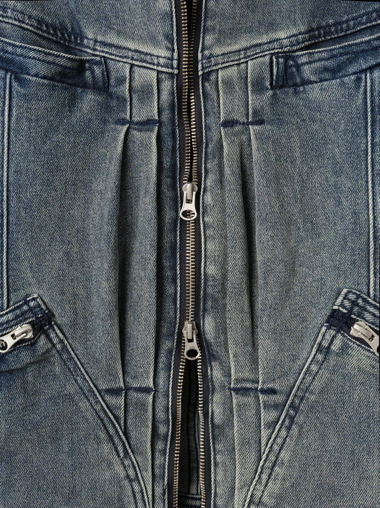 洗水企領拉鍊牛仔褸 Lowell-037JK