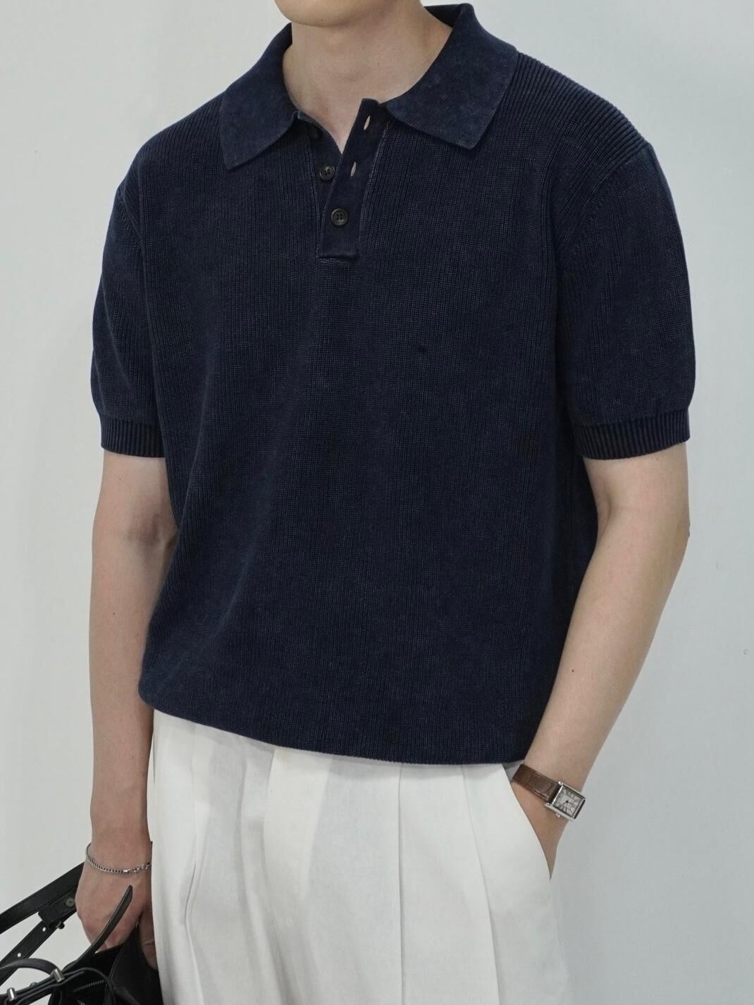 淨色短袖針織線Polo Tee Lowell-060T