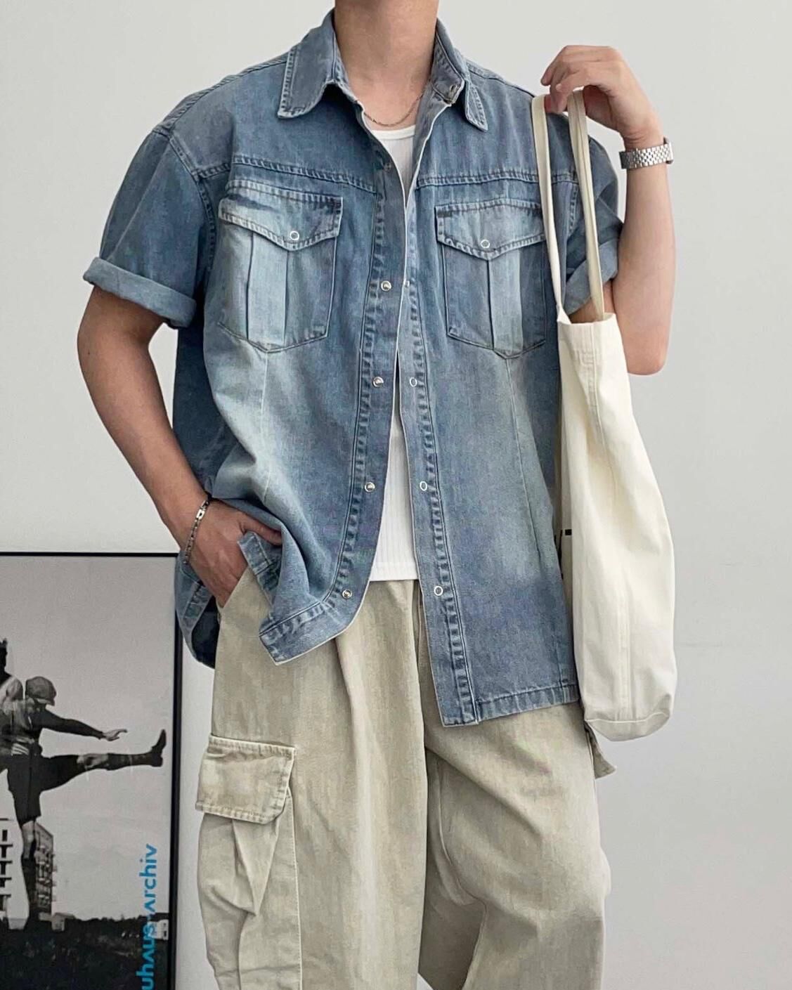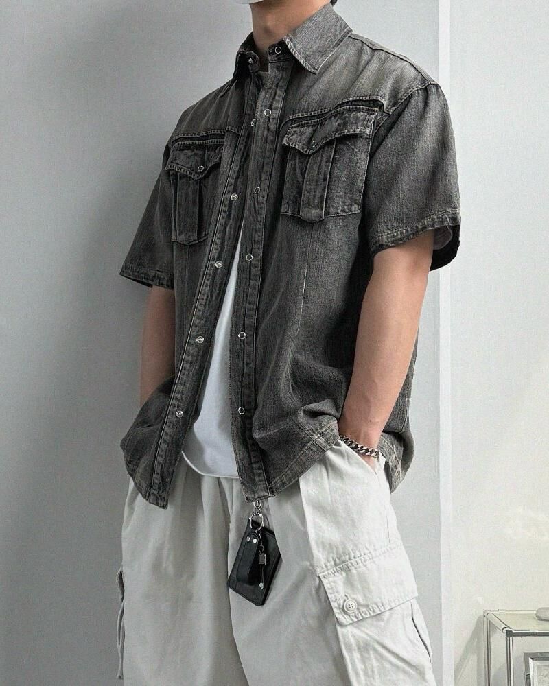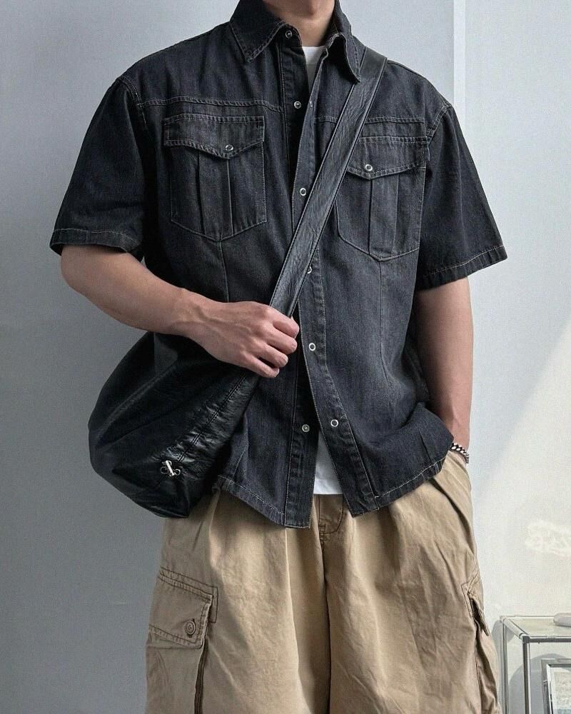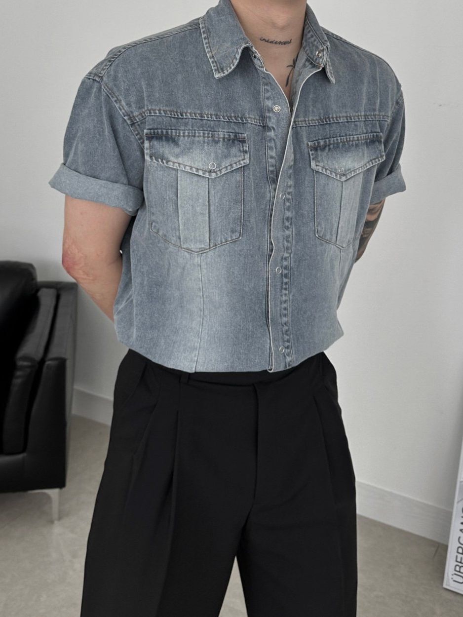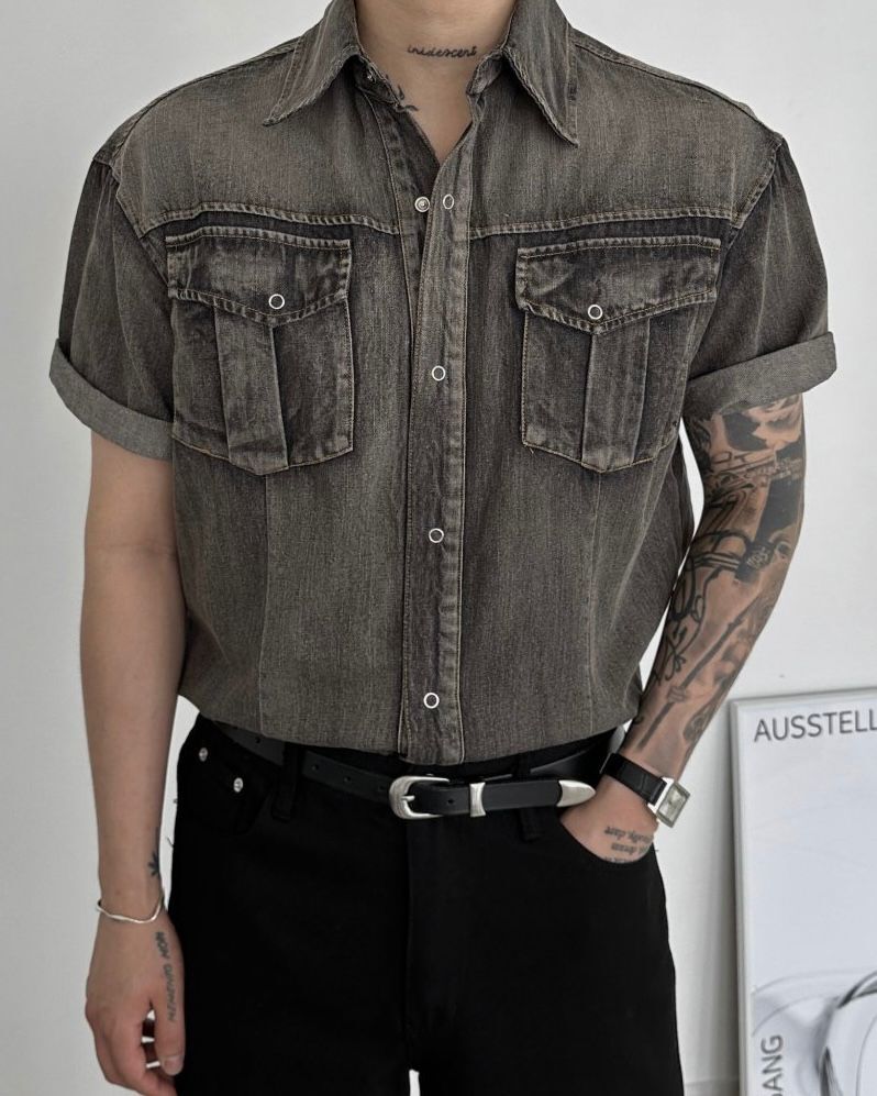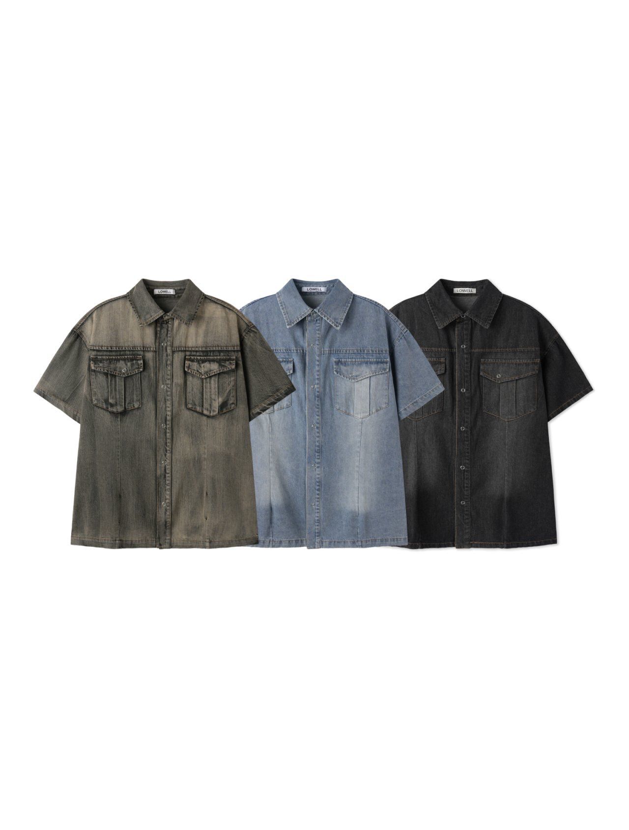 洗水牛仔短袖恤衫 Lowell-067S