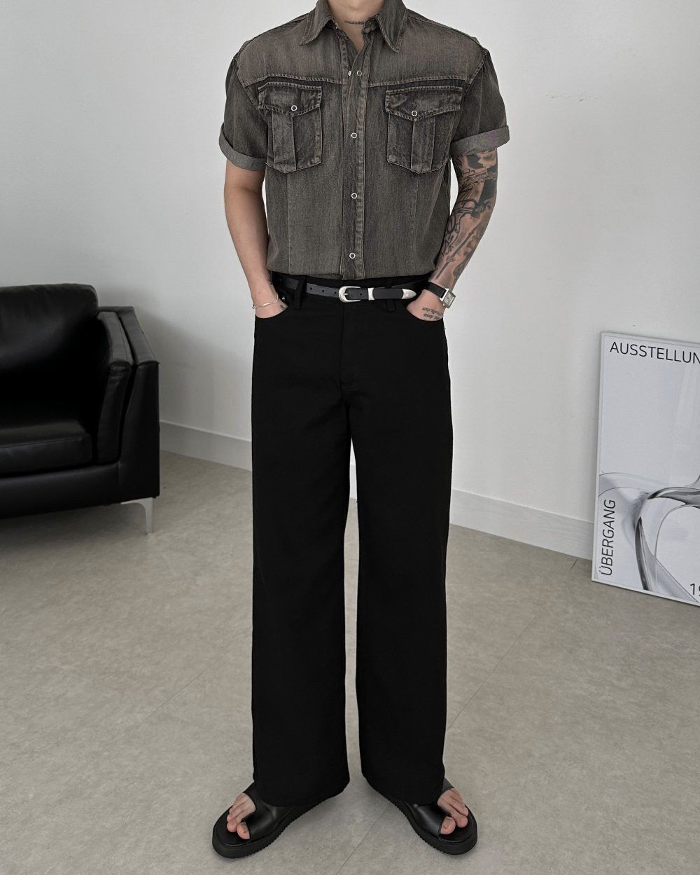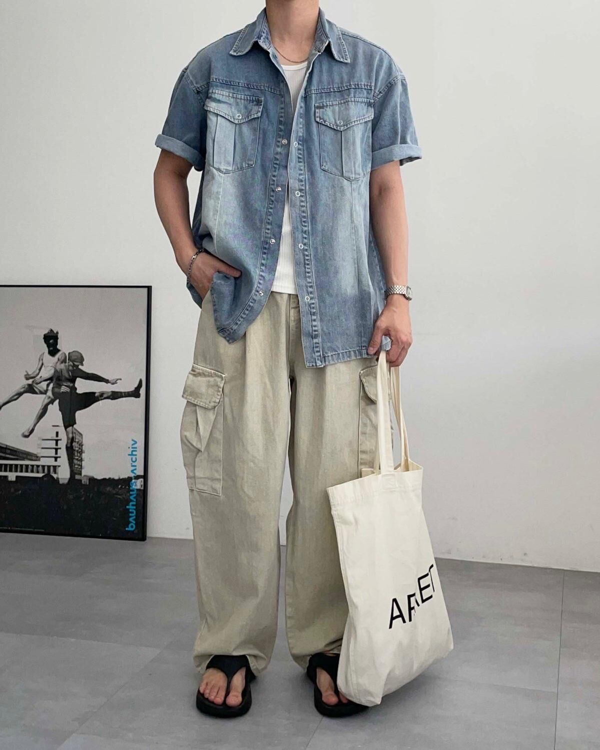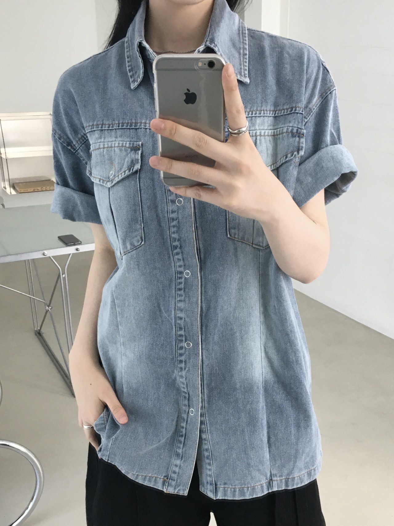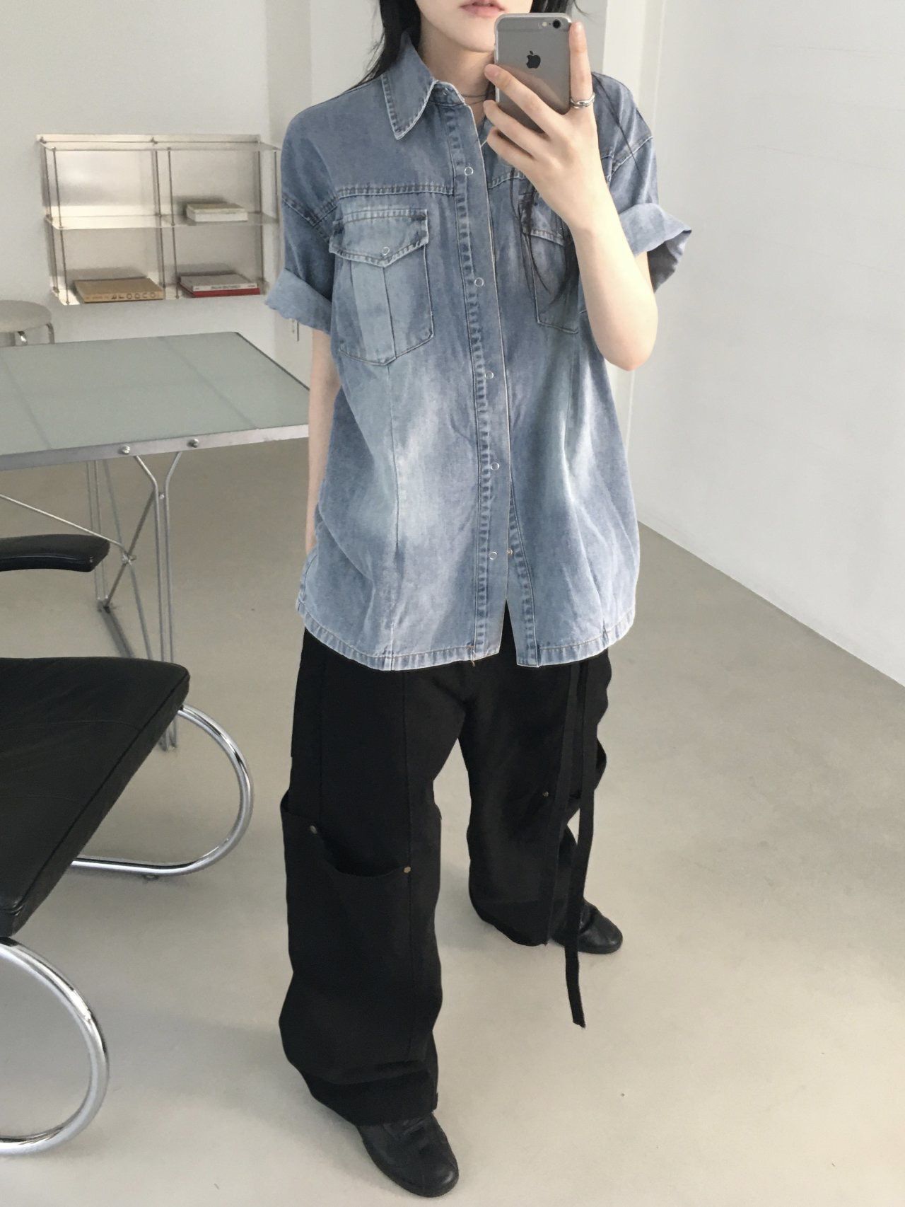 洗水牛仔短袖恤衫 Lowell-067S