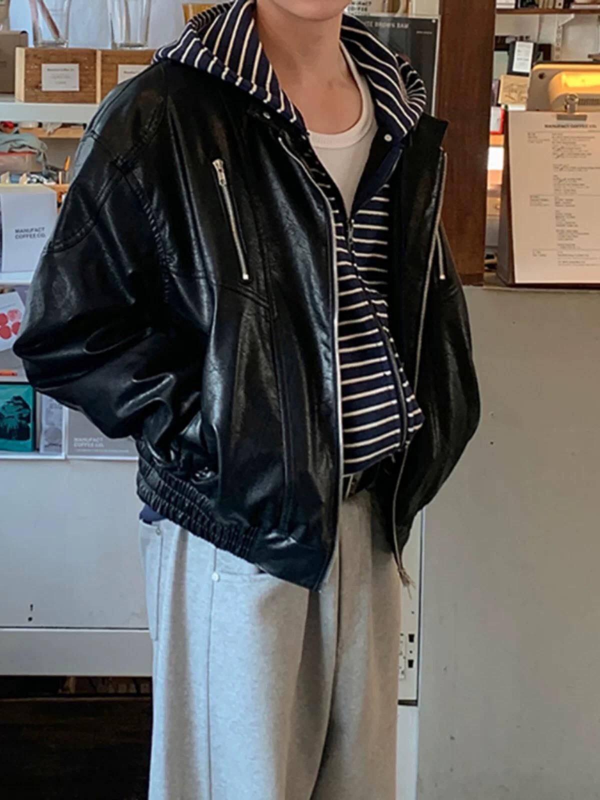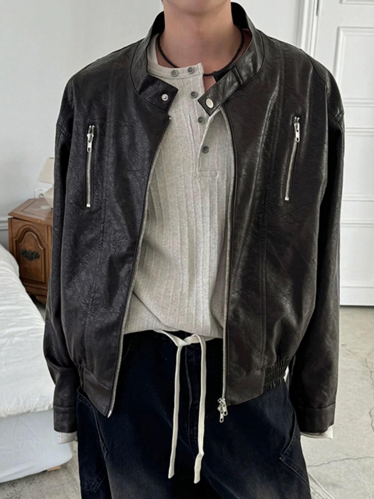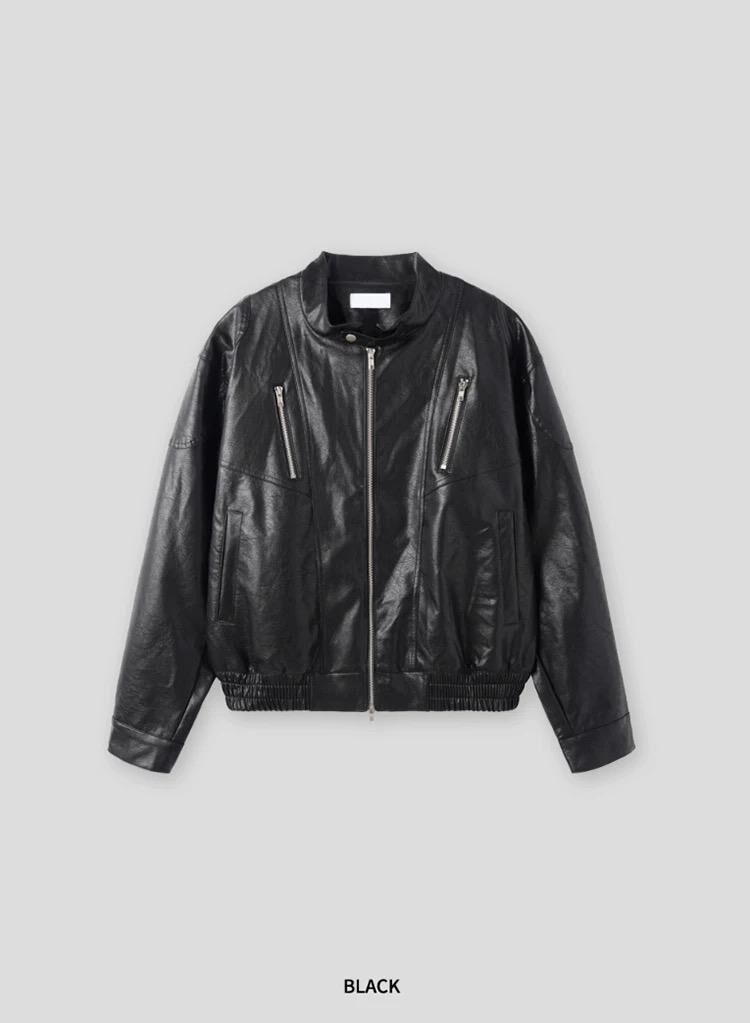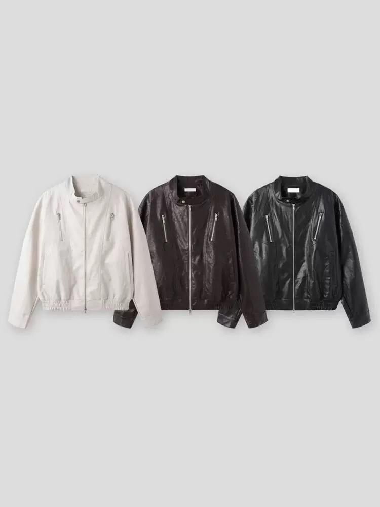 企領拉鍊合成皮褸 Lowell-082JK
