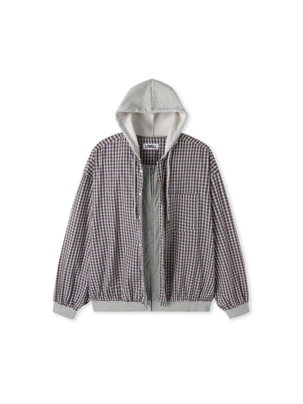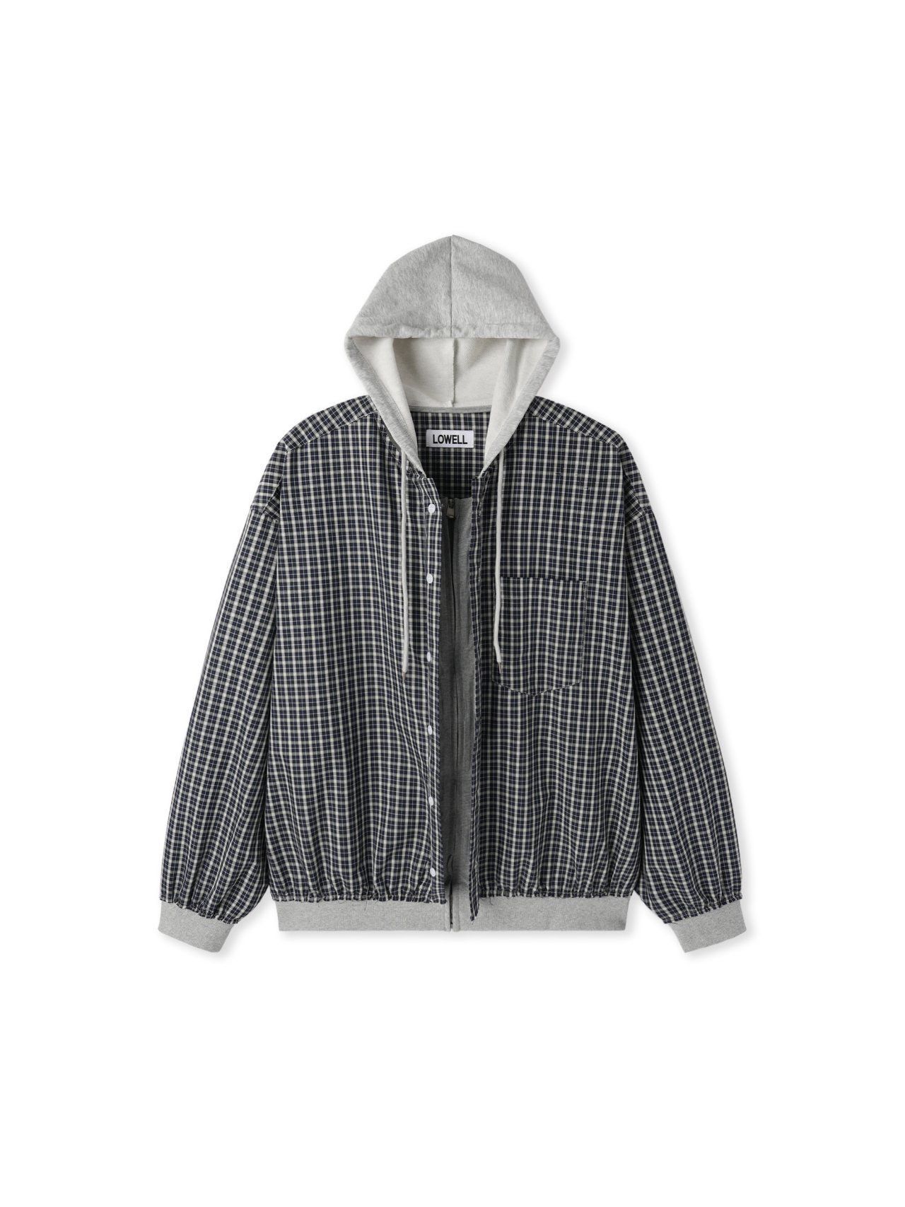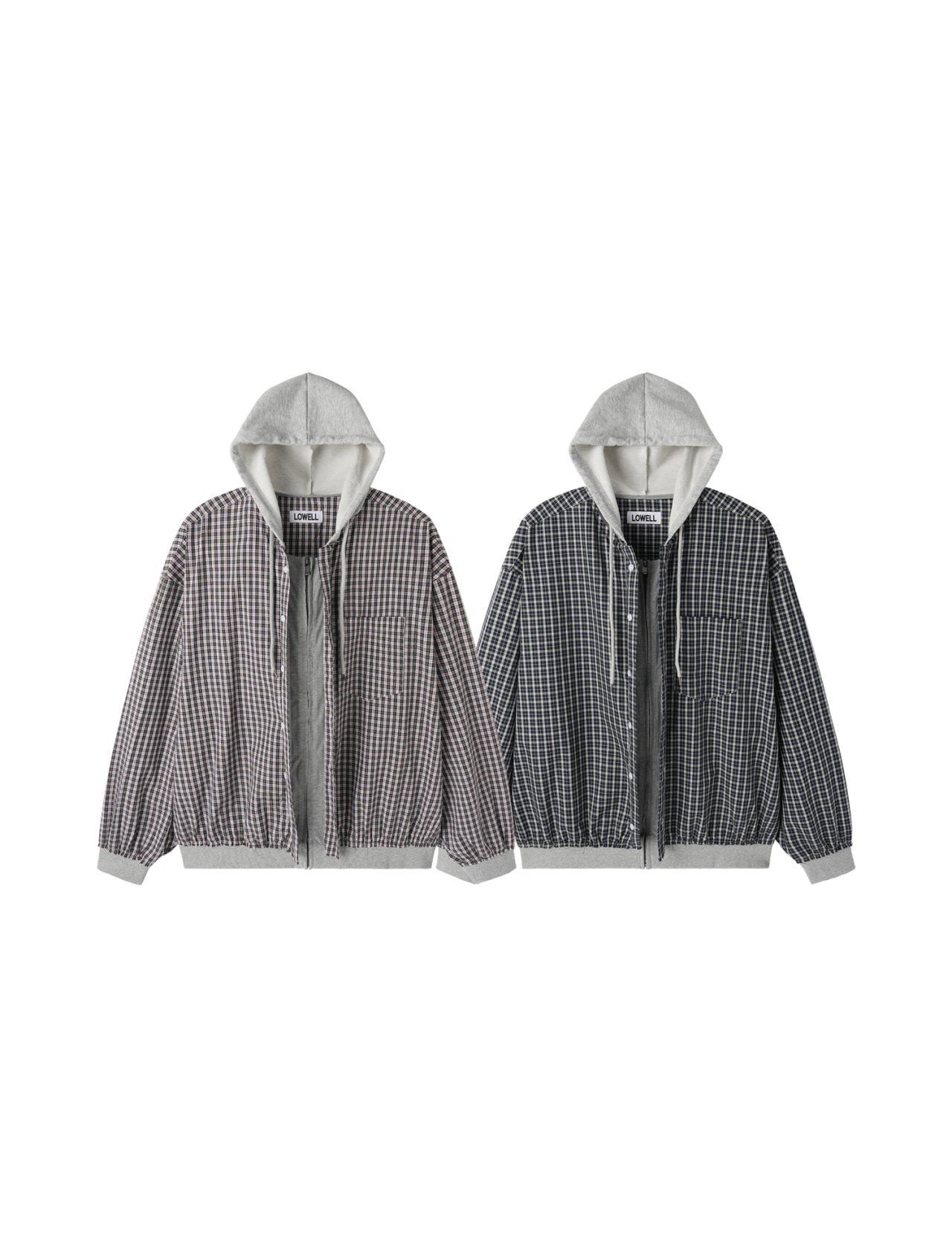 格仔連帽拉鍊外套 Lowell-093JK