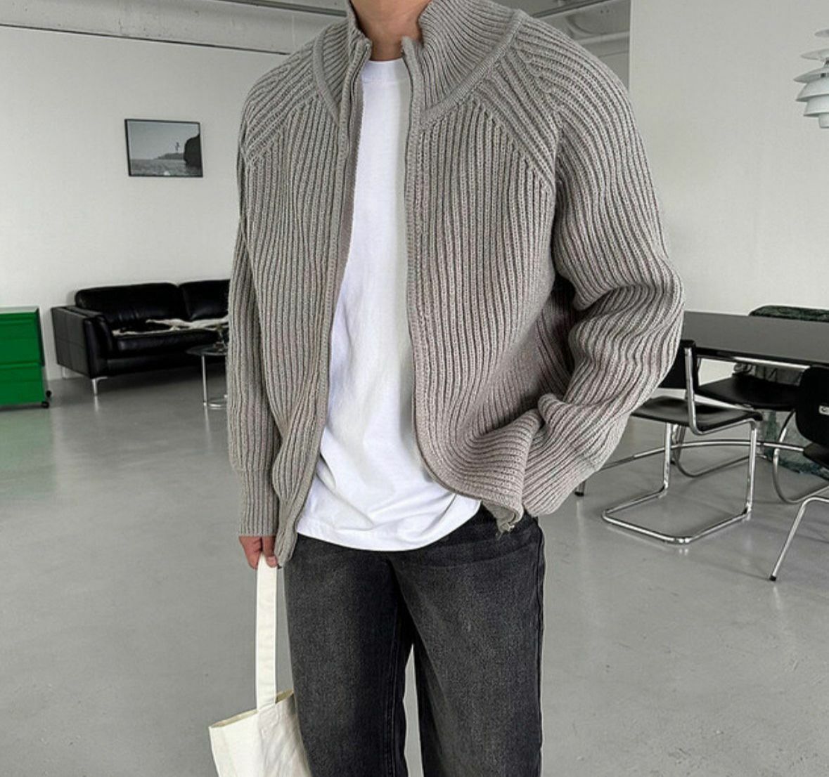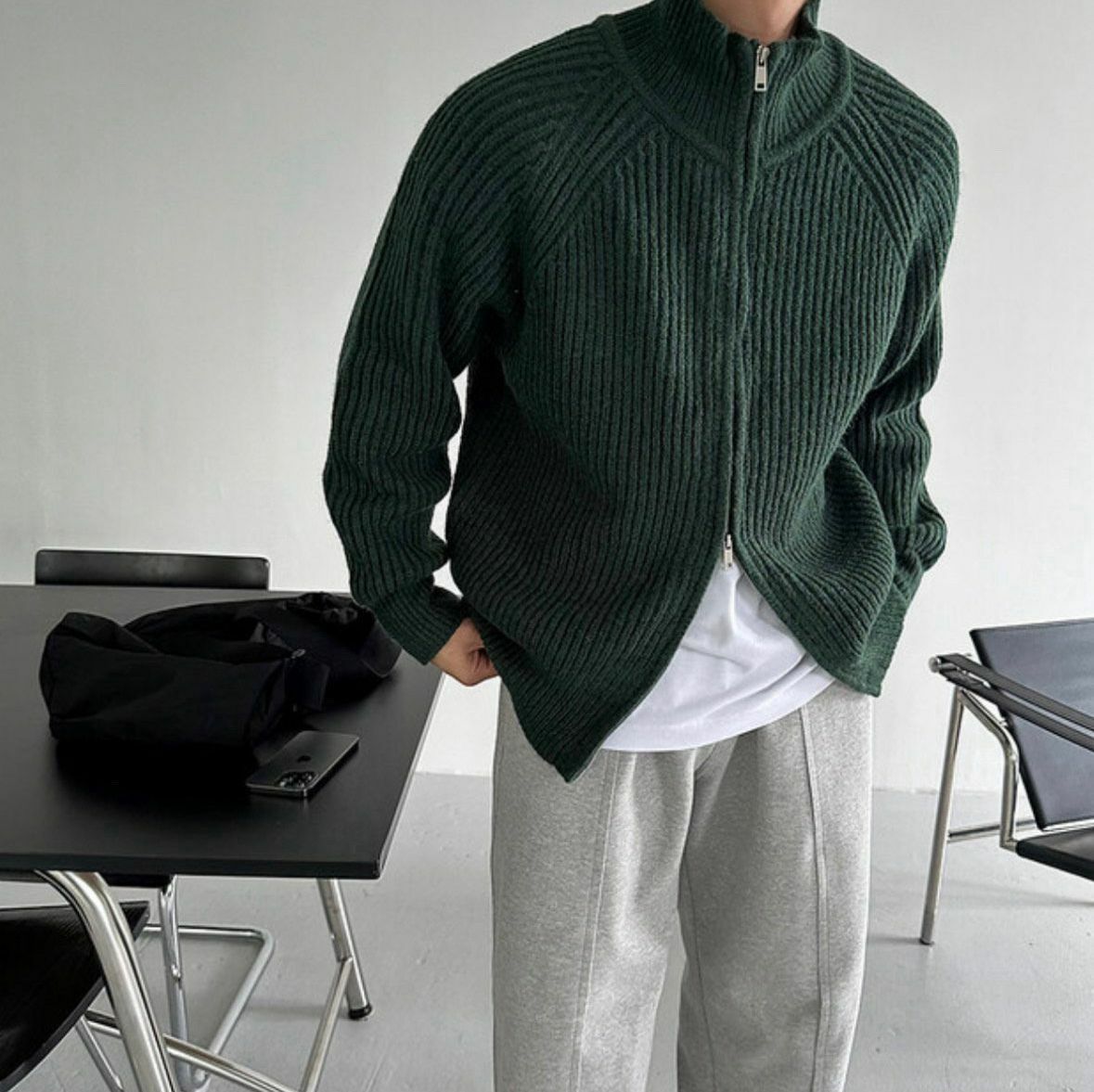 暗直紋高領拉鍊外套 MAIDEN-018JK