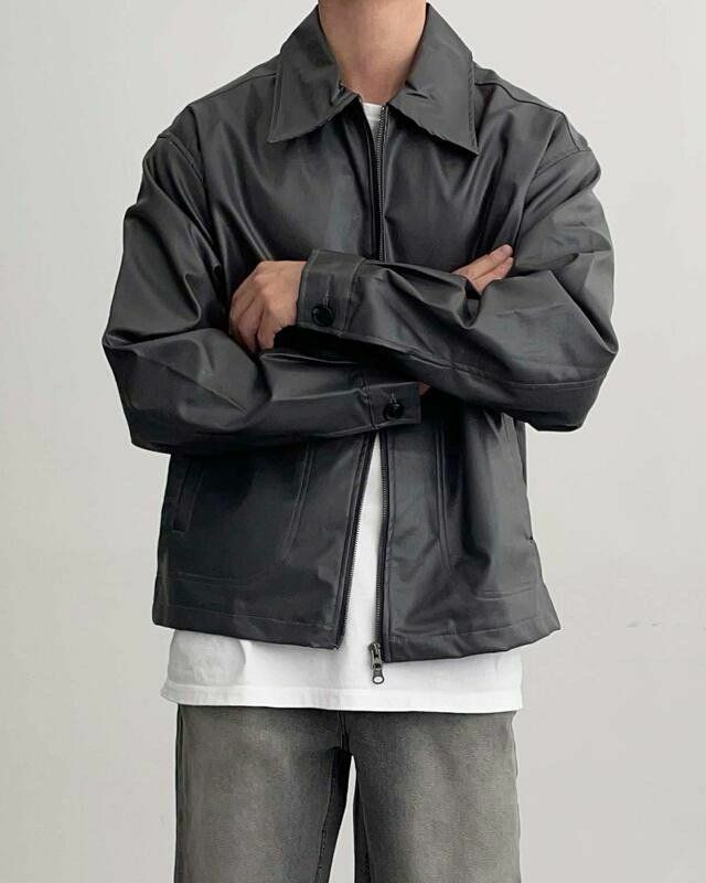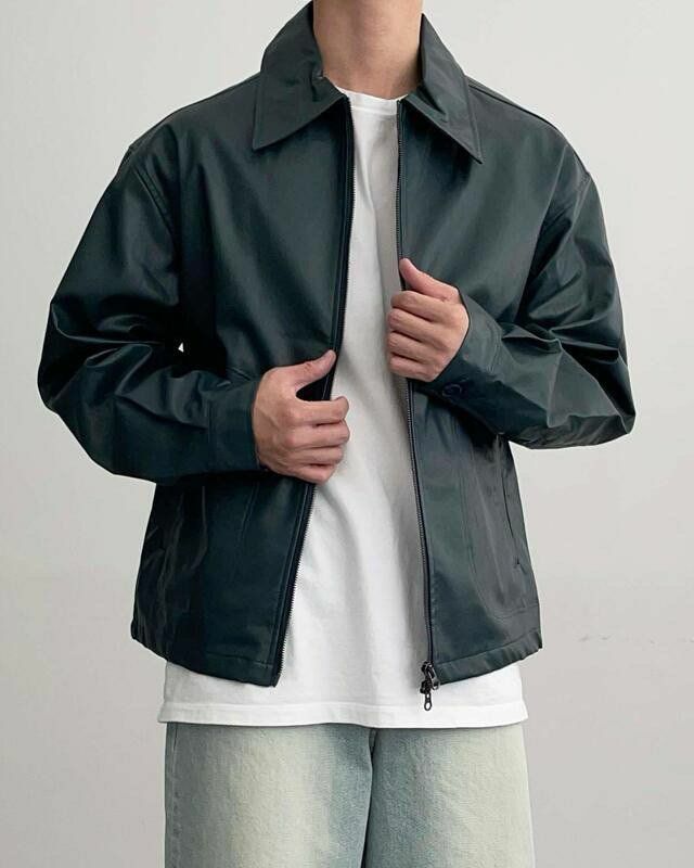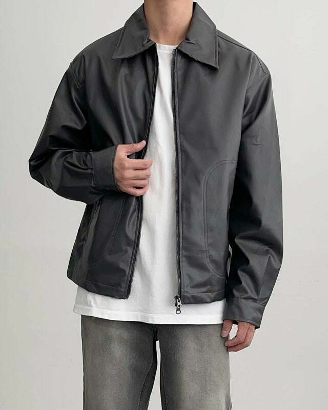 反領拉鍊合成皮褸 MAIDEN-022JK