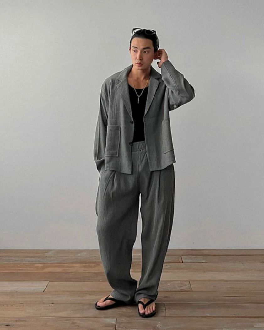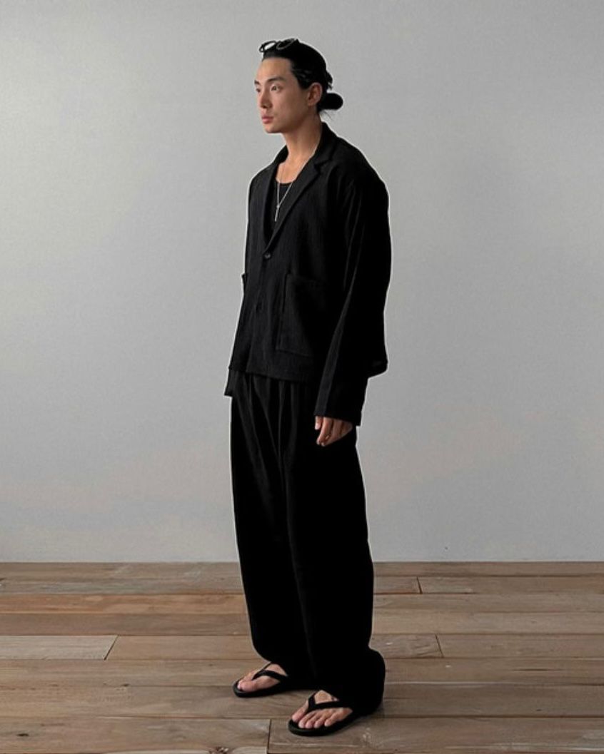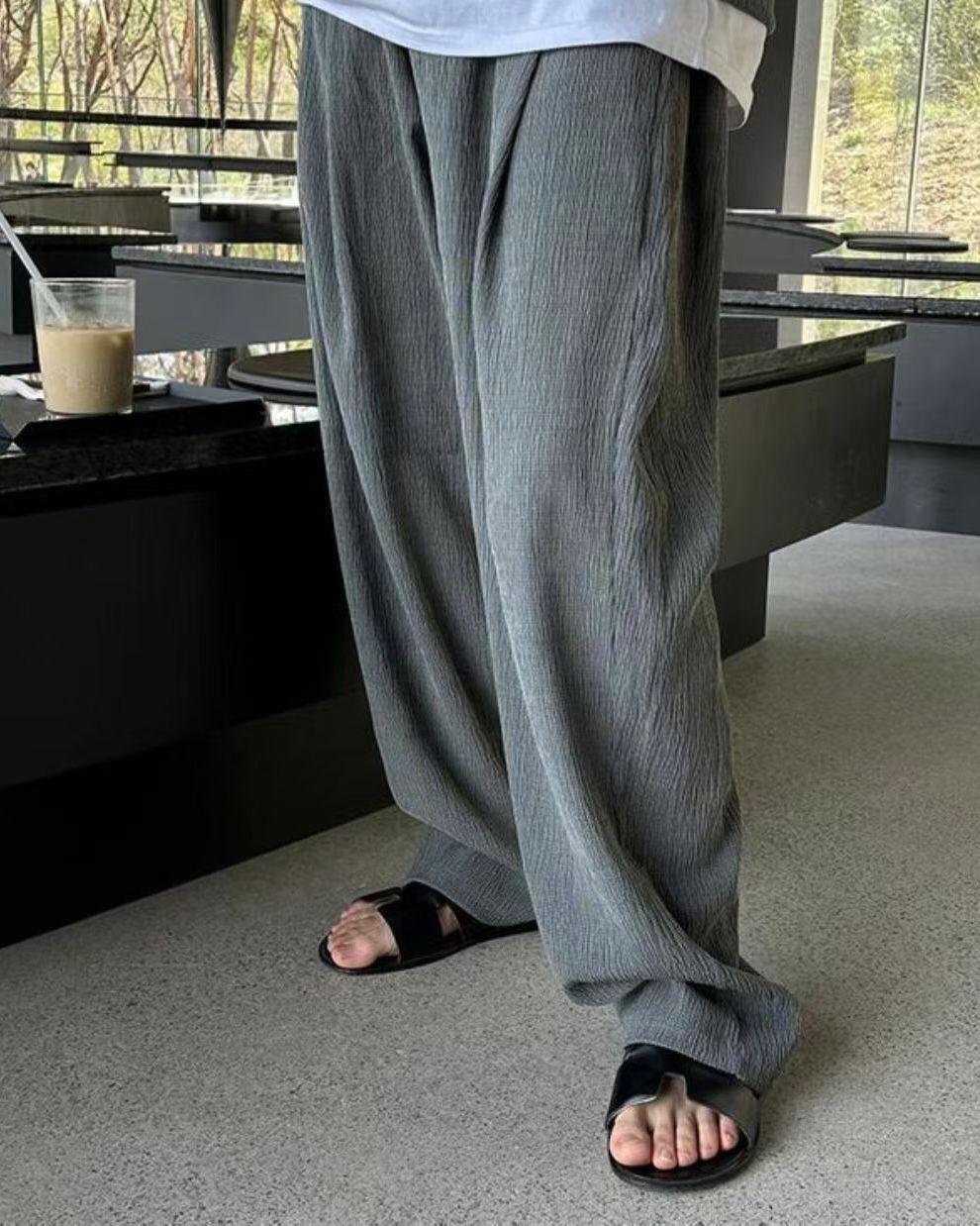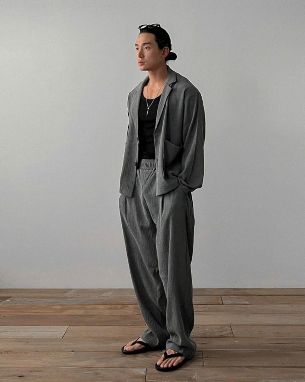 淨色暗紋鬆身褲 MALENKII-002P