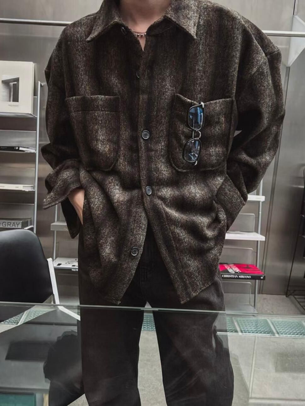 絨面條子長袖恤衫 MALENKII-034JK