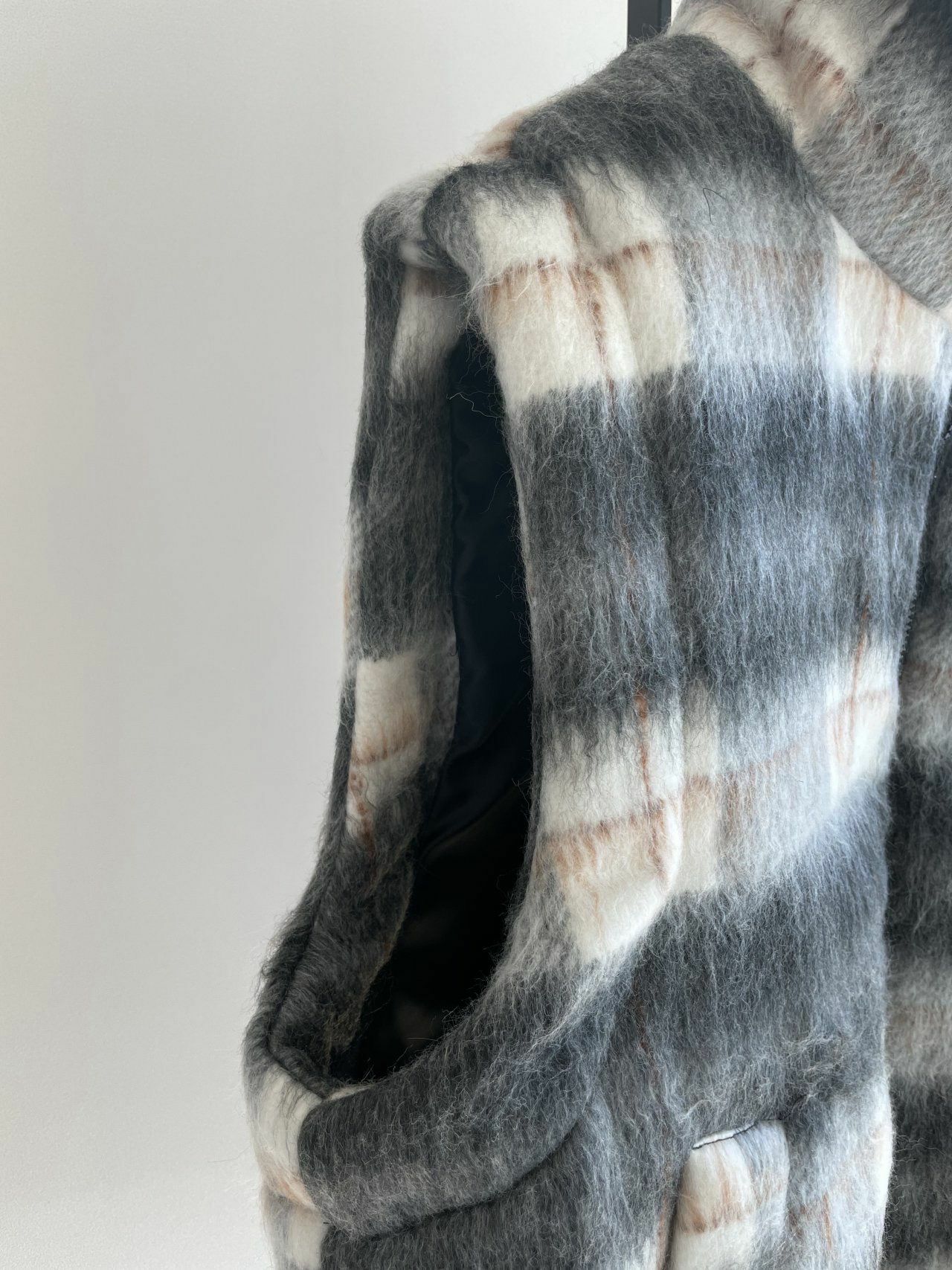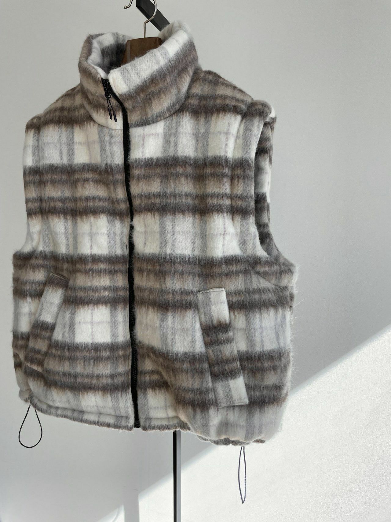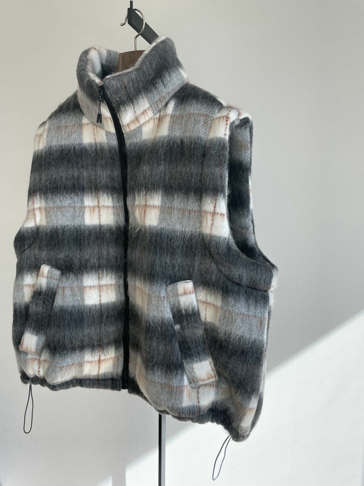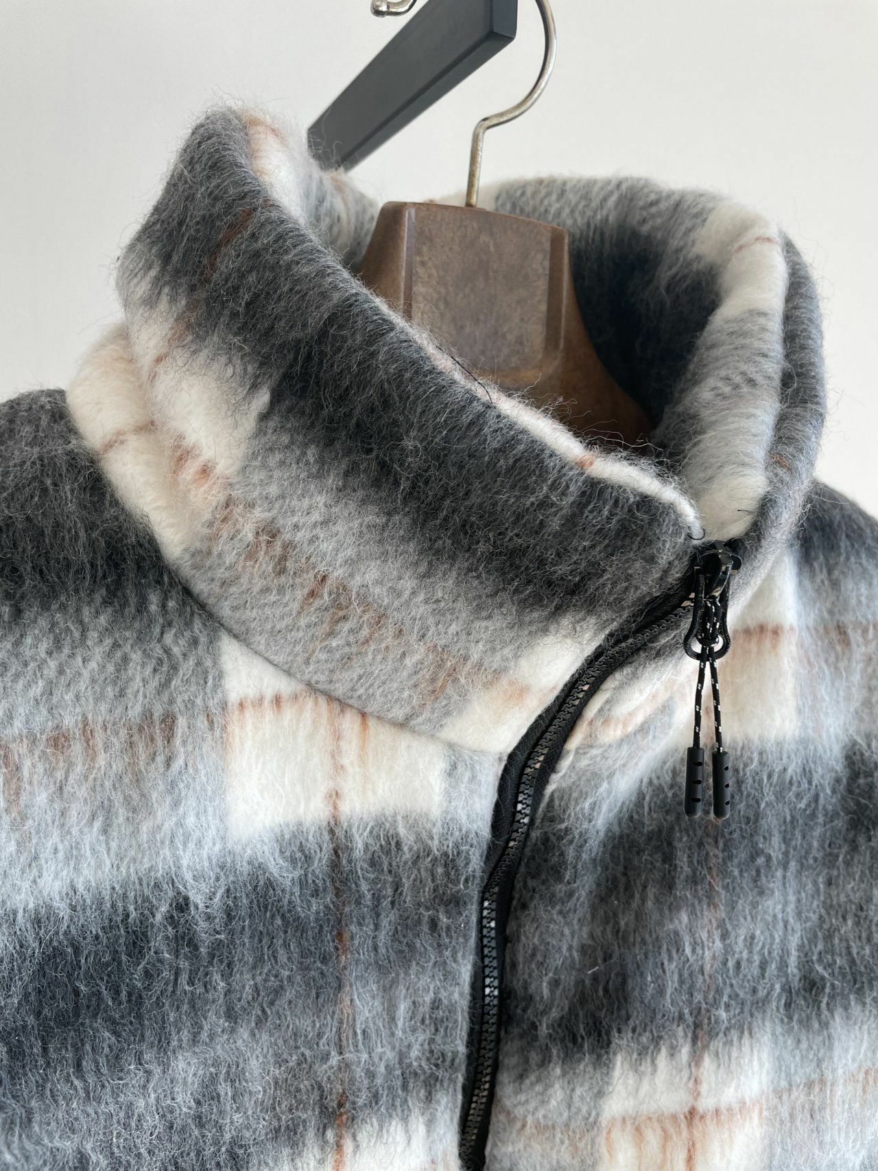 高領格仔拉鍊背心褸 MALENKII-039V