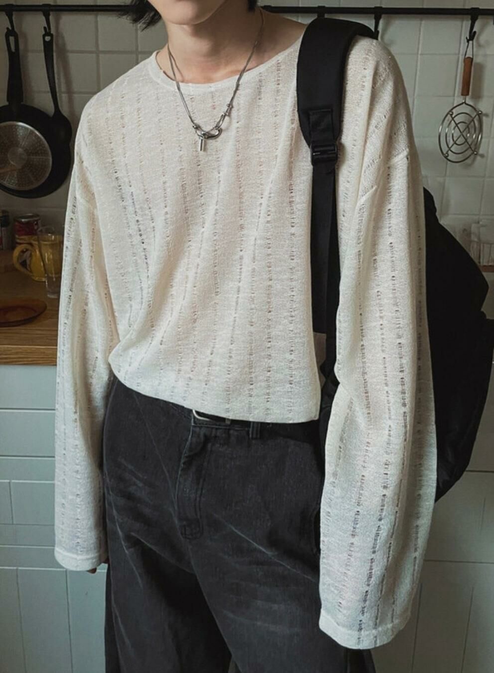 淨色暗紋長袖衫 MALENKII-047T