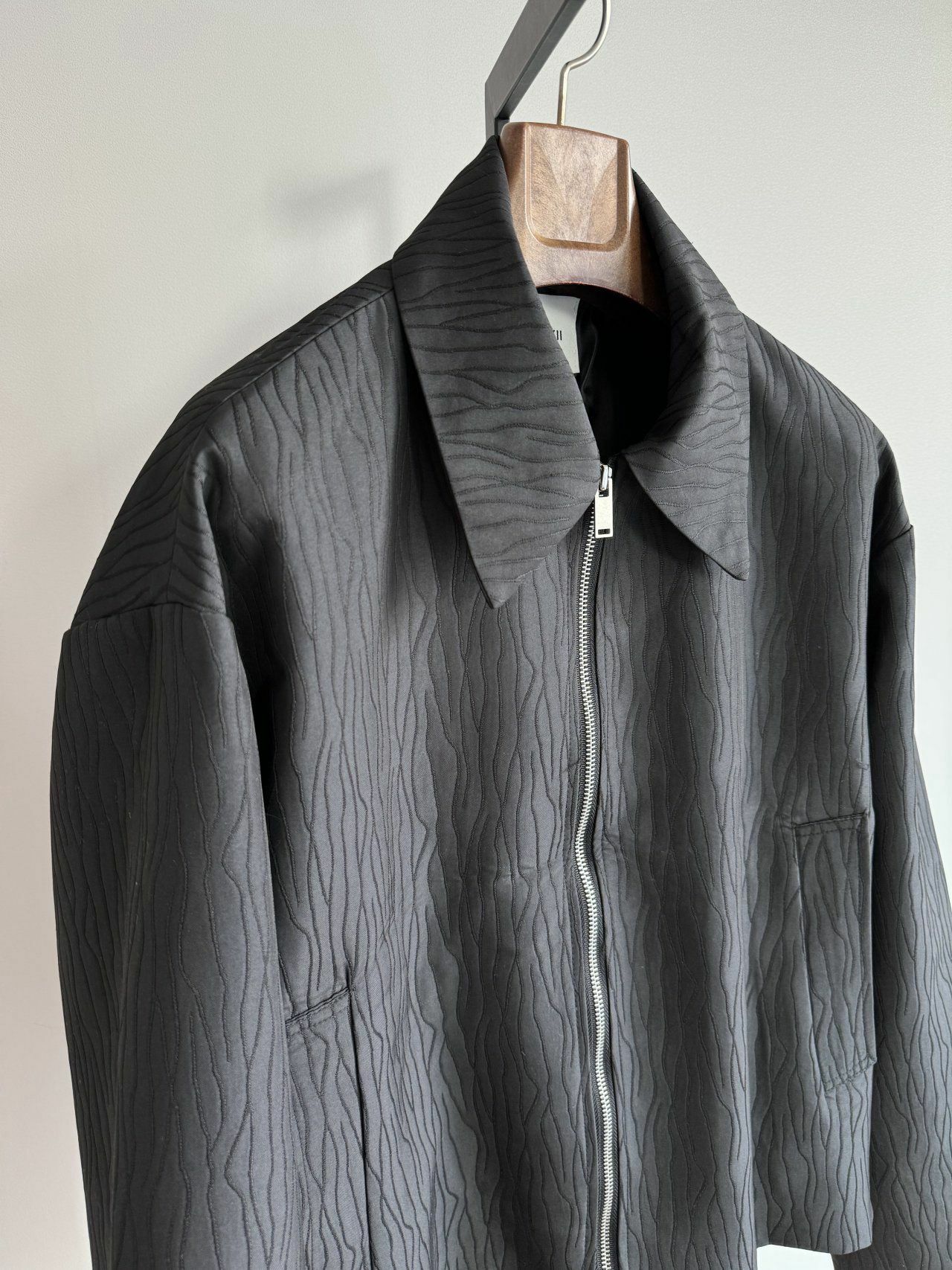 淨色反領暗紋拉鍊外套 MALENKII-058JK