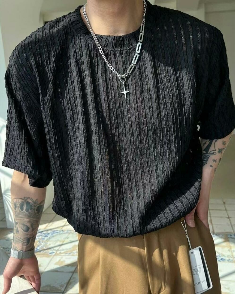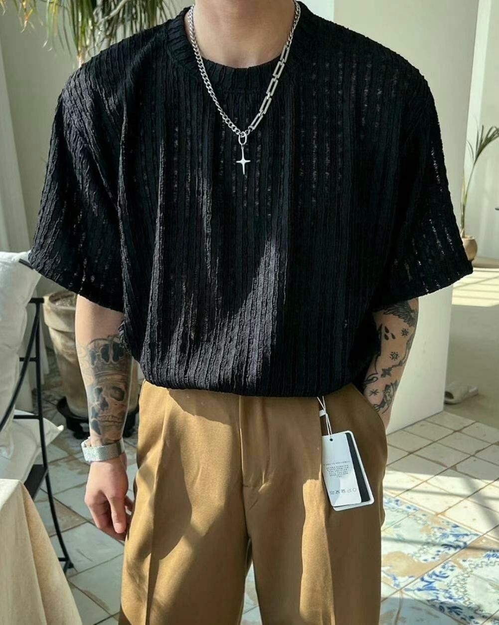淨色網紋短袖Tee MALENKII-072T