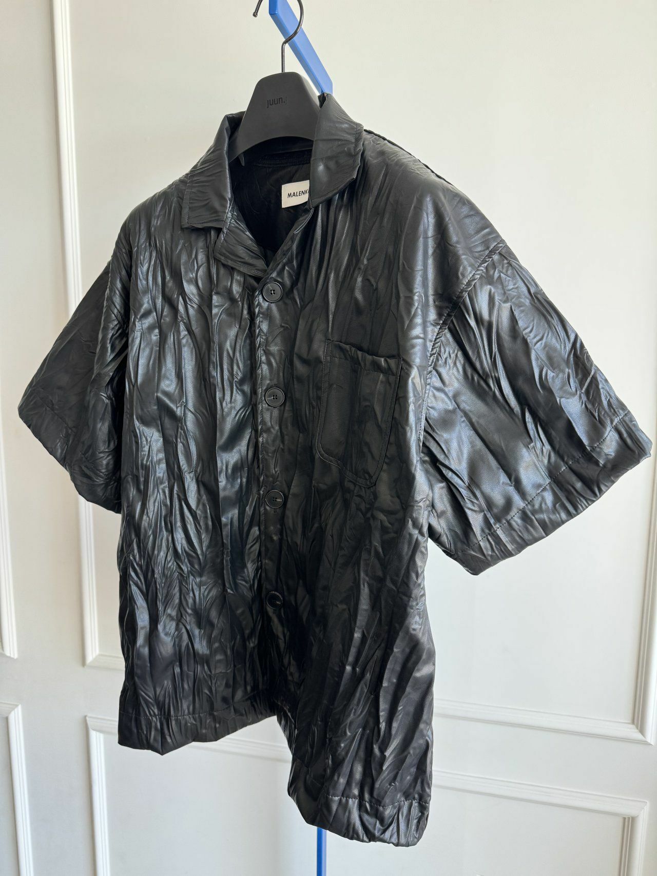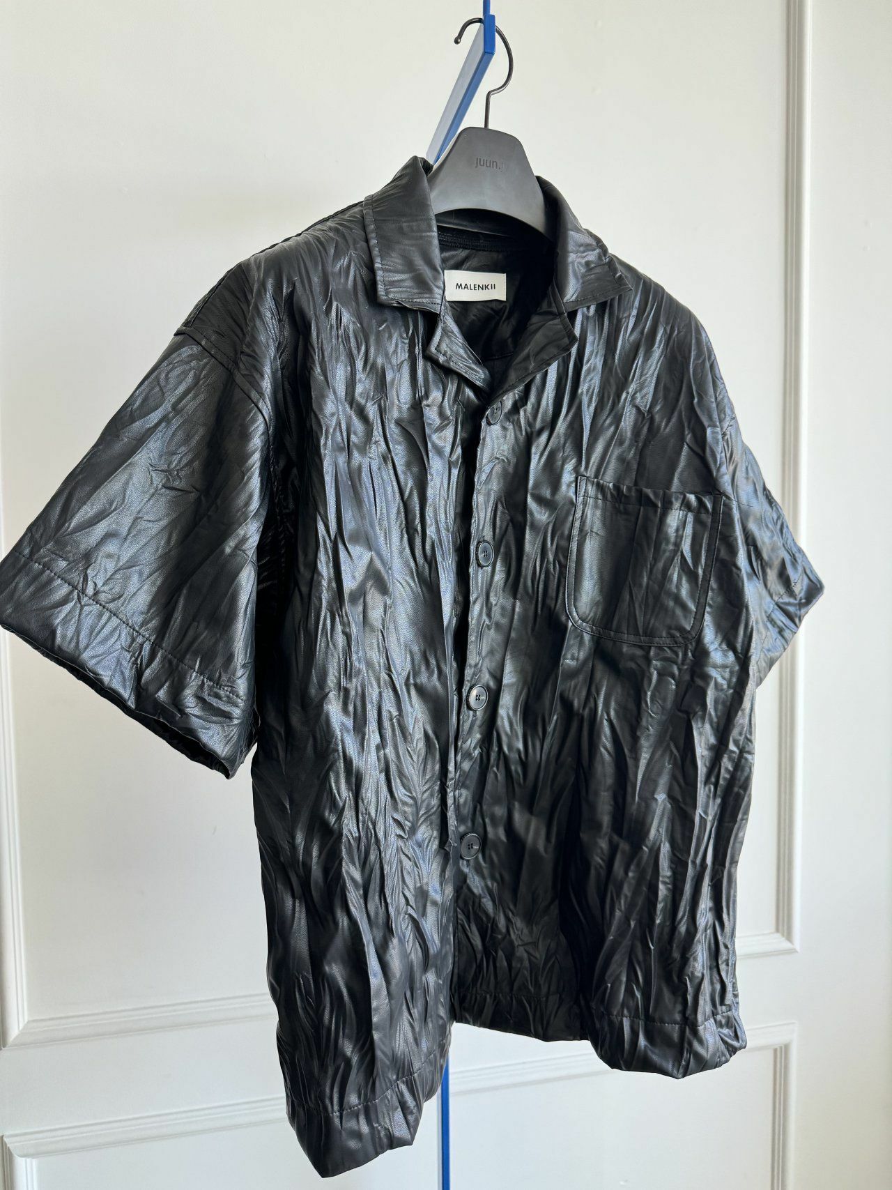 淨色合成皮短袖恤衫 MALENKII-079S