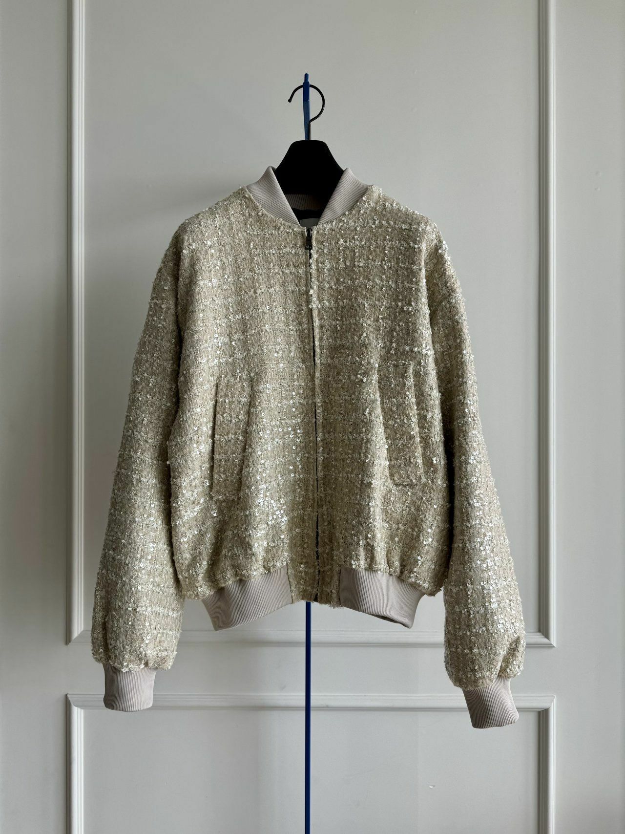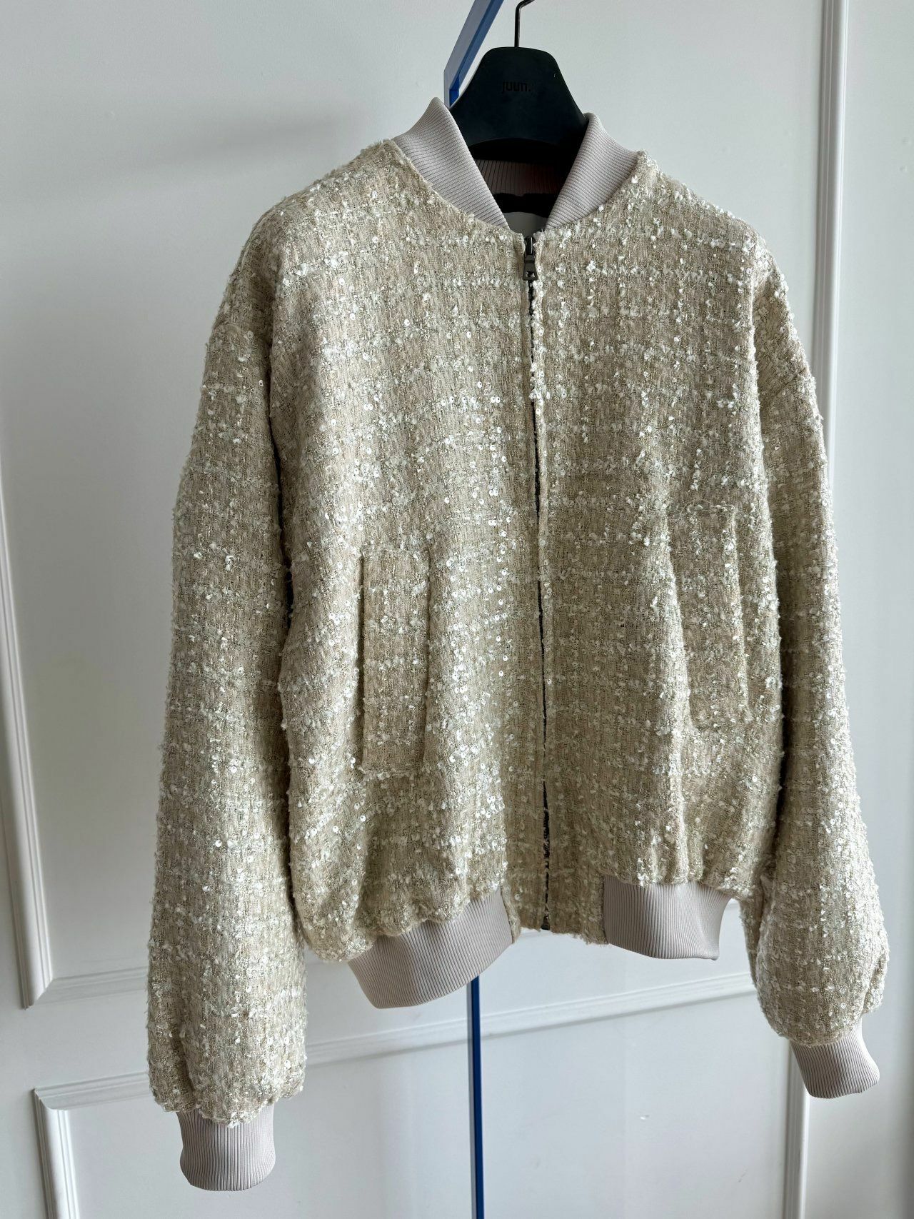 閃片暗紋拉鍊外套 MALENKII-093JK