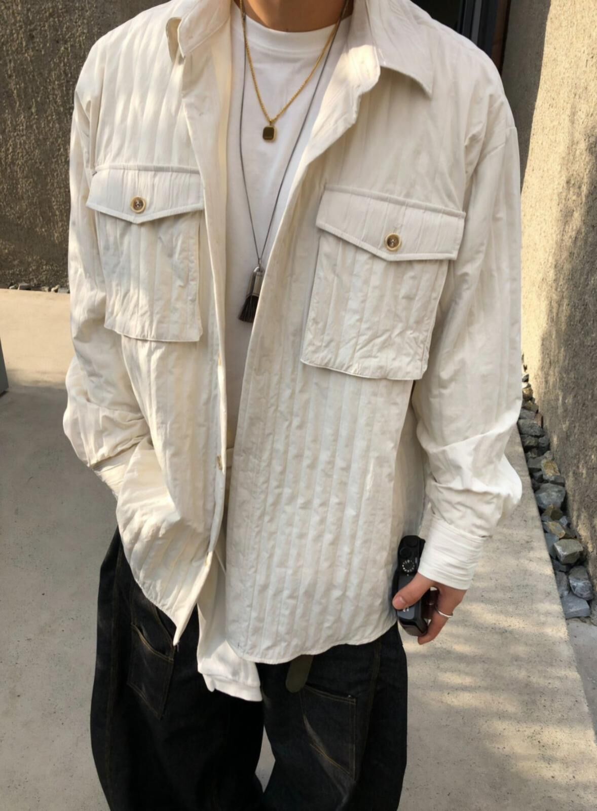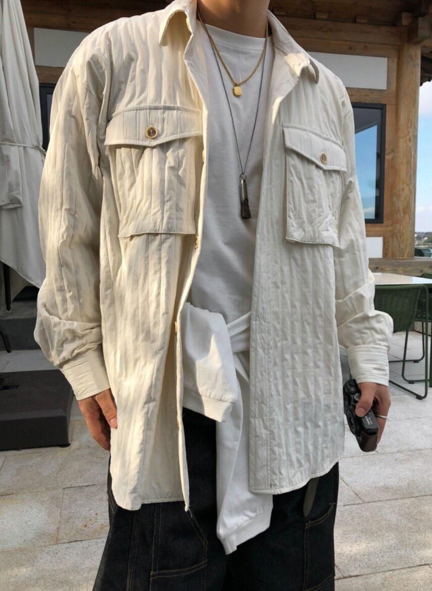 OverSize暗紋長袖恤衫 MALENKII-098S