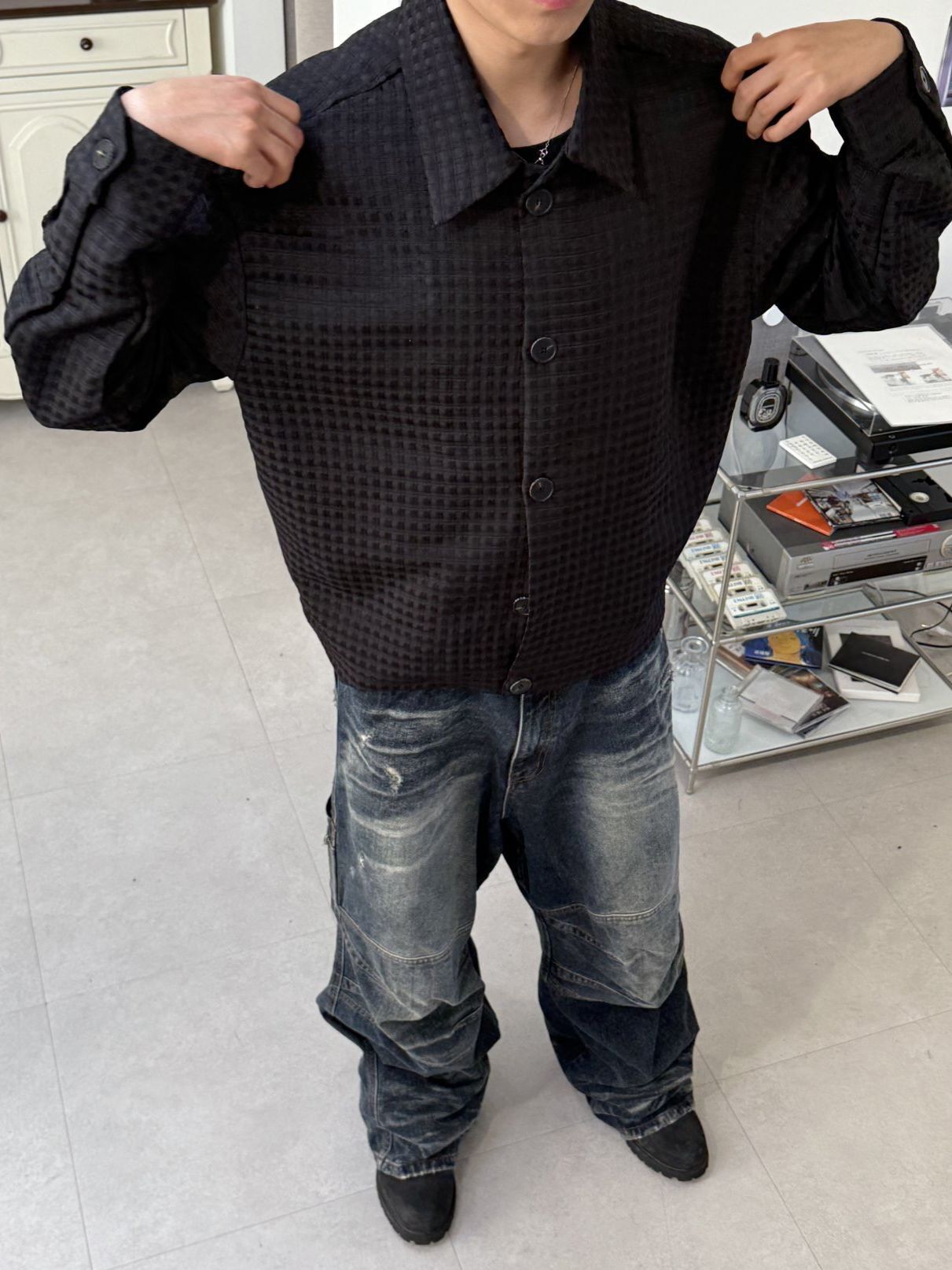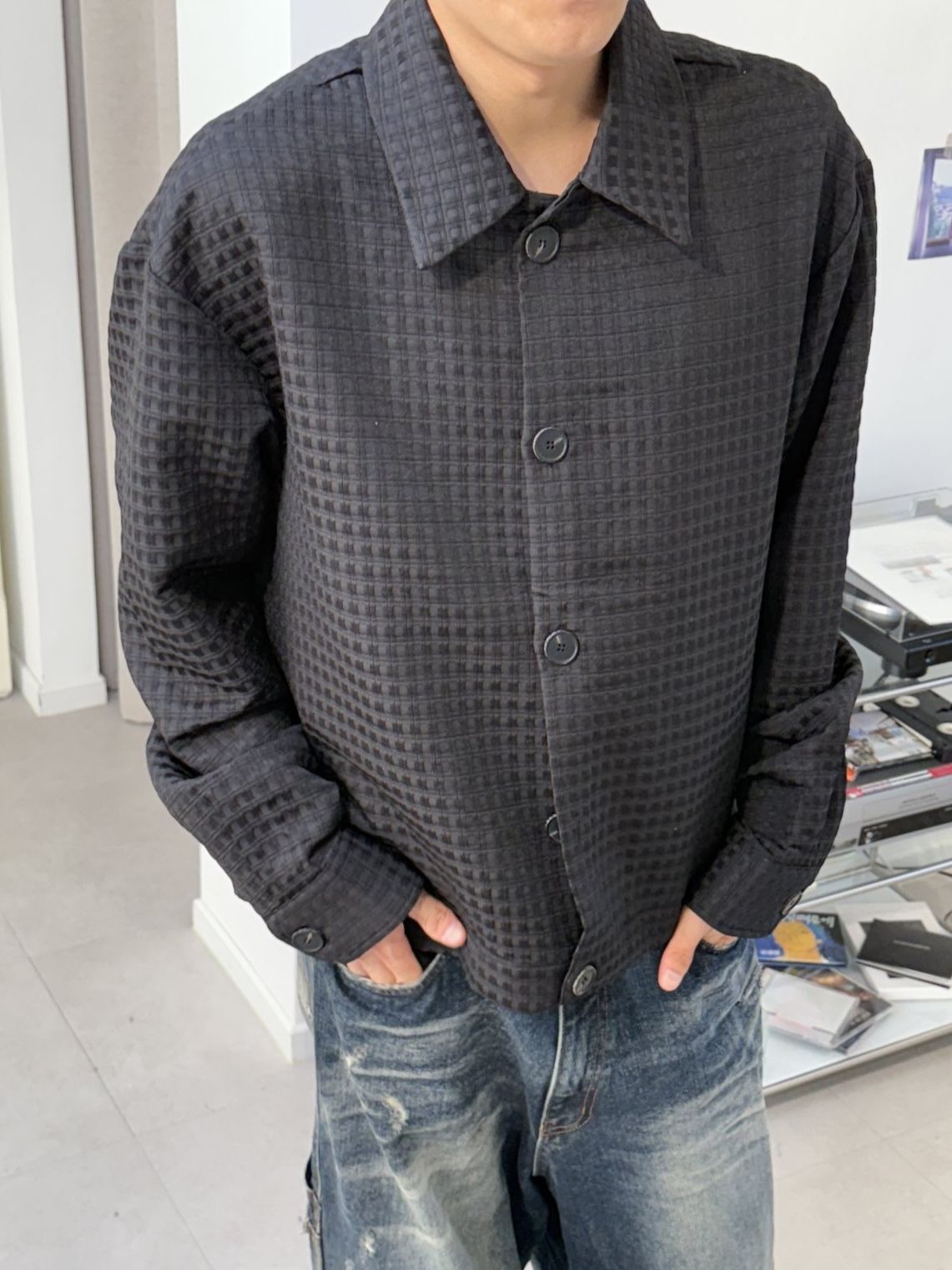 反領暗格紋開胸外套 MALENKII-180S