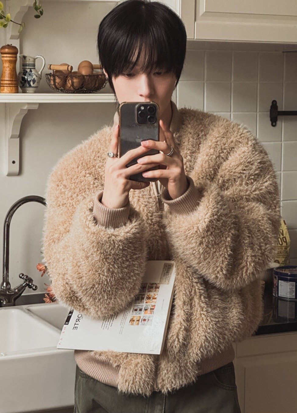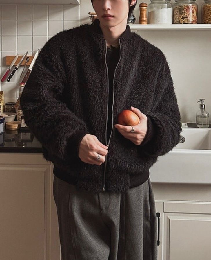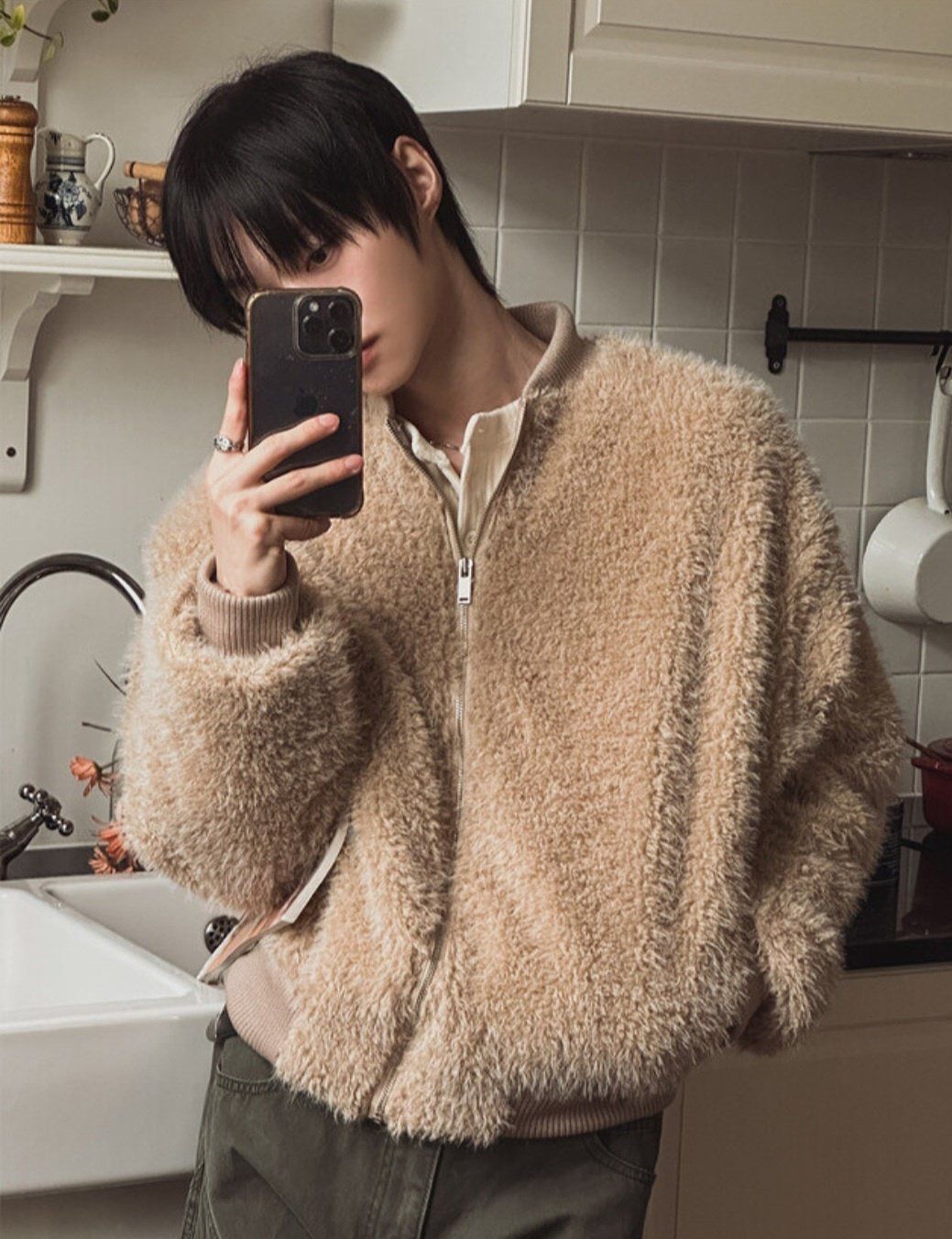 淨色拉鍊毛毛外套 MALENKII-190JK
